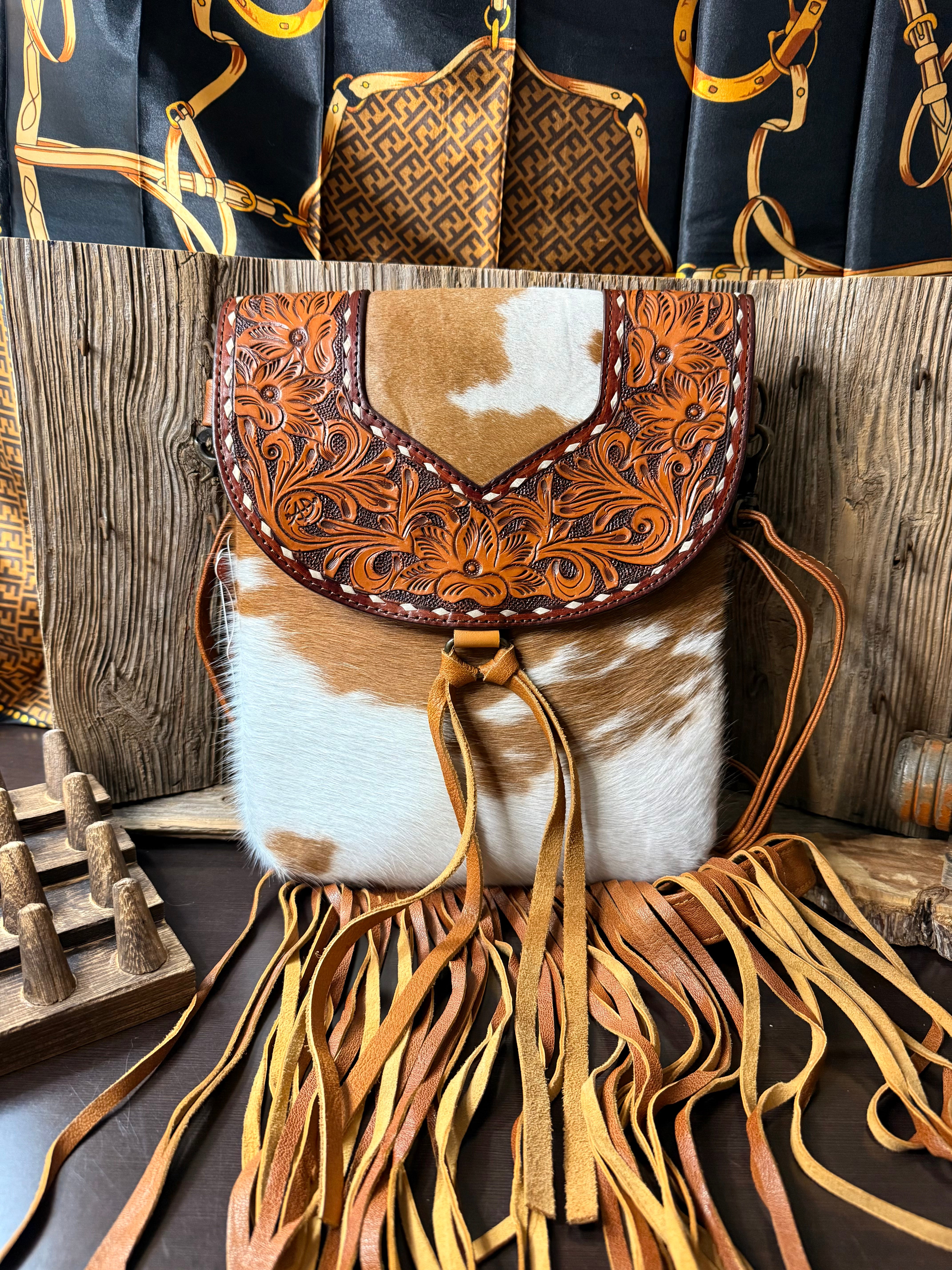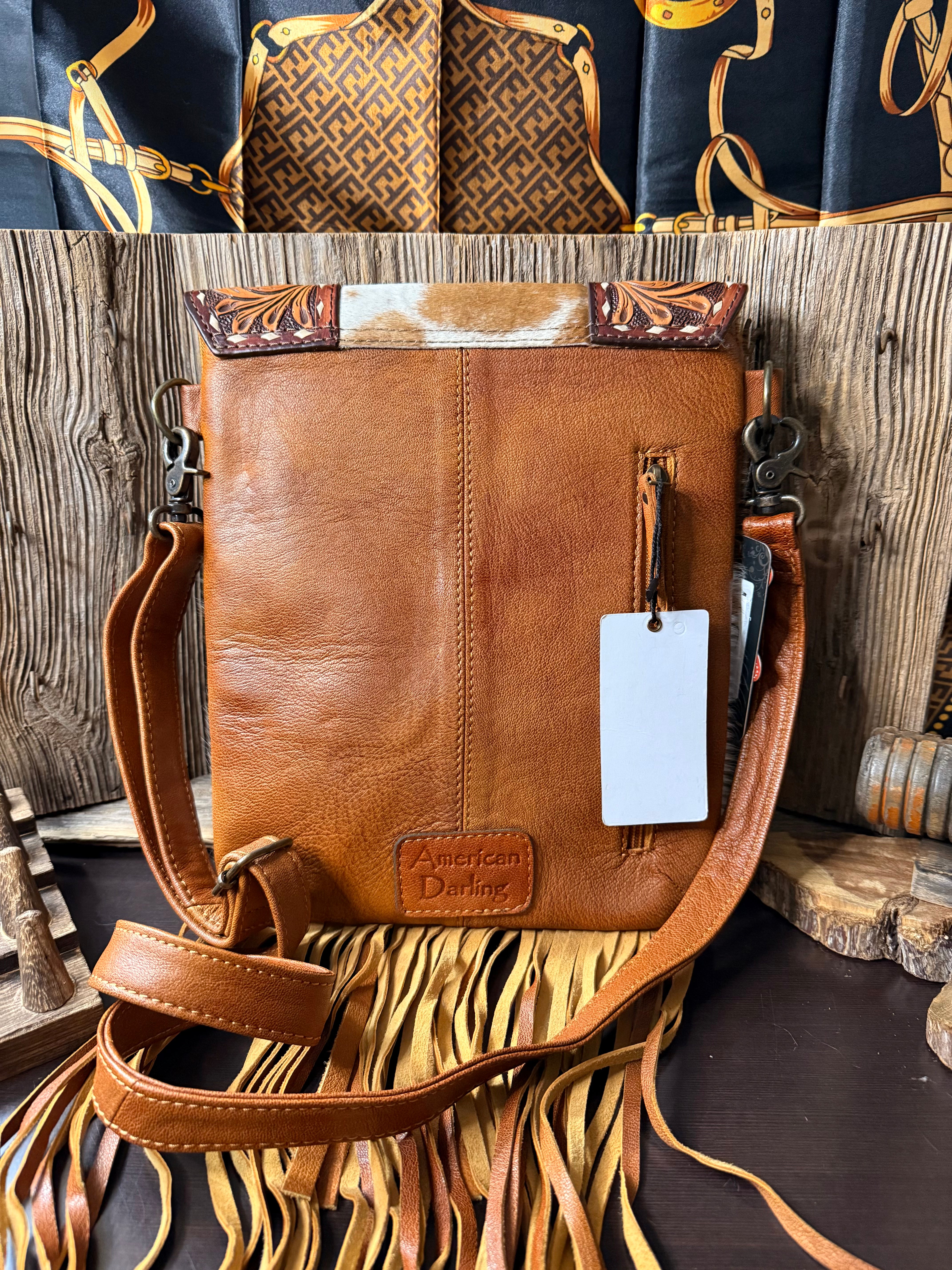 American Darling Brown Cowhide Fringe Crossbody Purse