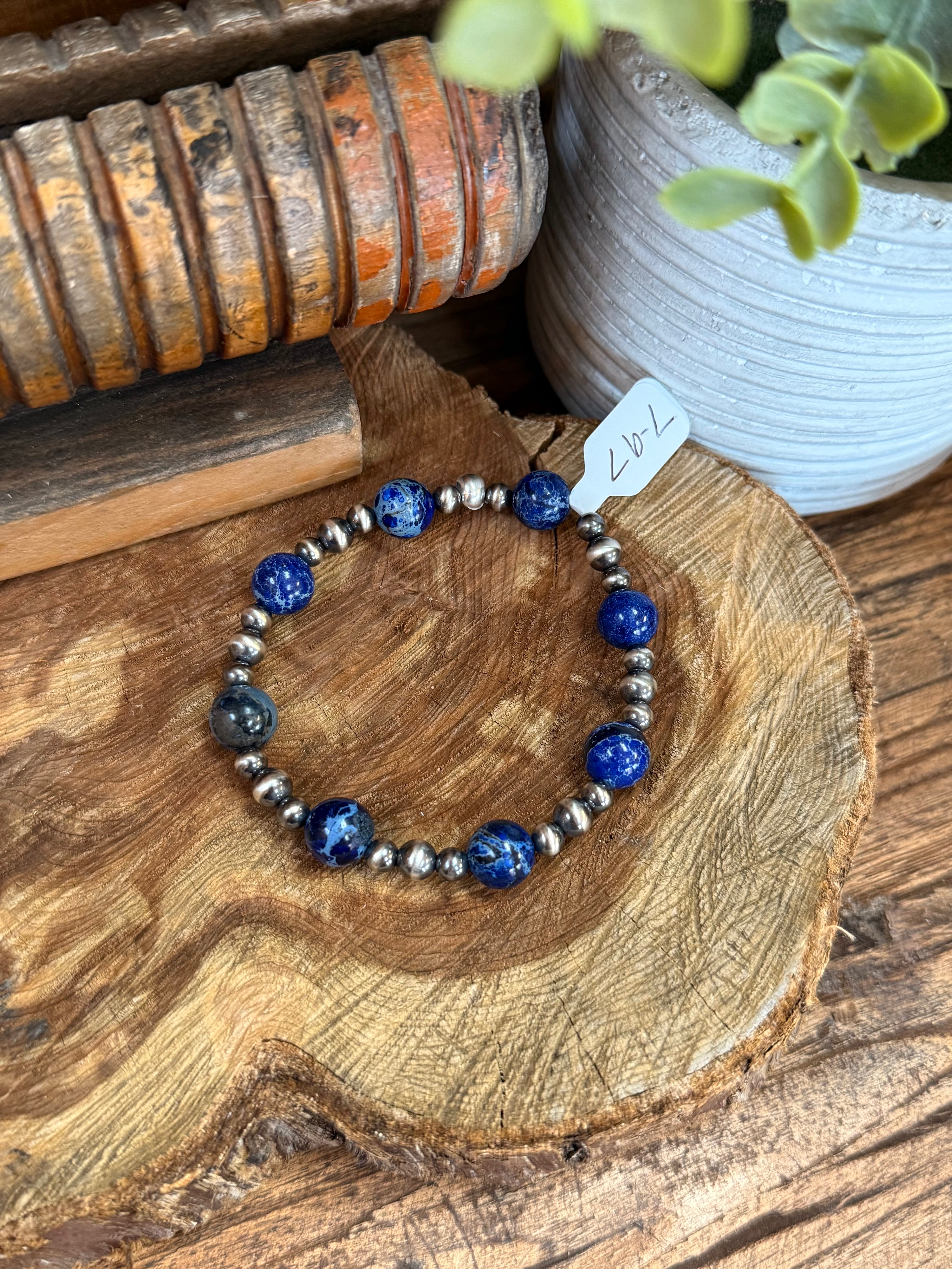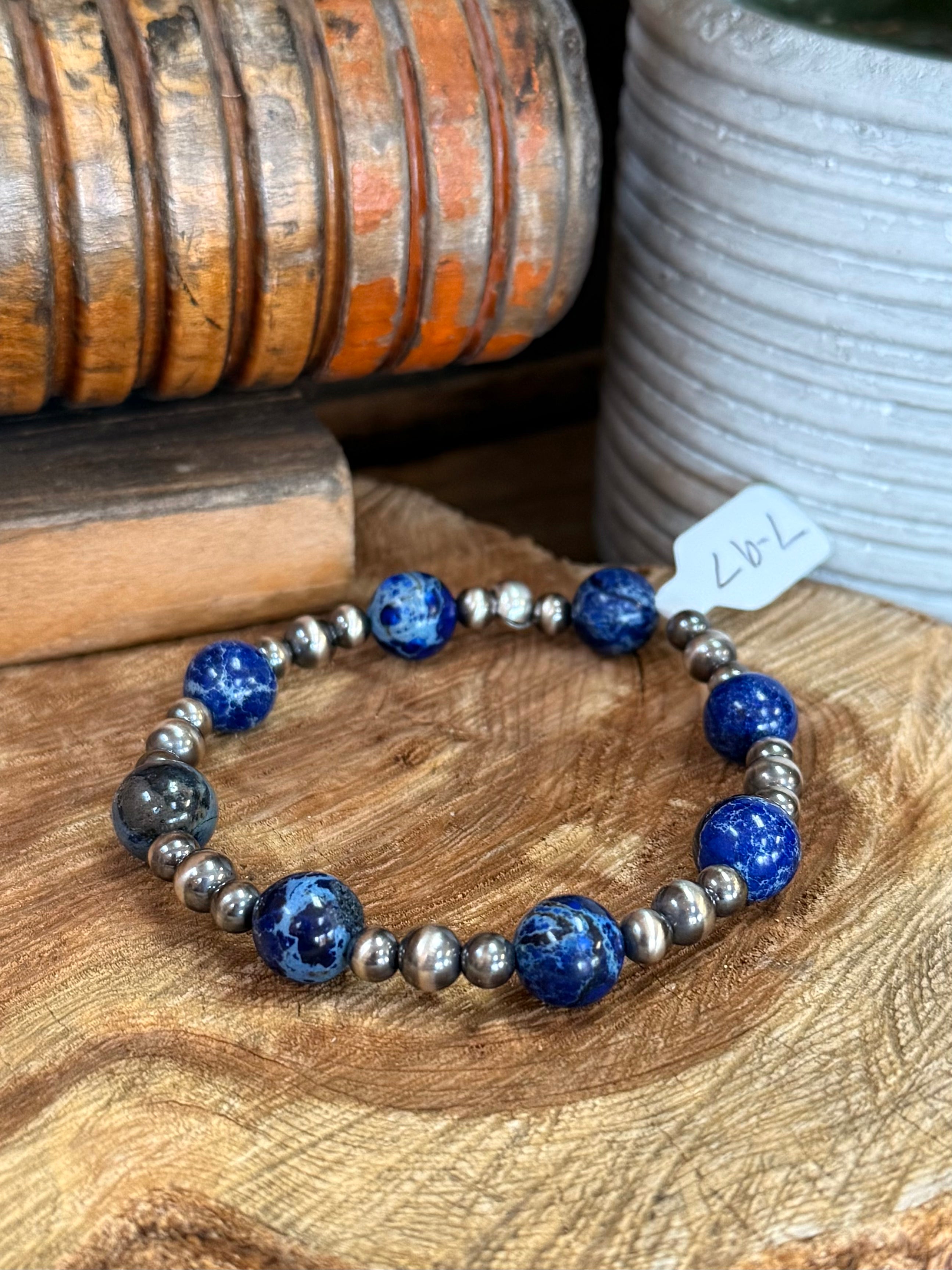 7" Blue Jasper and Sterling Pearl Stretchy Bracelet