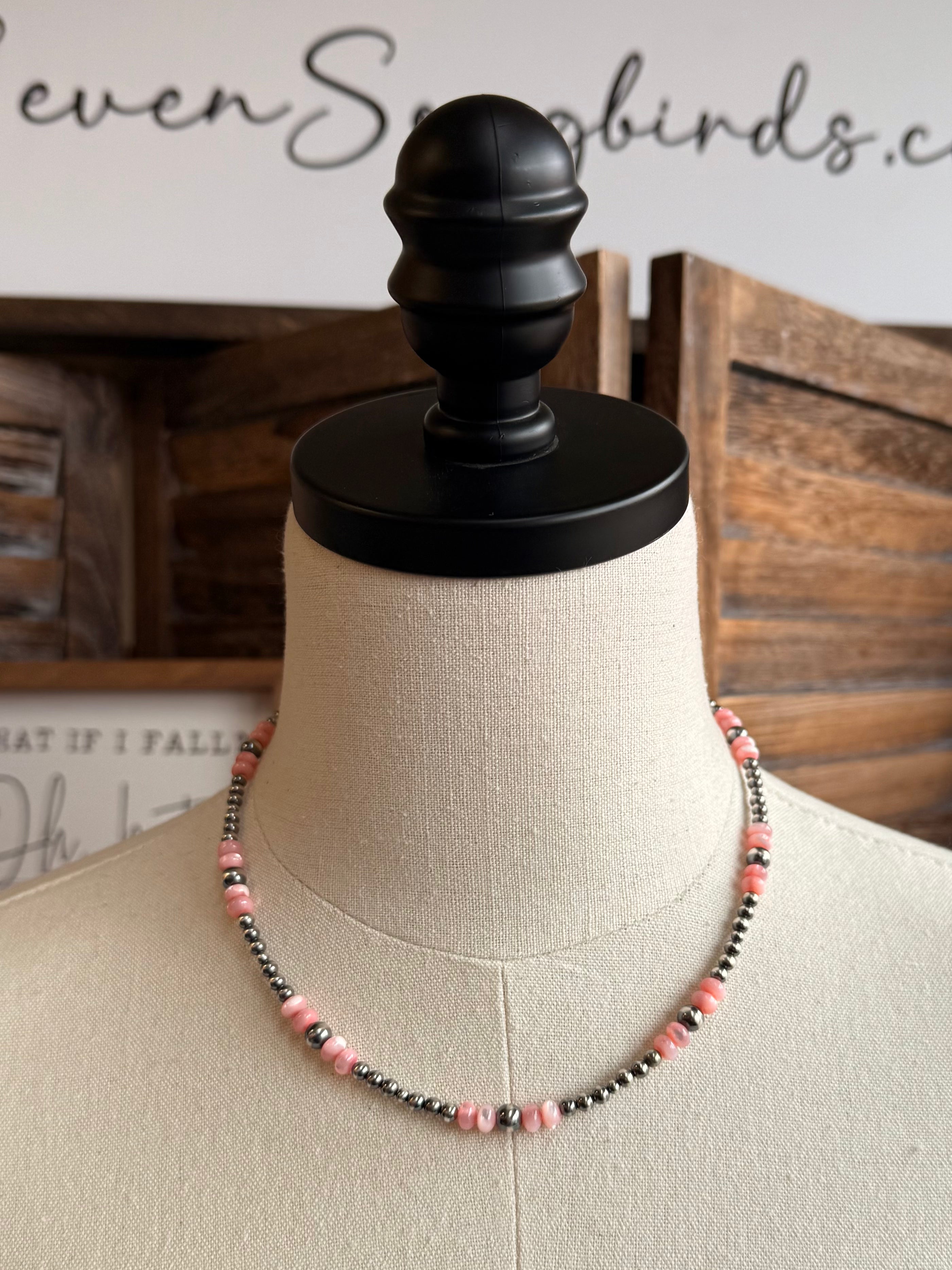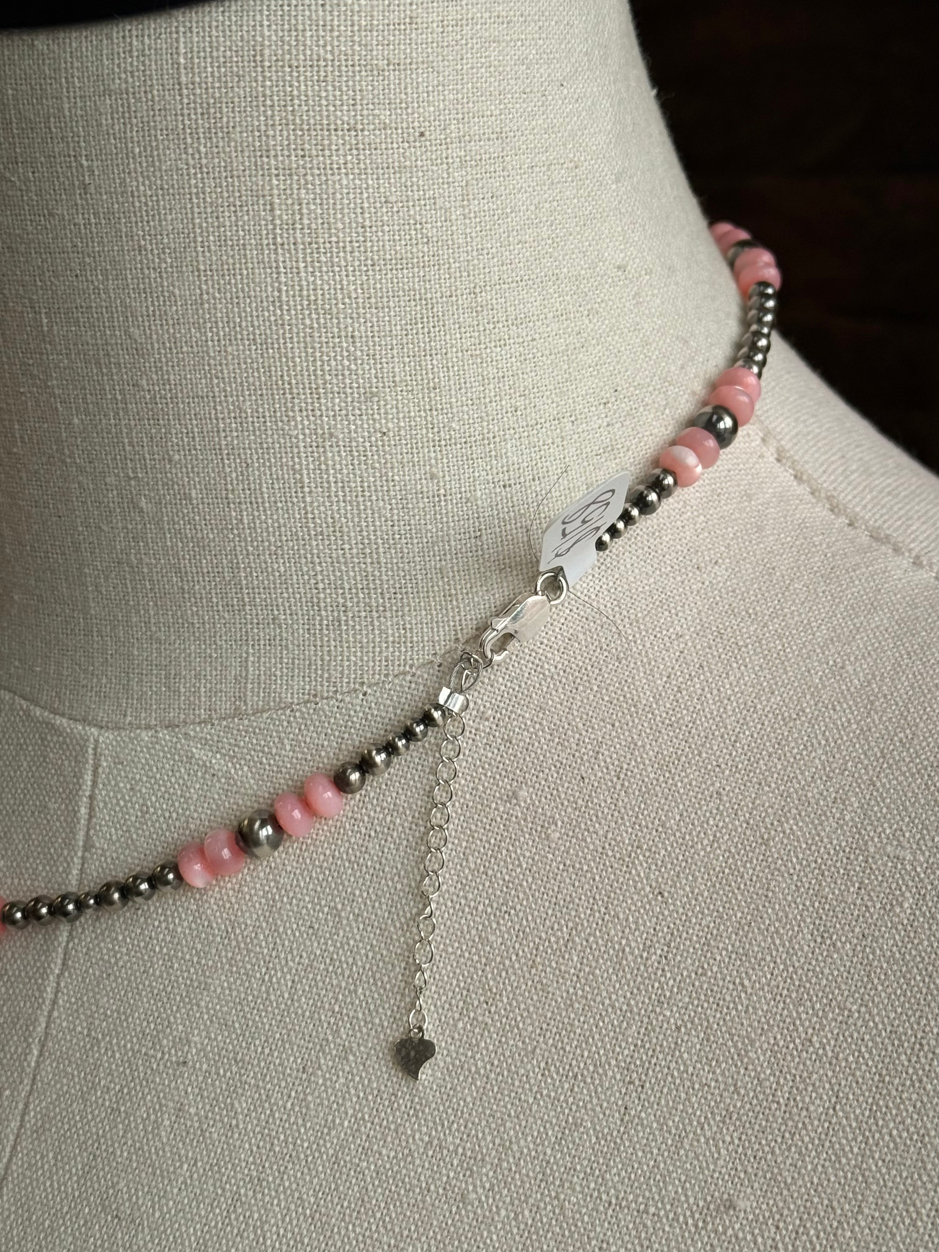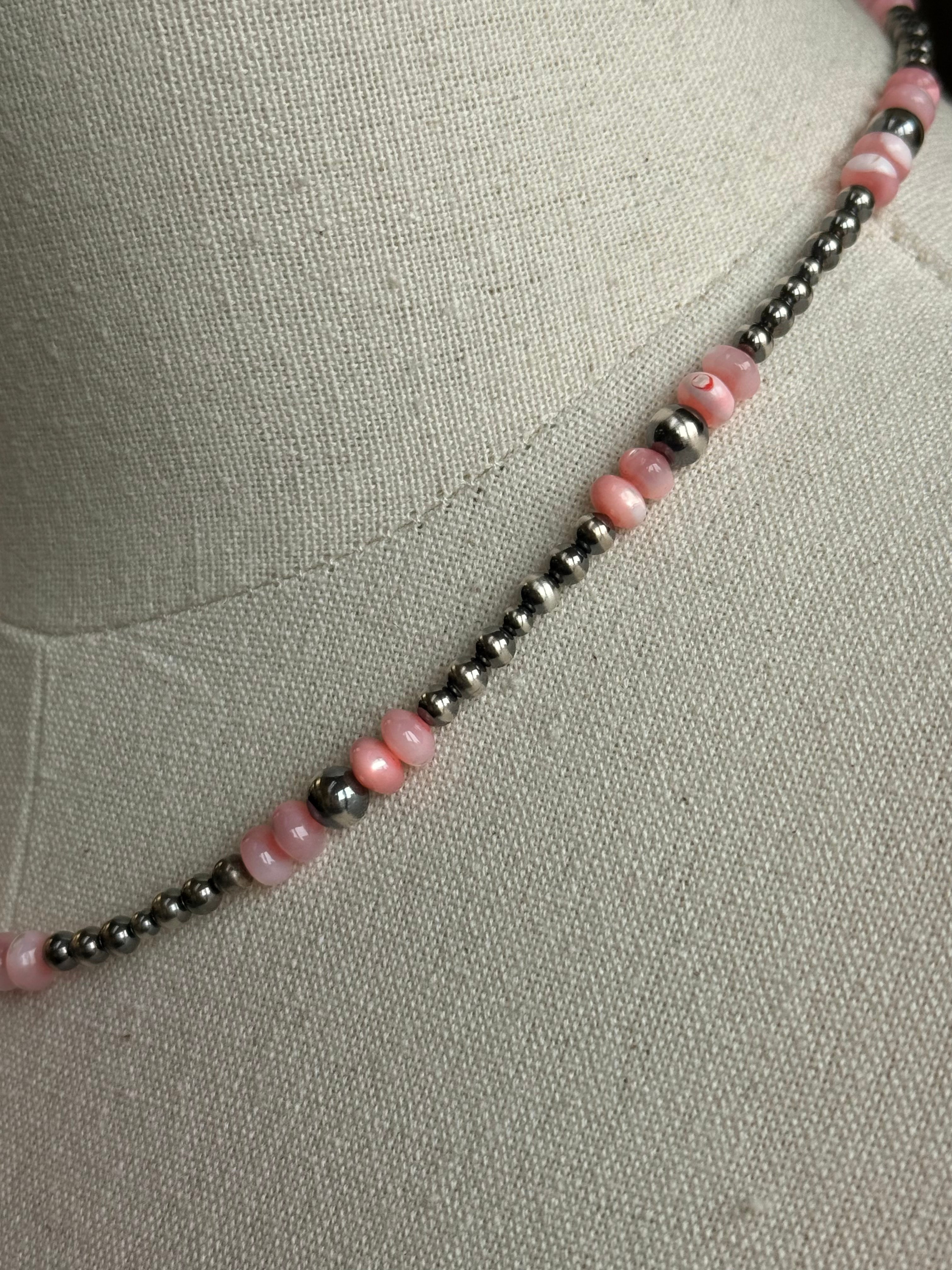 17" Pink MoP and Sterling Pearl Necklace