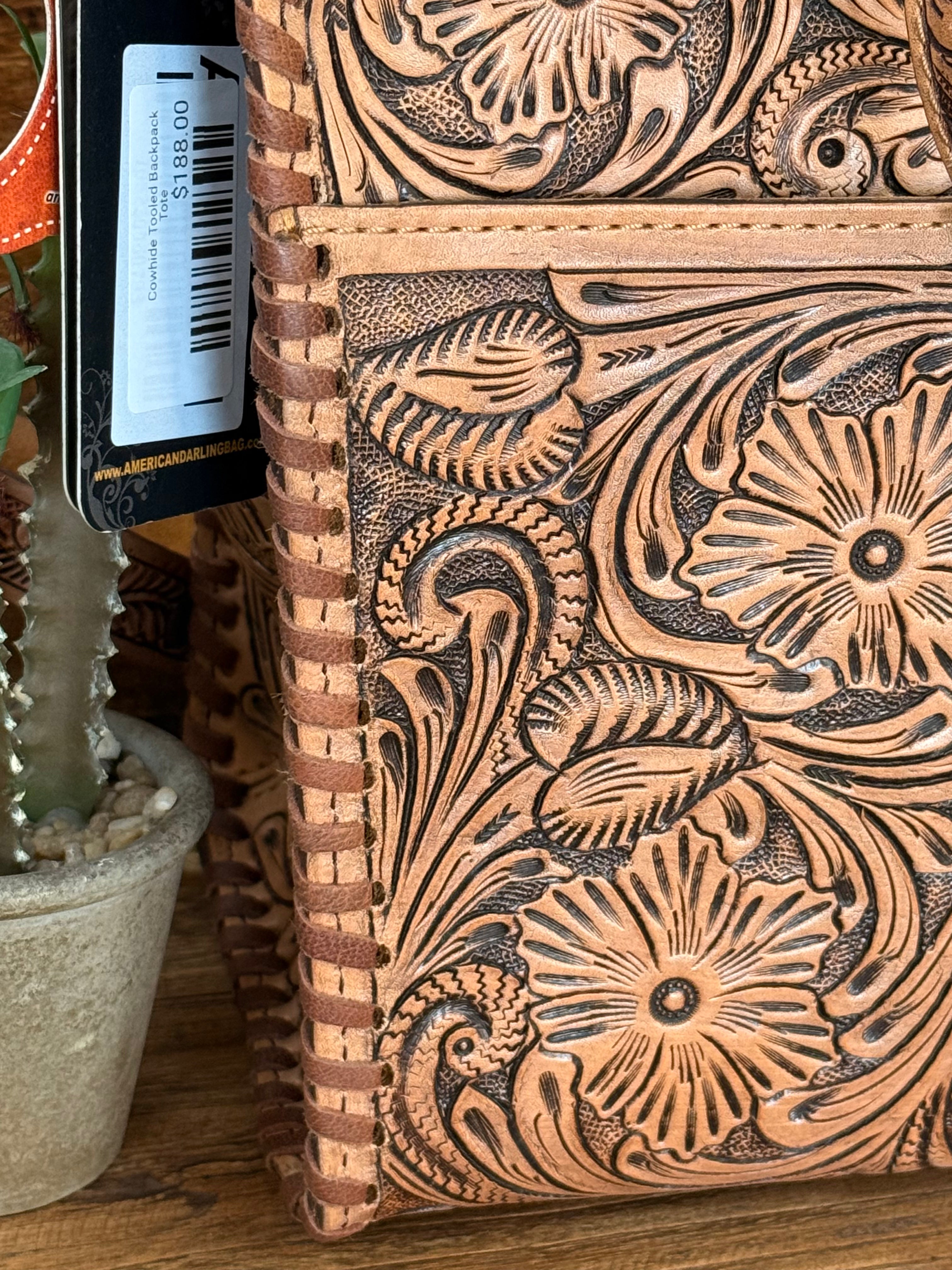 Cowhide Tooled Backpack Tote