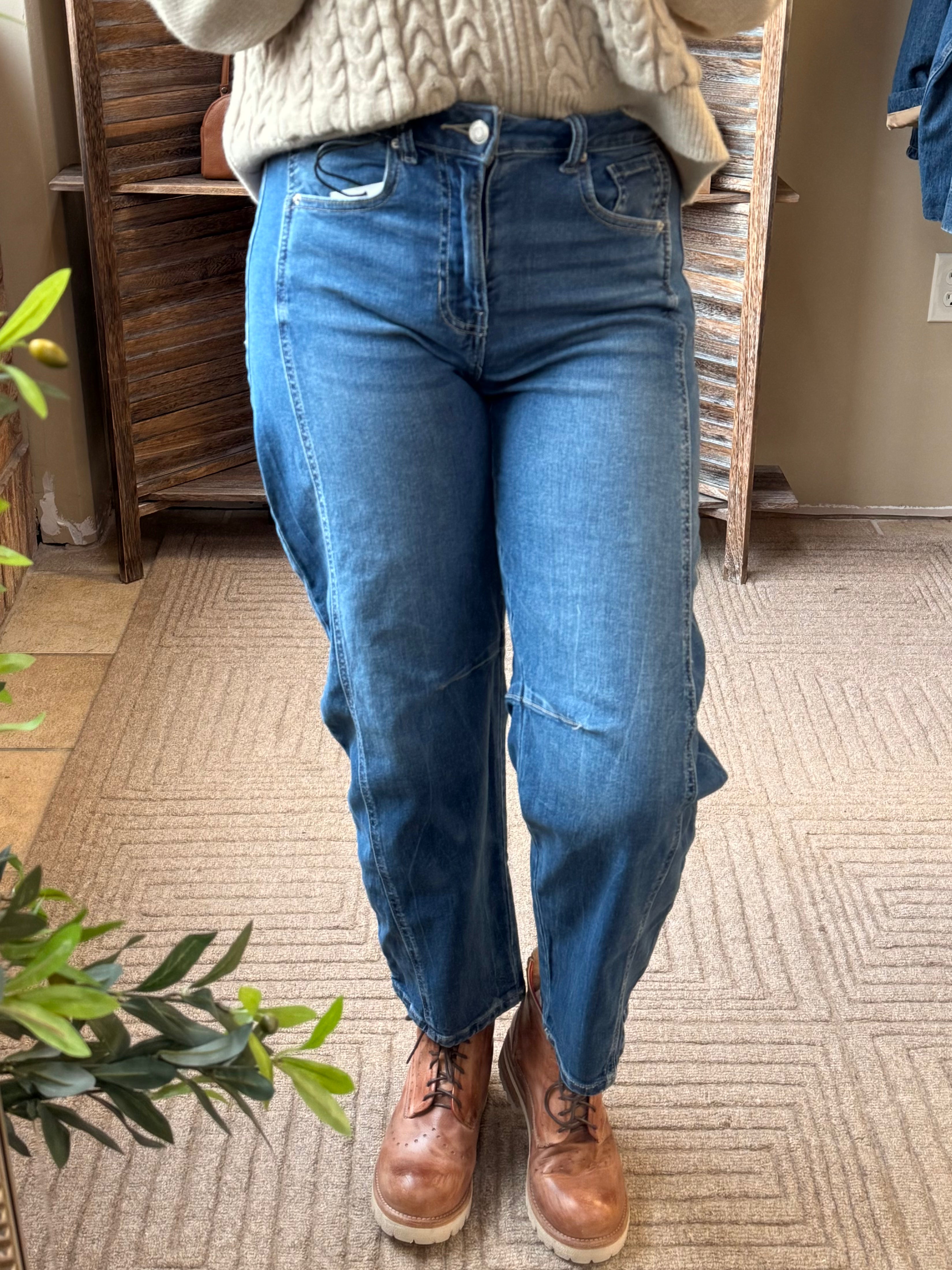 Cropped Barrel Jeans - Zenana