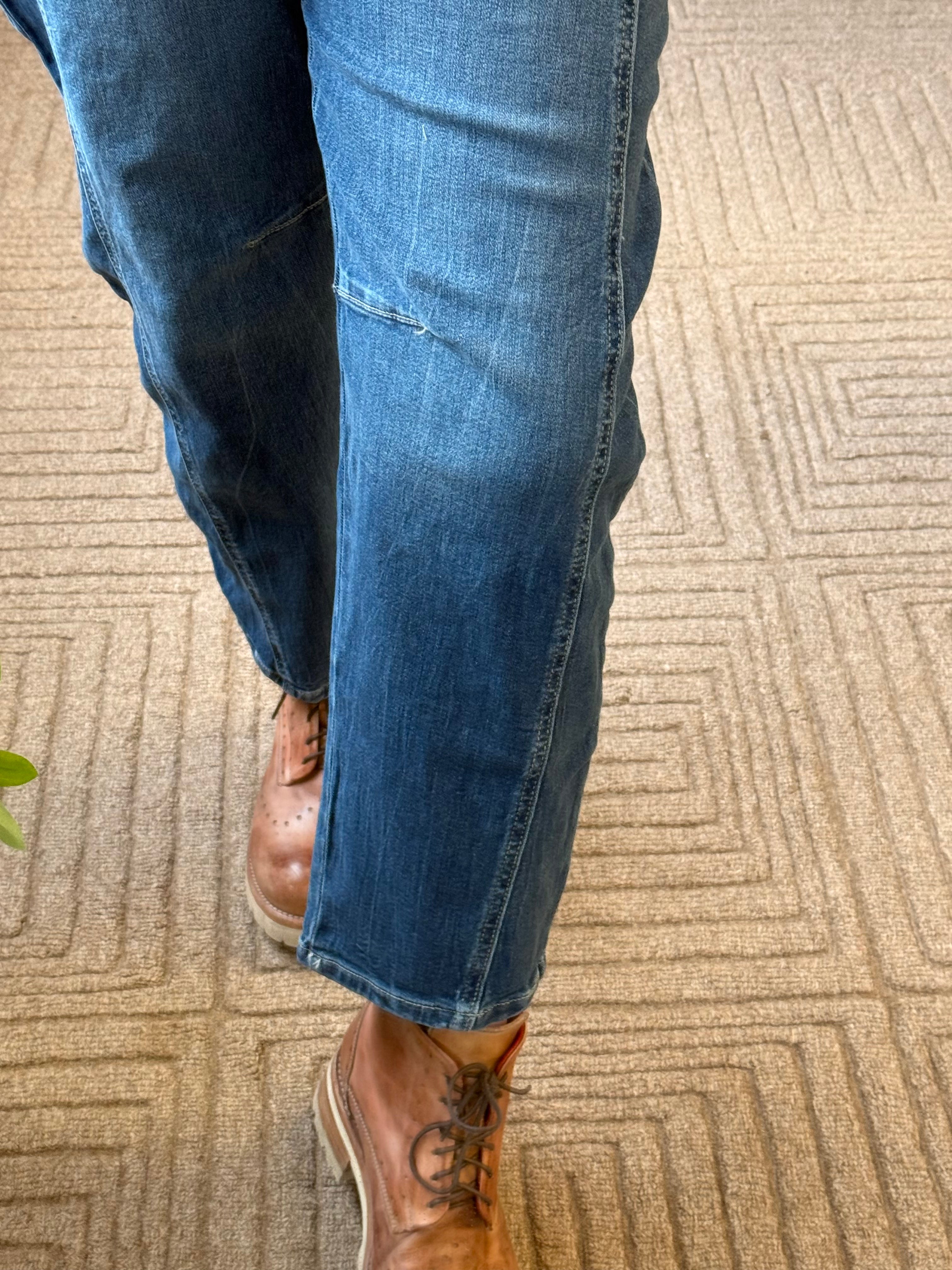 BARREL-LEG CROPPED DENIM PANTS FRONT RISE: 10.5", INSEAM: 25.5" approx. LEG OPENING: 16" approx.