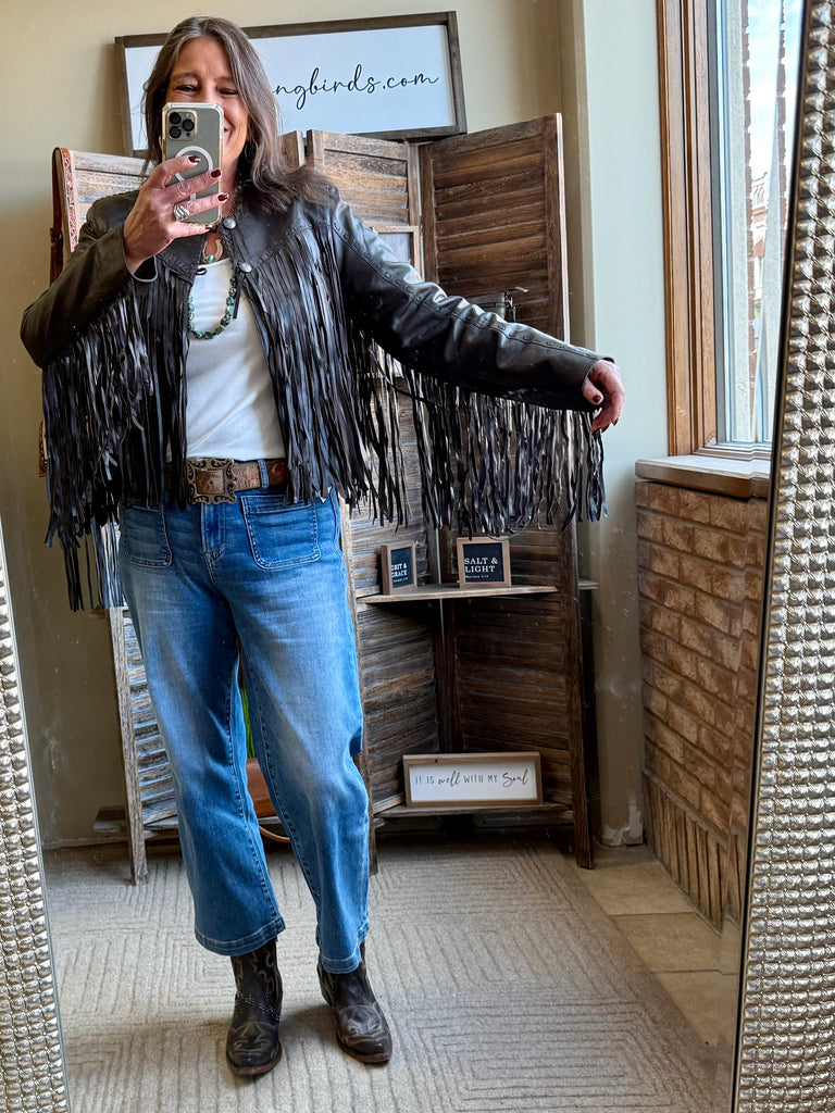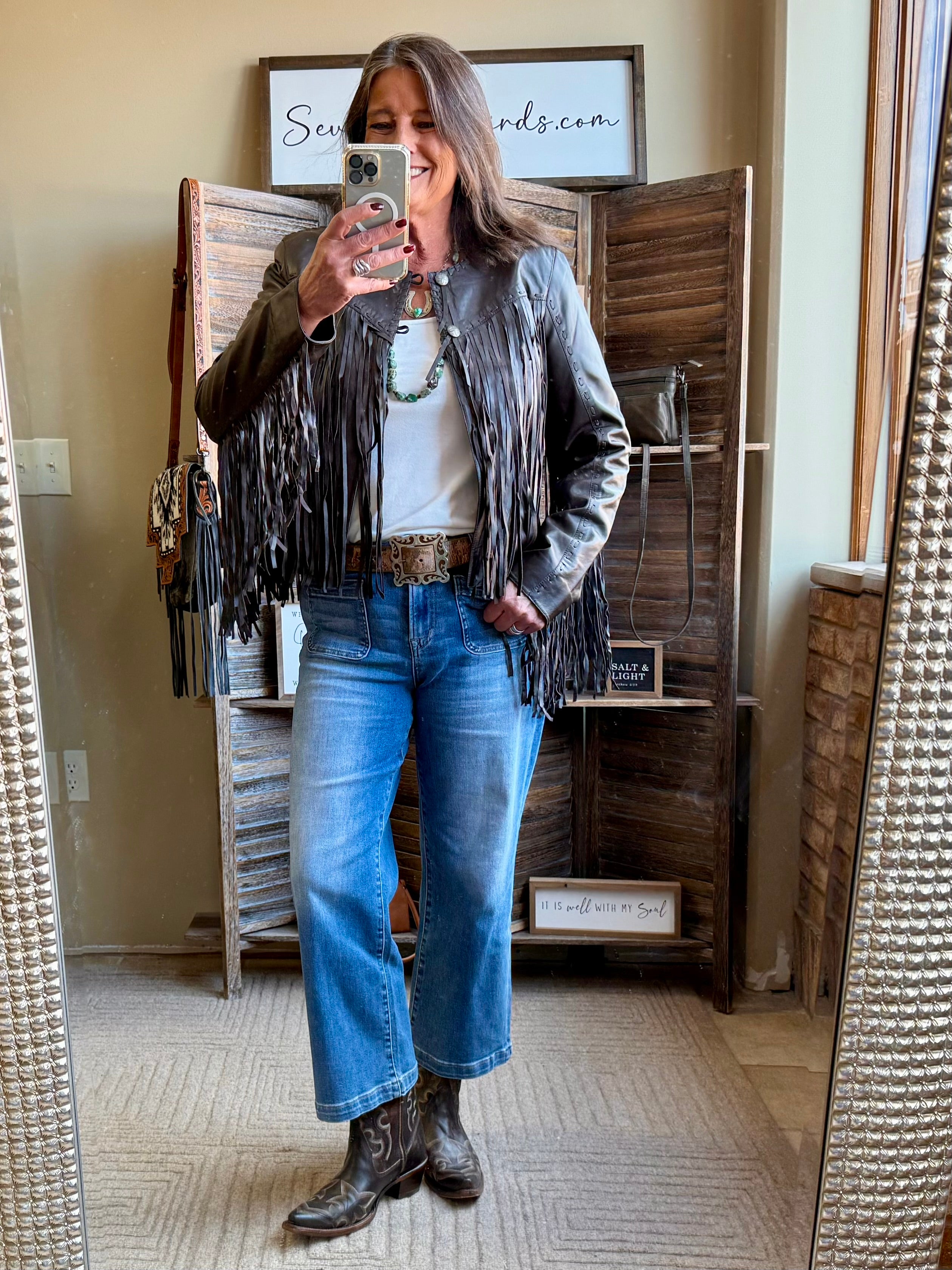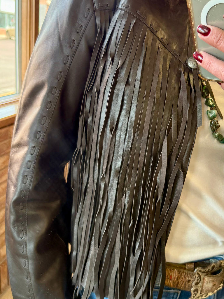 Beautiful smooth leather in a rich dark chocolate color. 2 buttons at top.