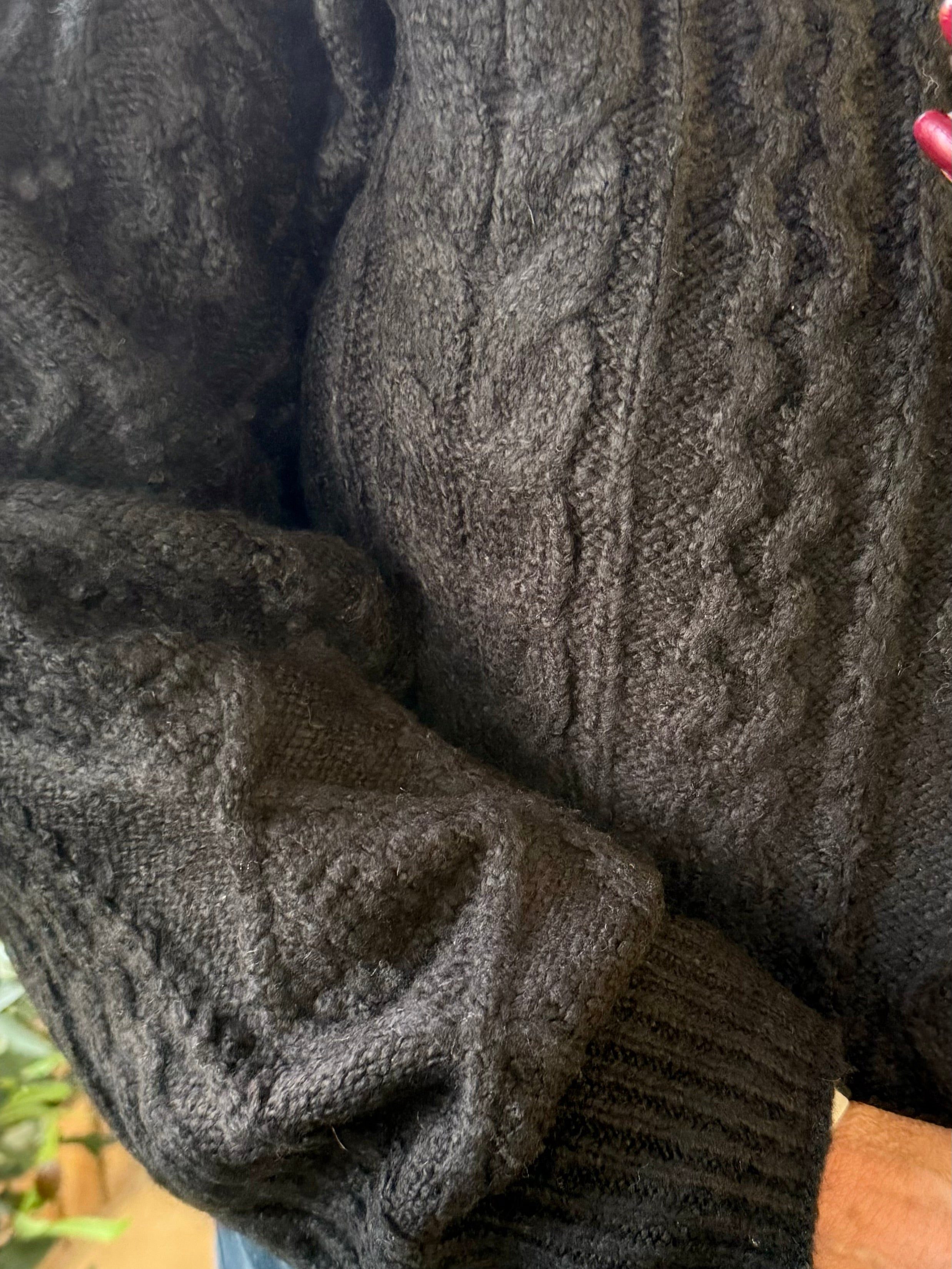 Black Cable Knit Crew Neck Sweater