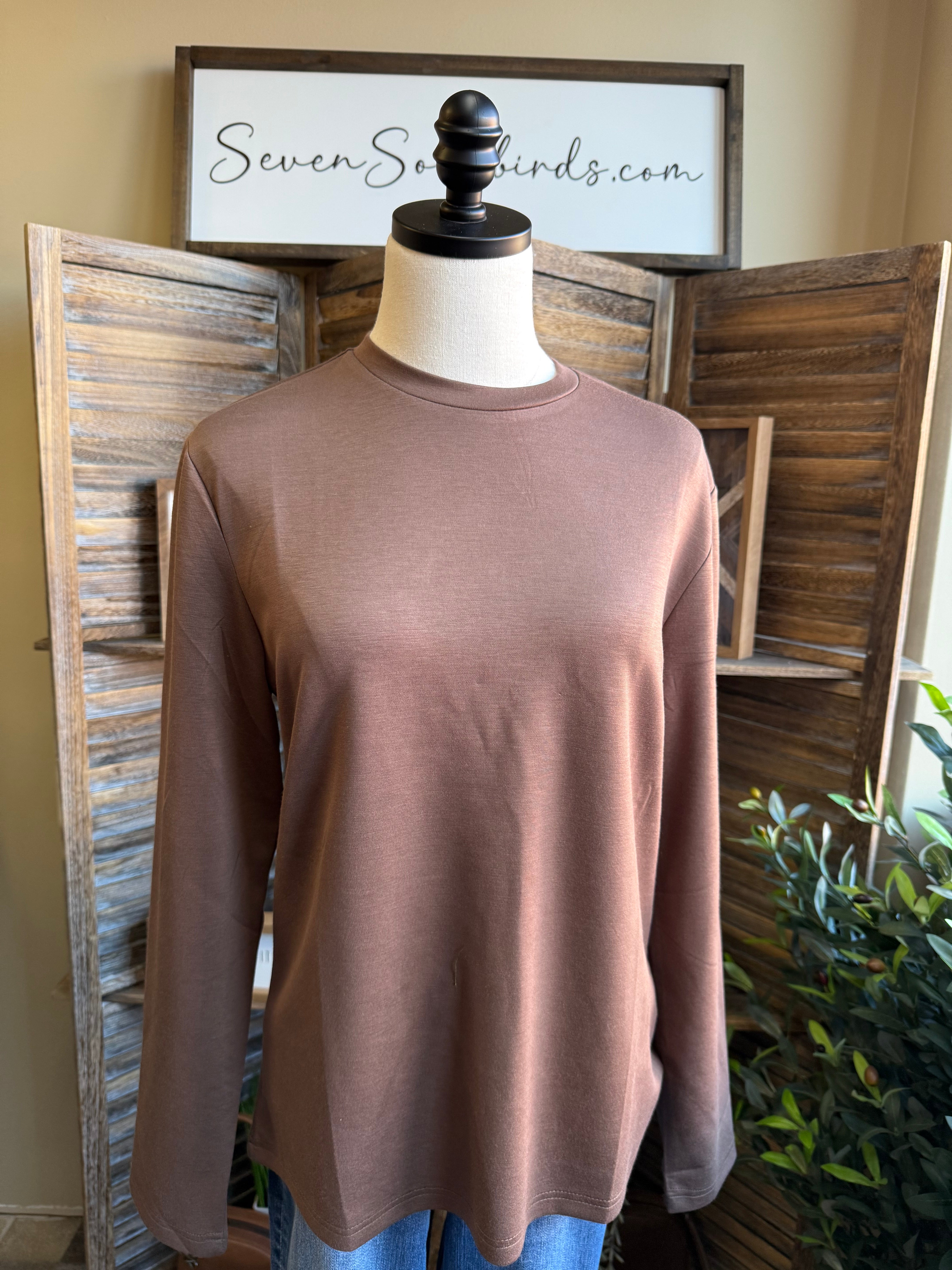 Chocolate Long Sleeve Crew Neck T Shirt