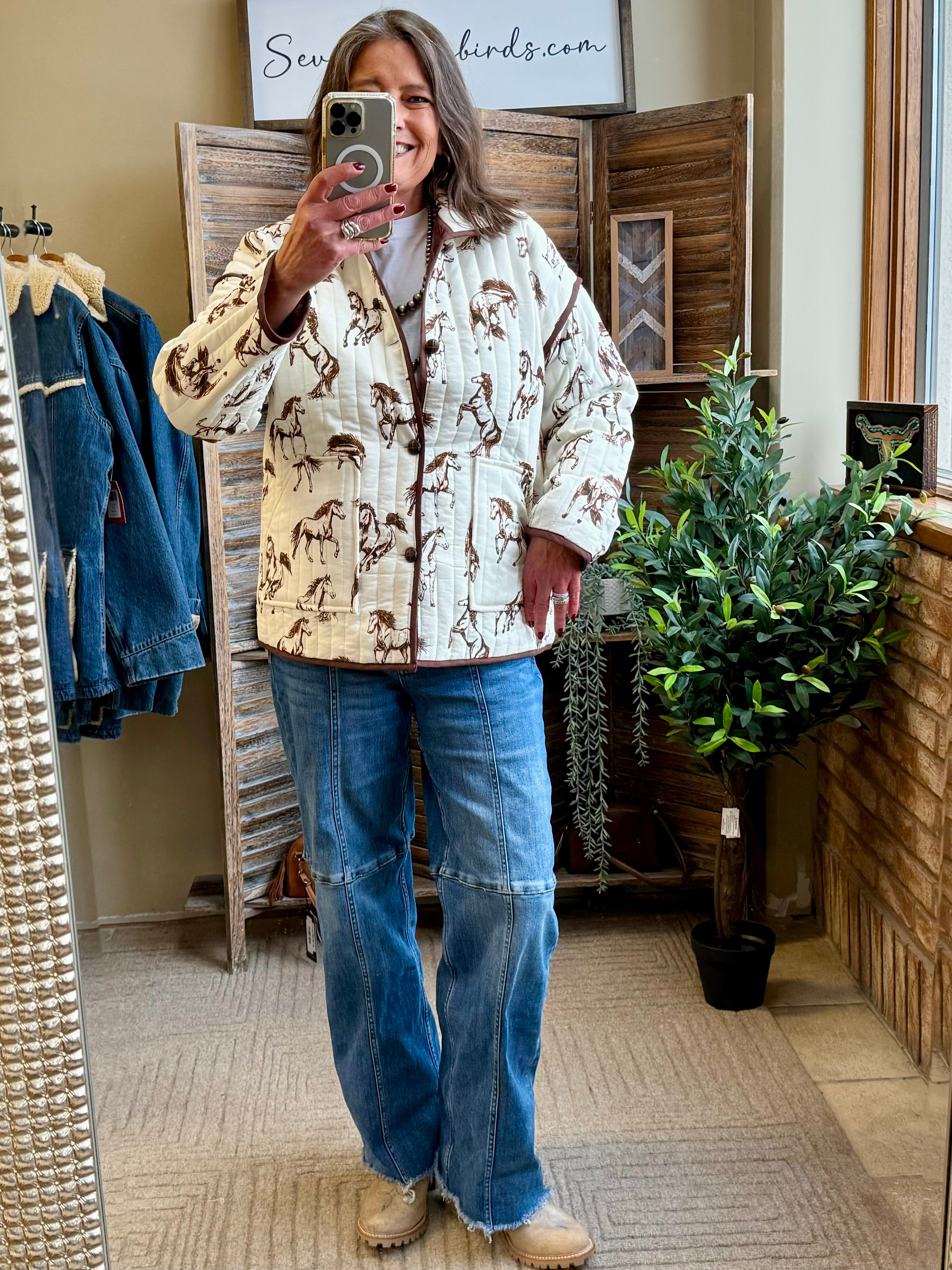 Fit: runs generously. I did size down 2 to the small. Perfect for a light layer or to wear as a blazer cardigan. Size down 1 to wear as outerwear with a heavier layer.