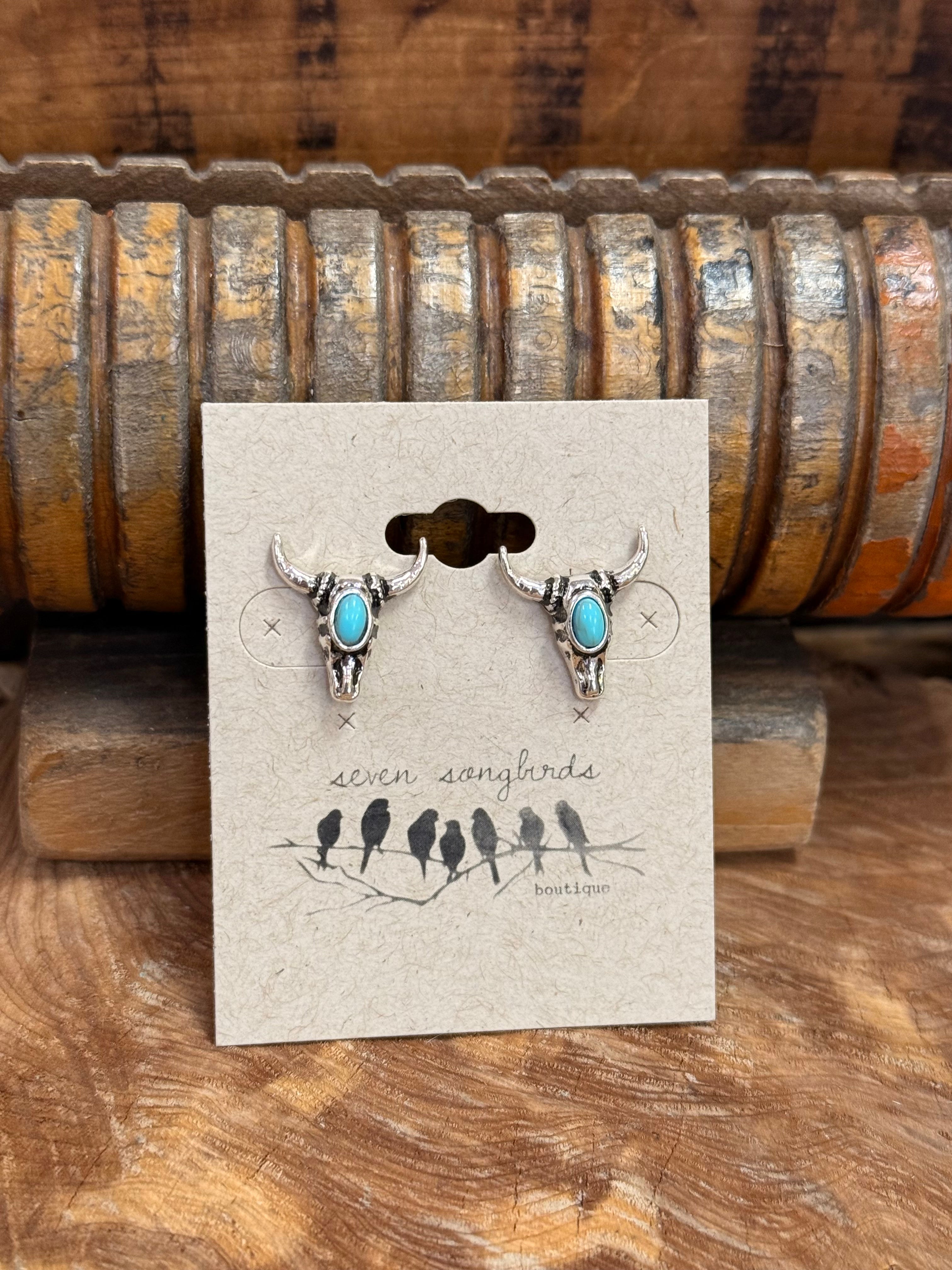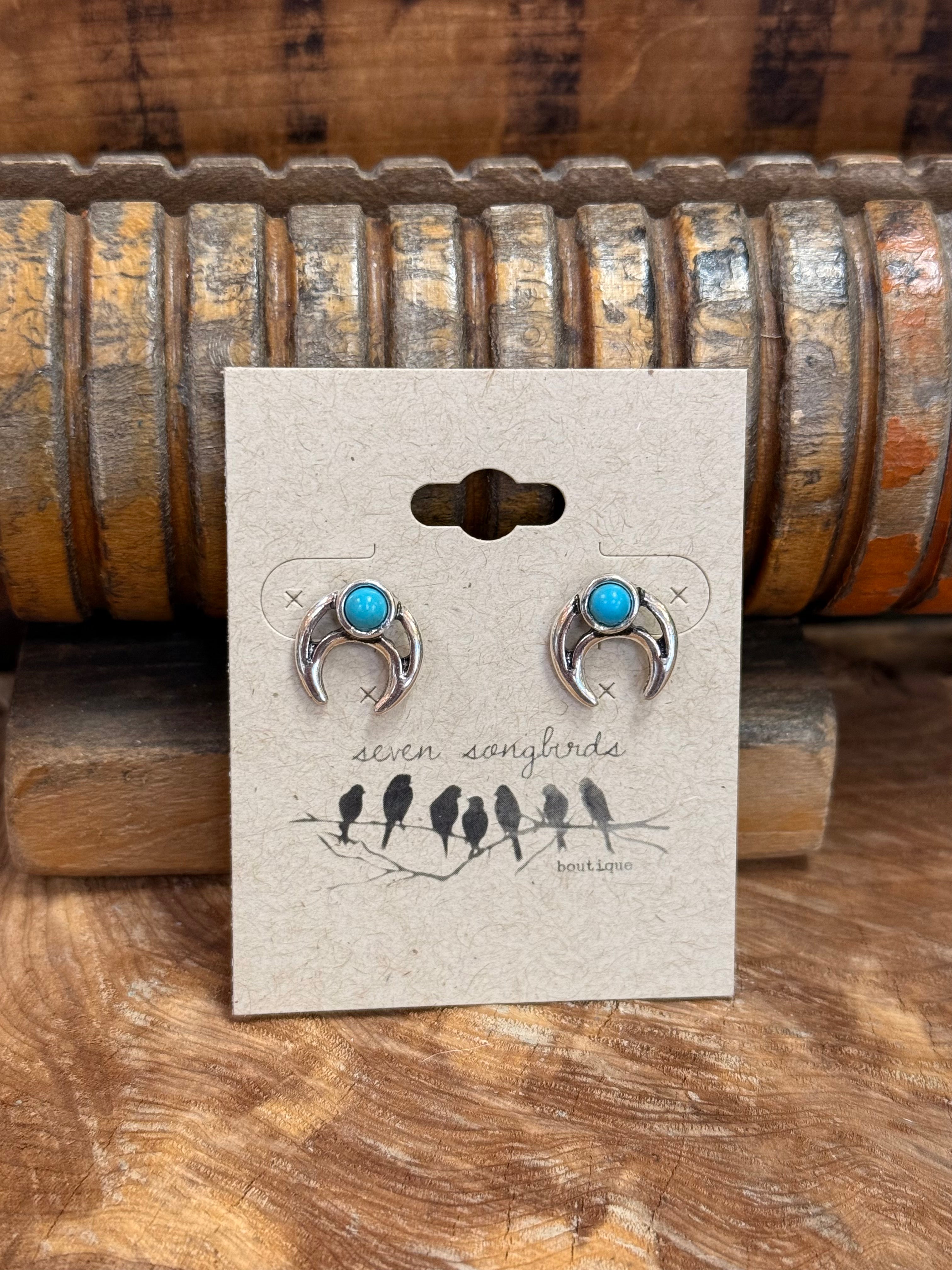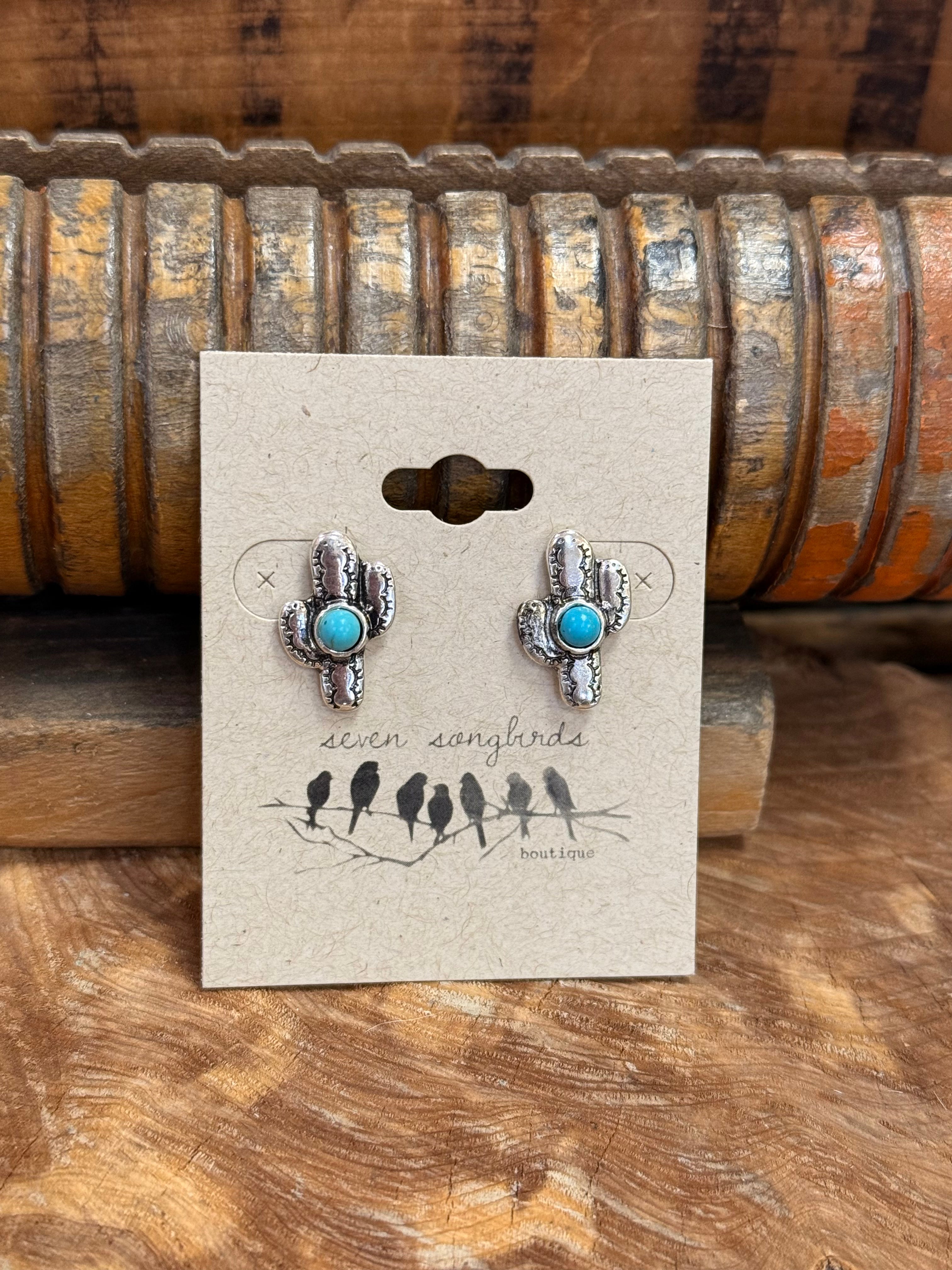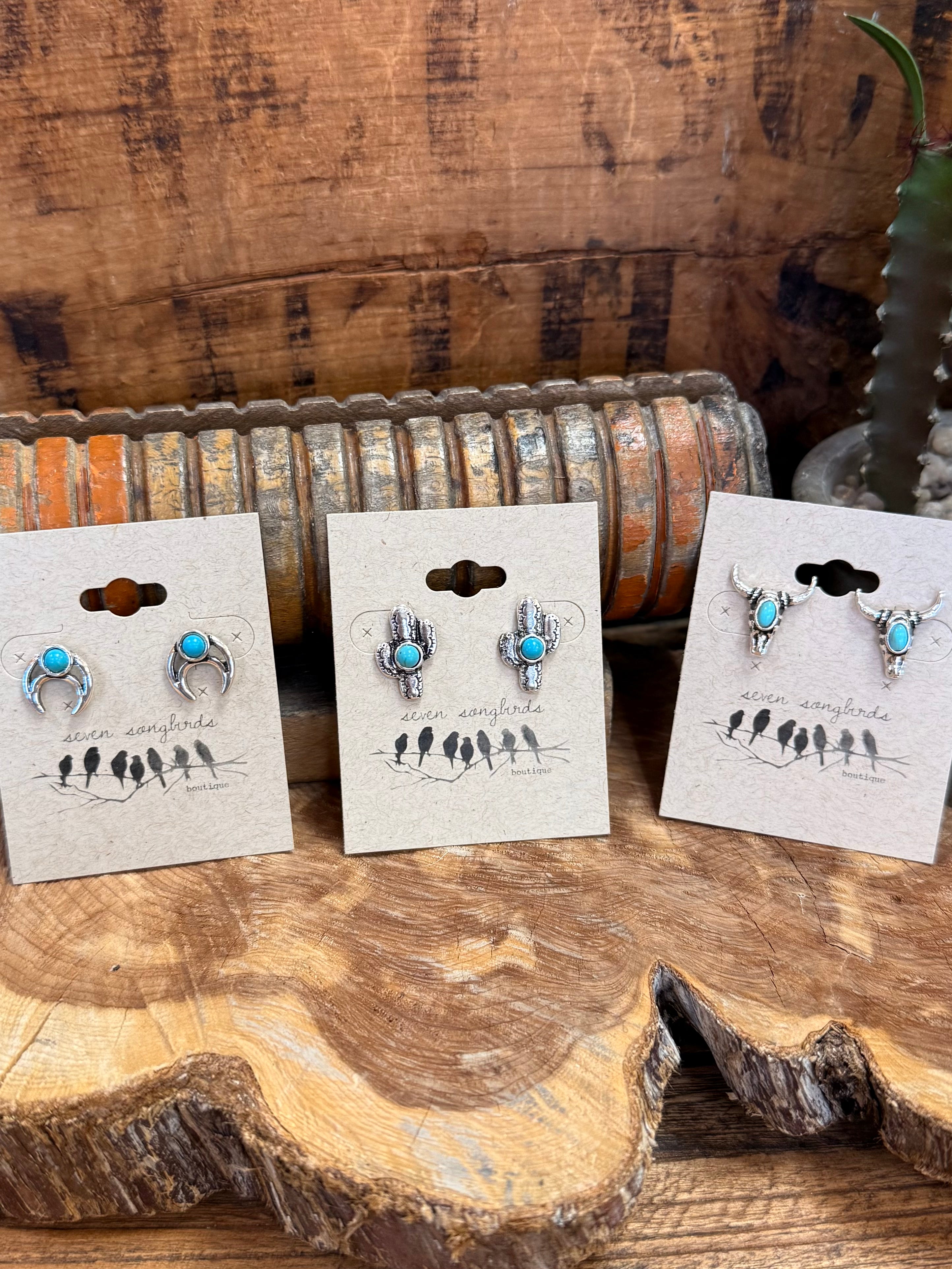Silver & Turquoise Stud Earrings | Horseshoe, Cactus, & Longhorn