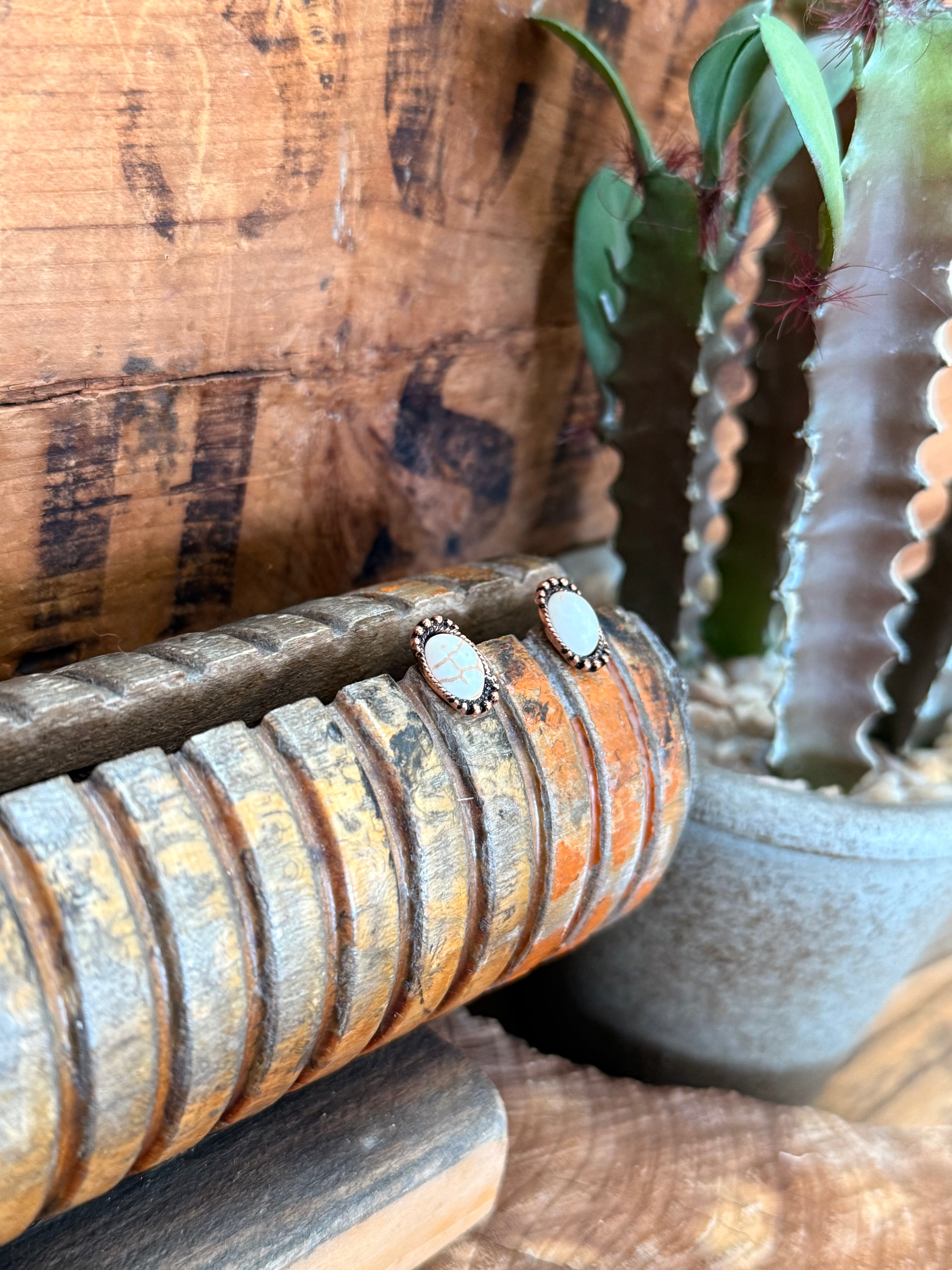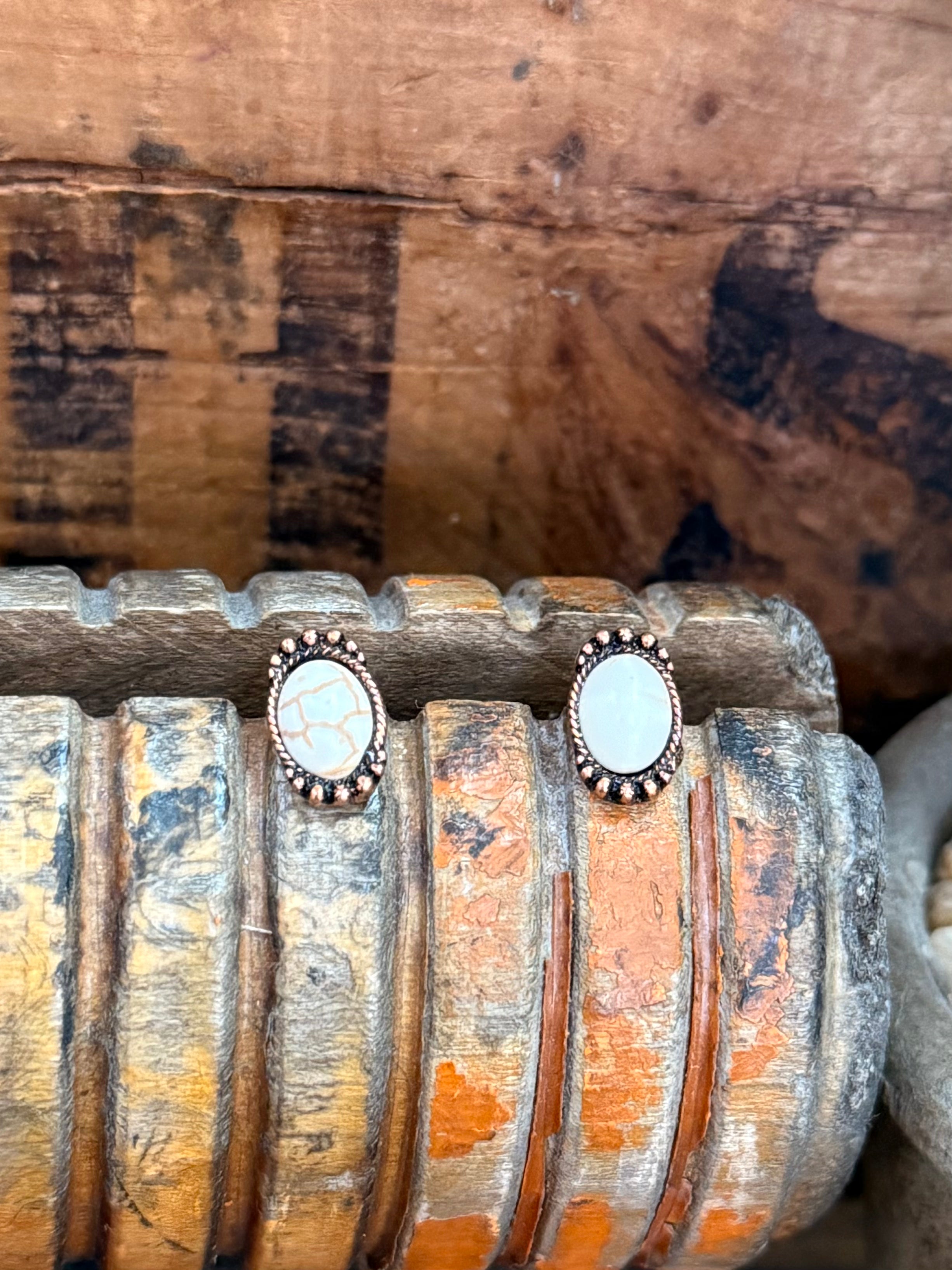 Copper Oval Stud Earrings