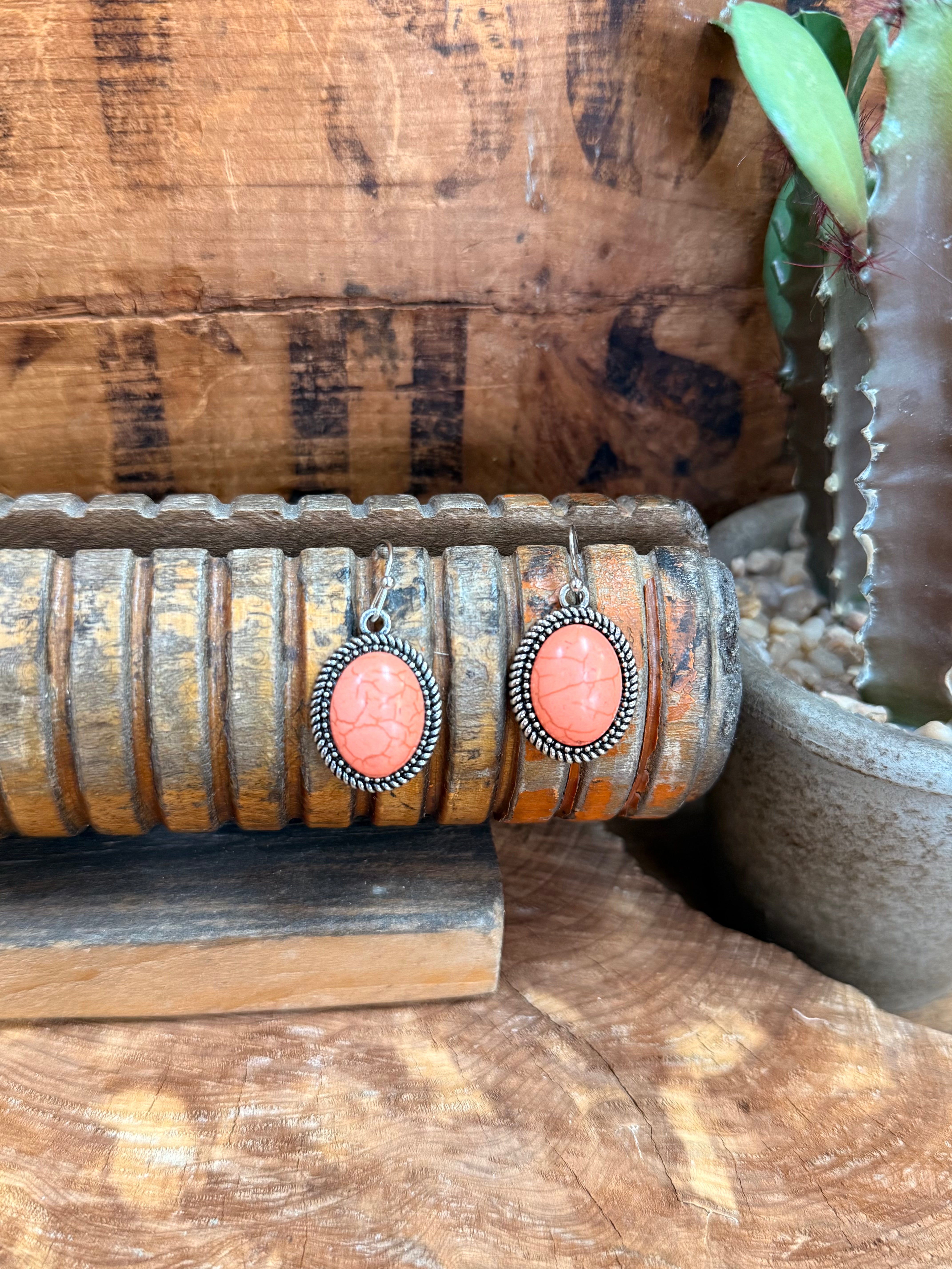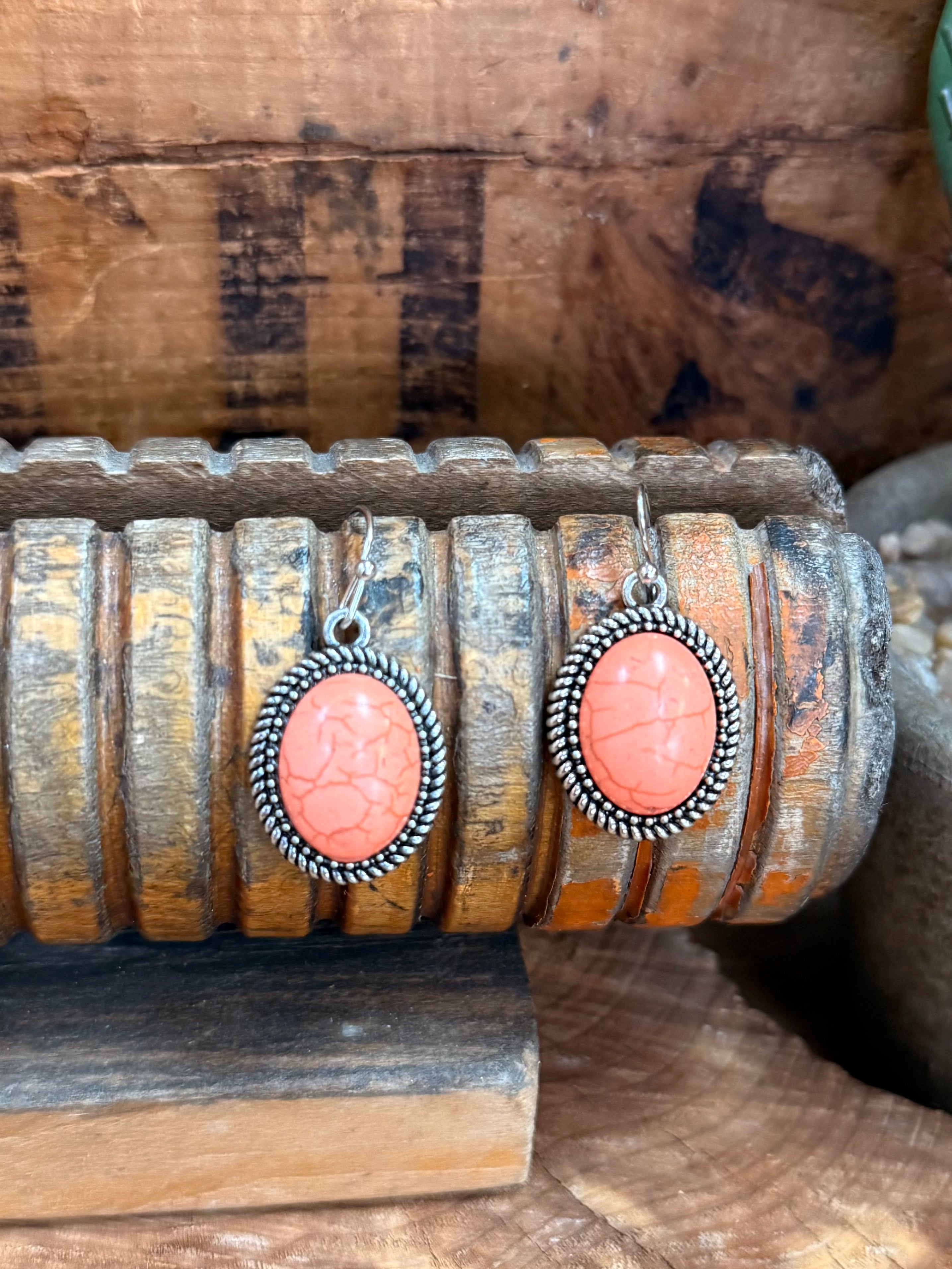 Coral and Silver Fish Hook Earrings