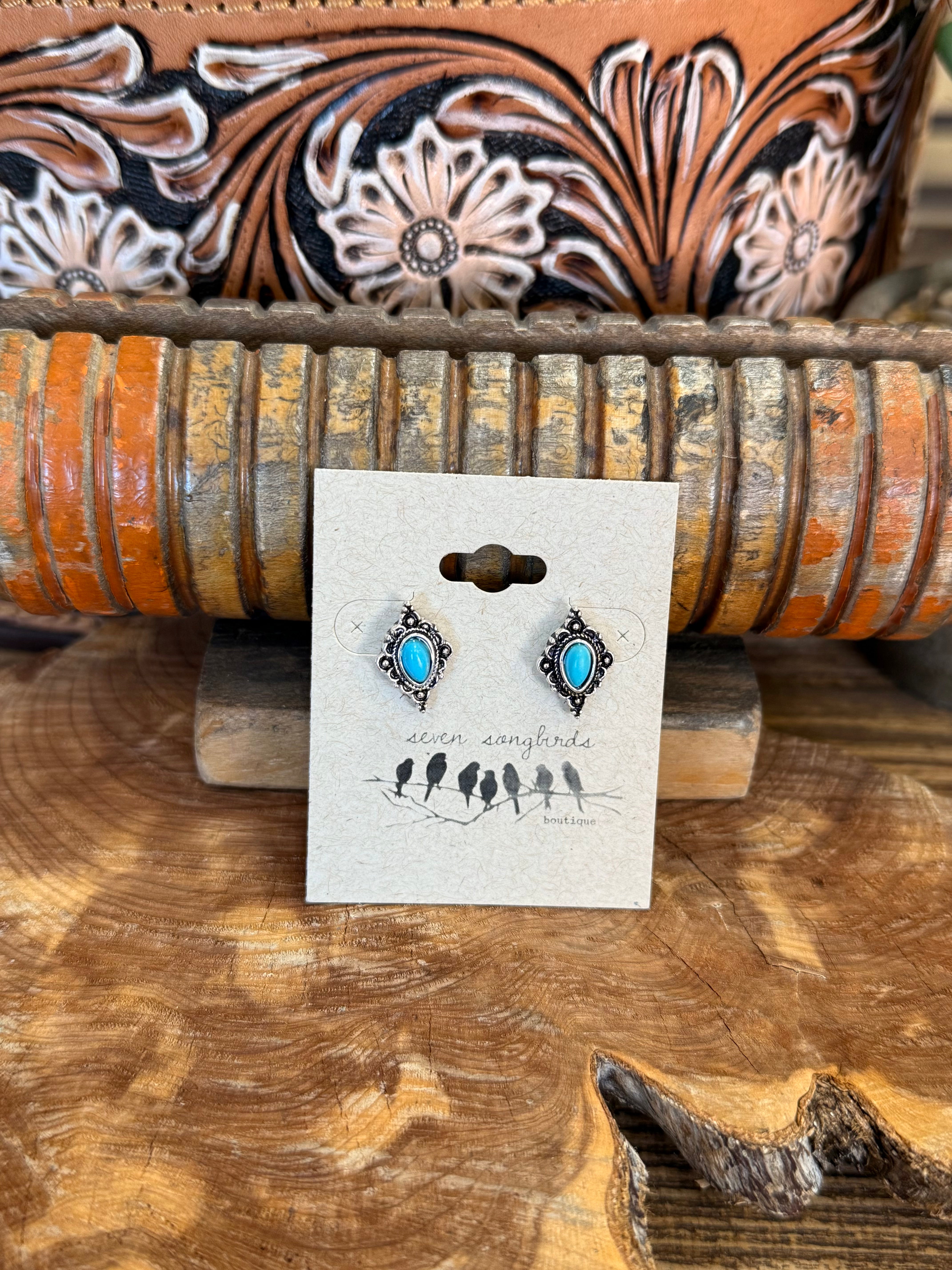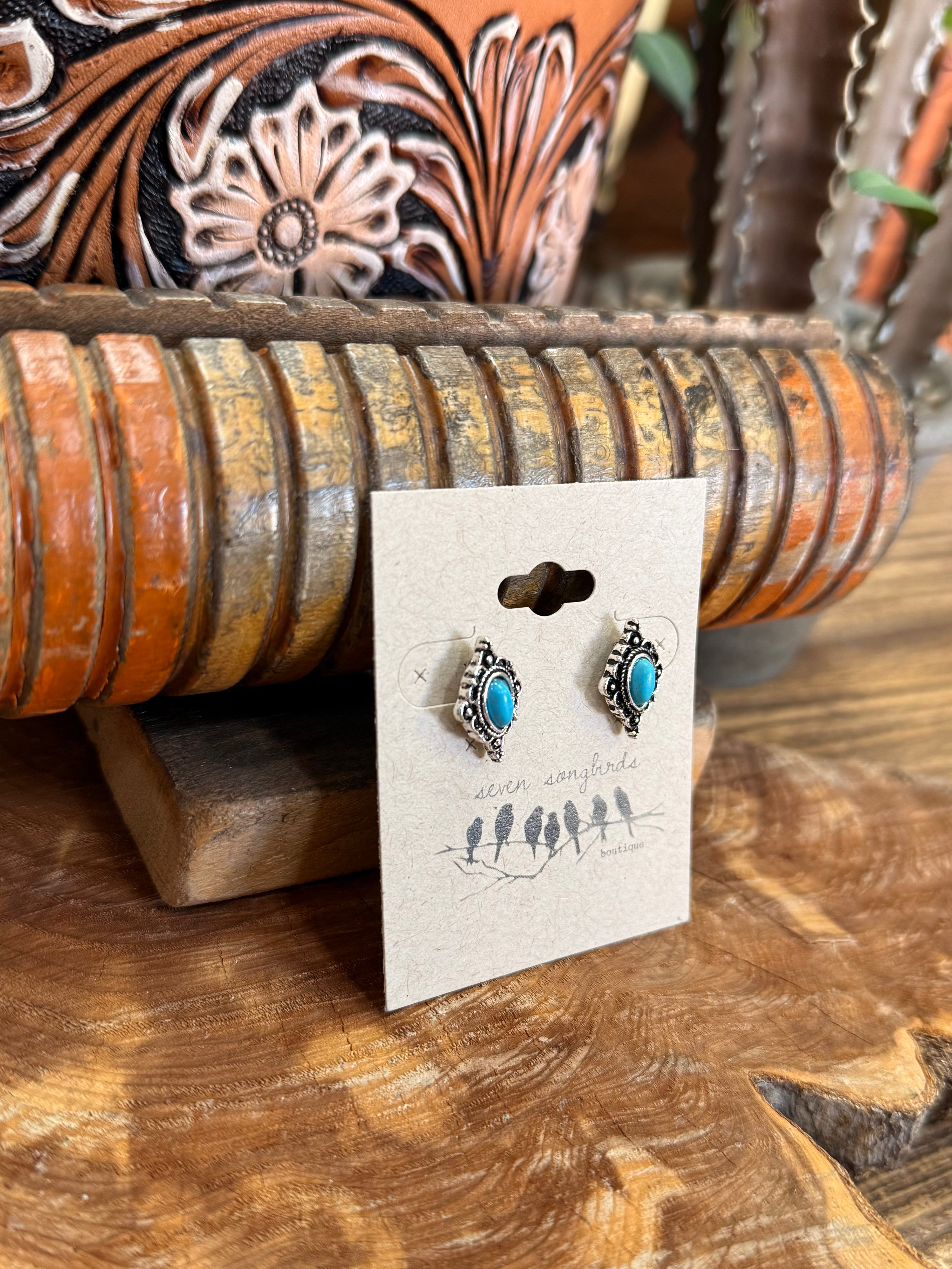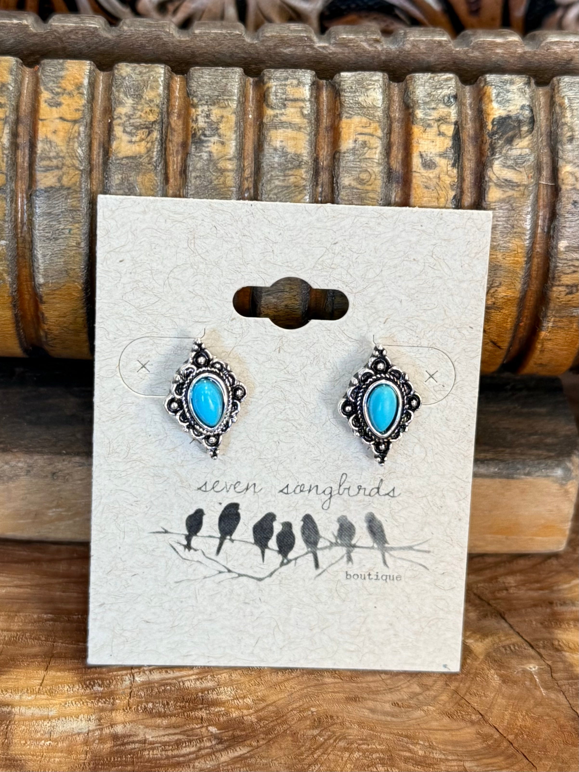 Silver & Turquoise Diamond Stud Earrings