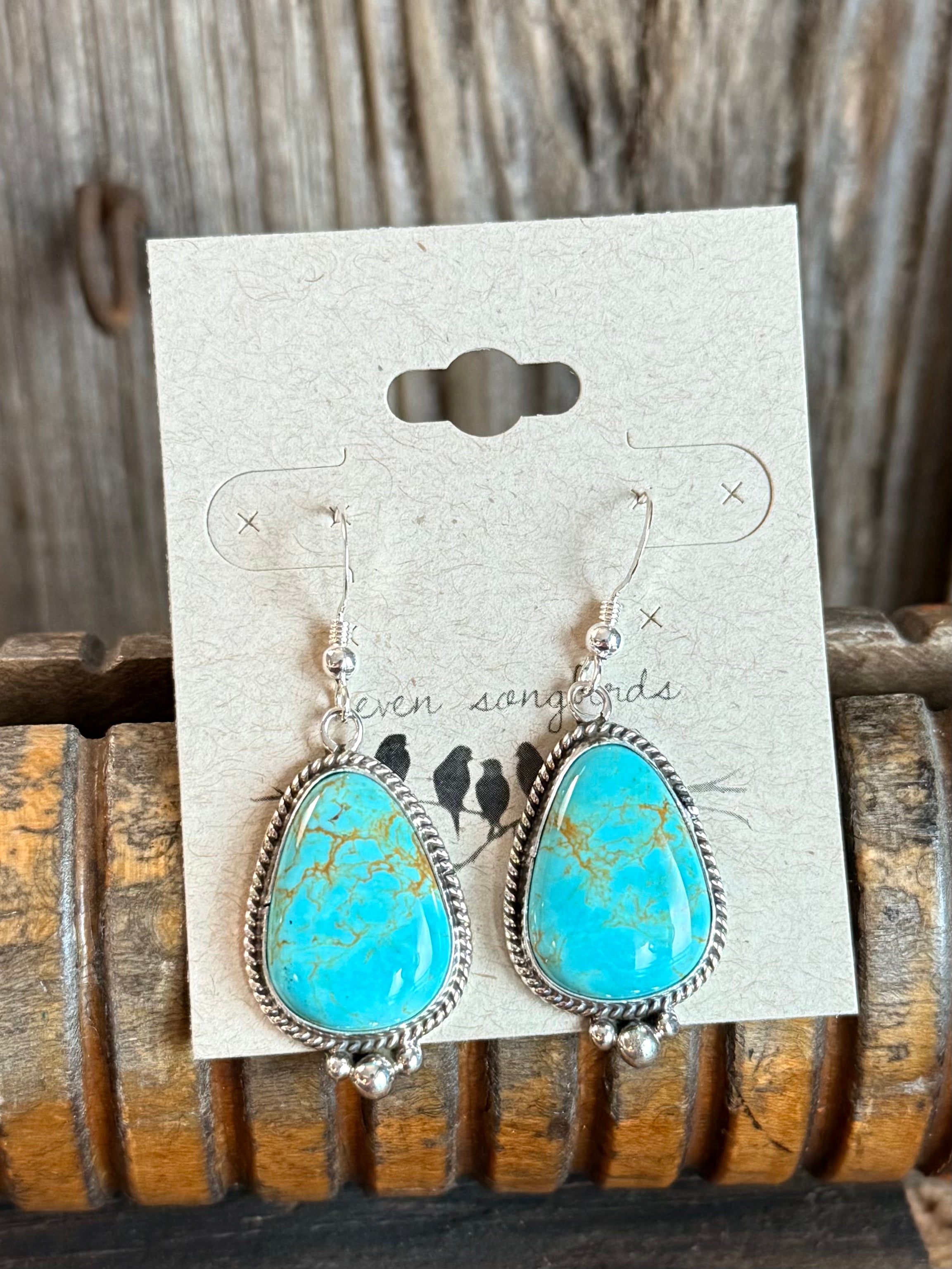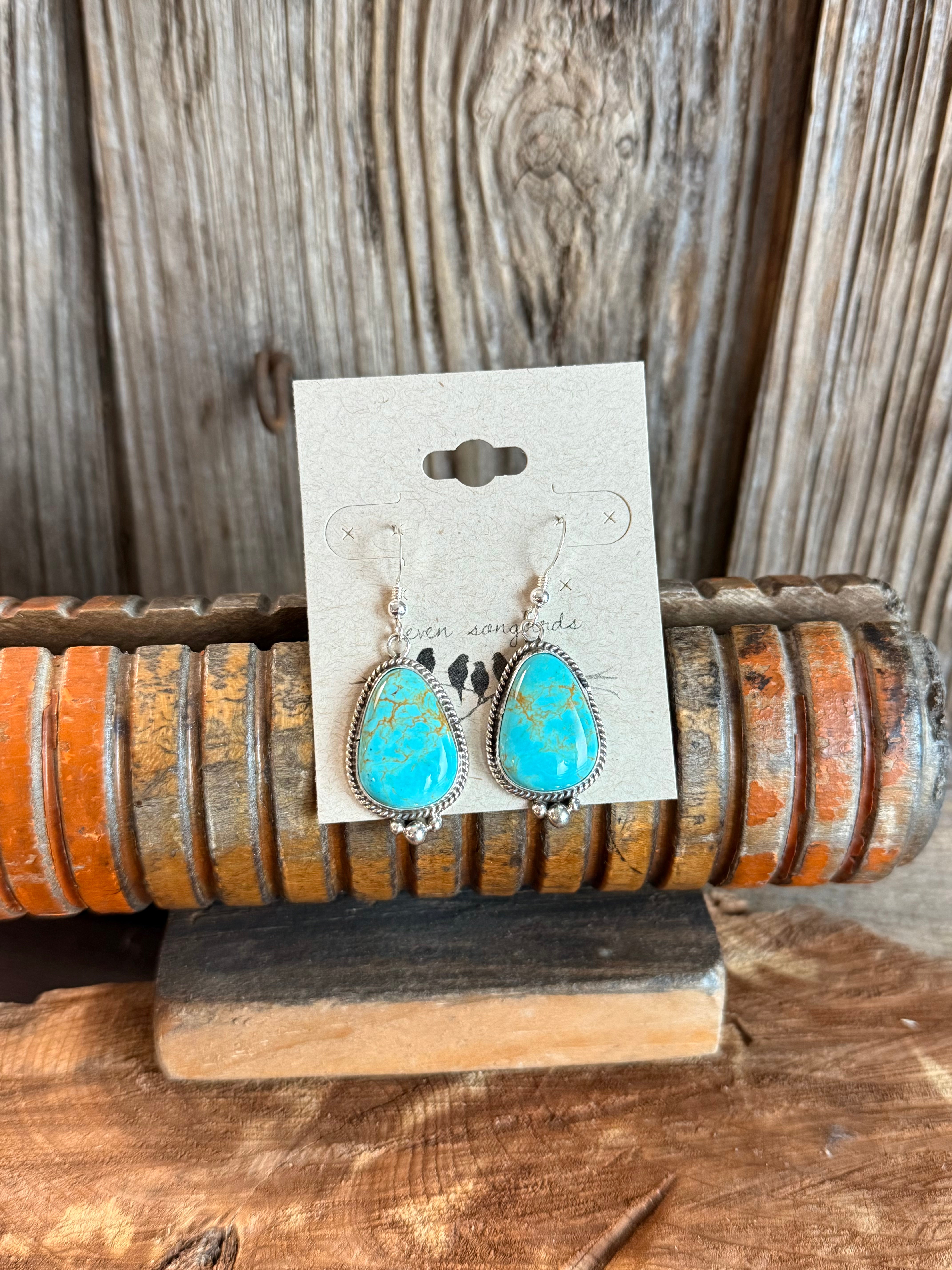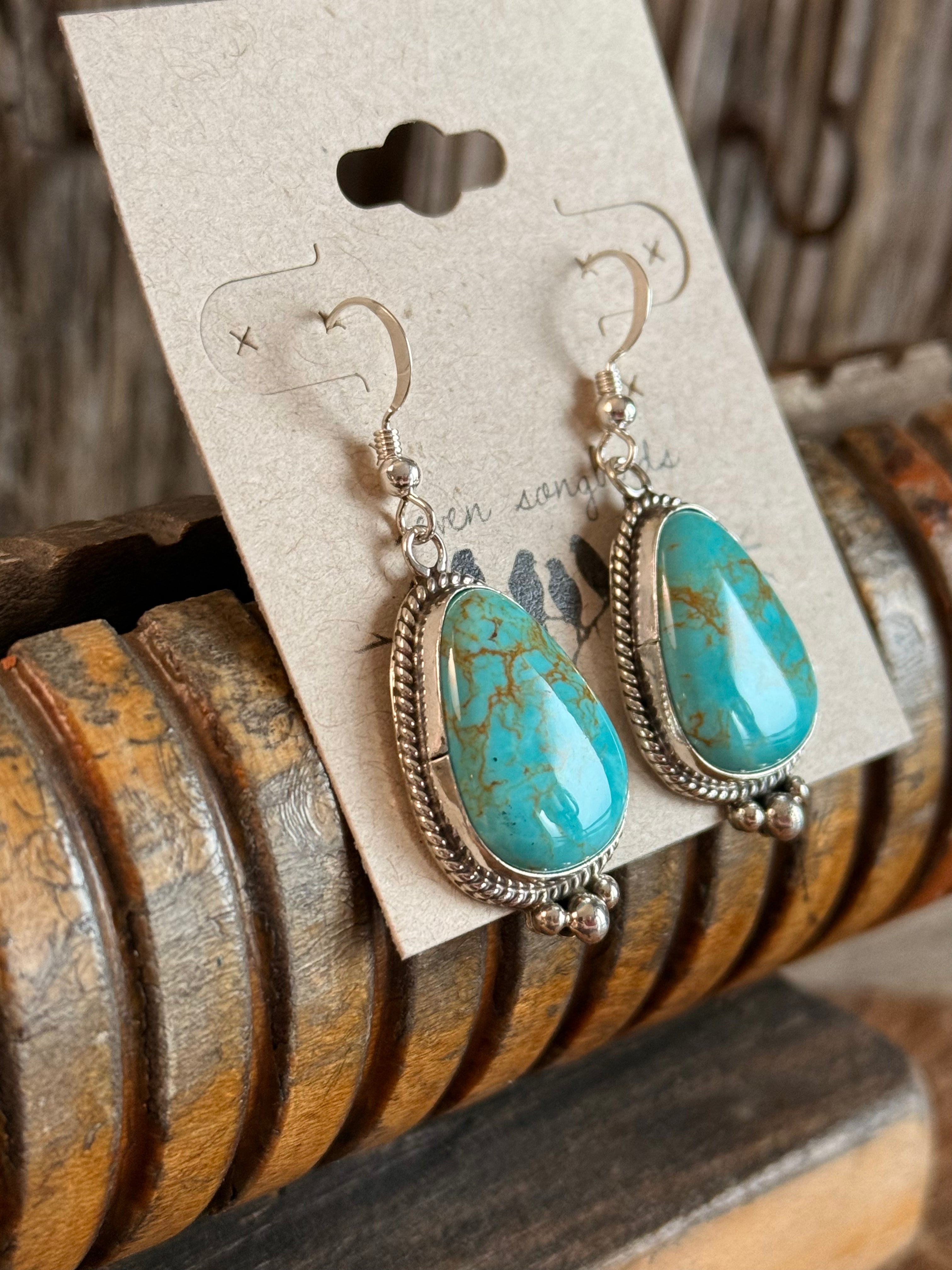 Native Made Sterling Silver and Turquoise Fishhook Earrings