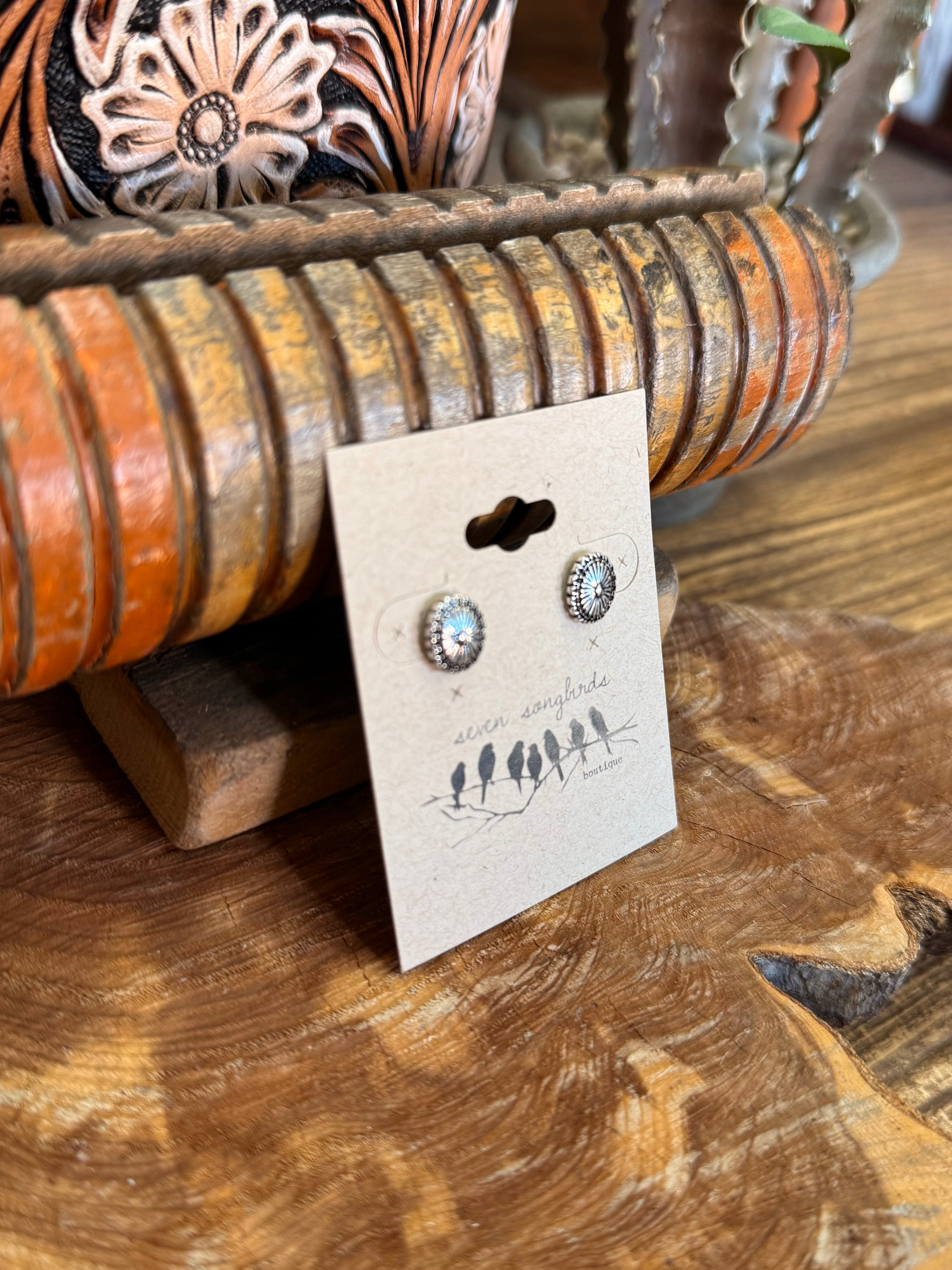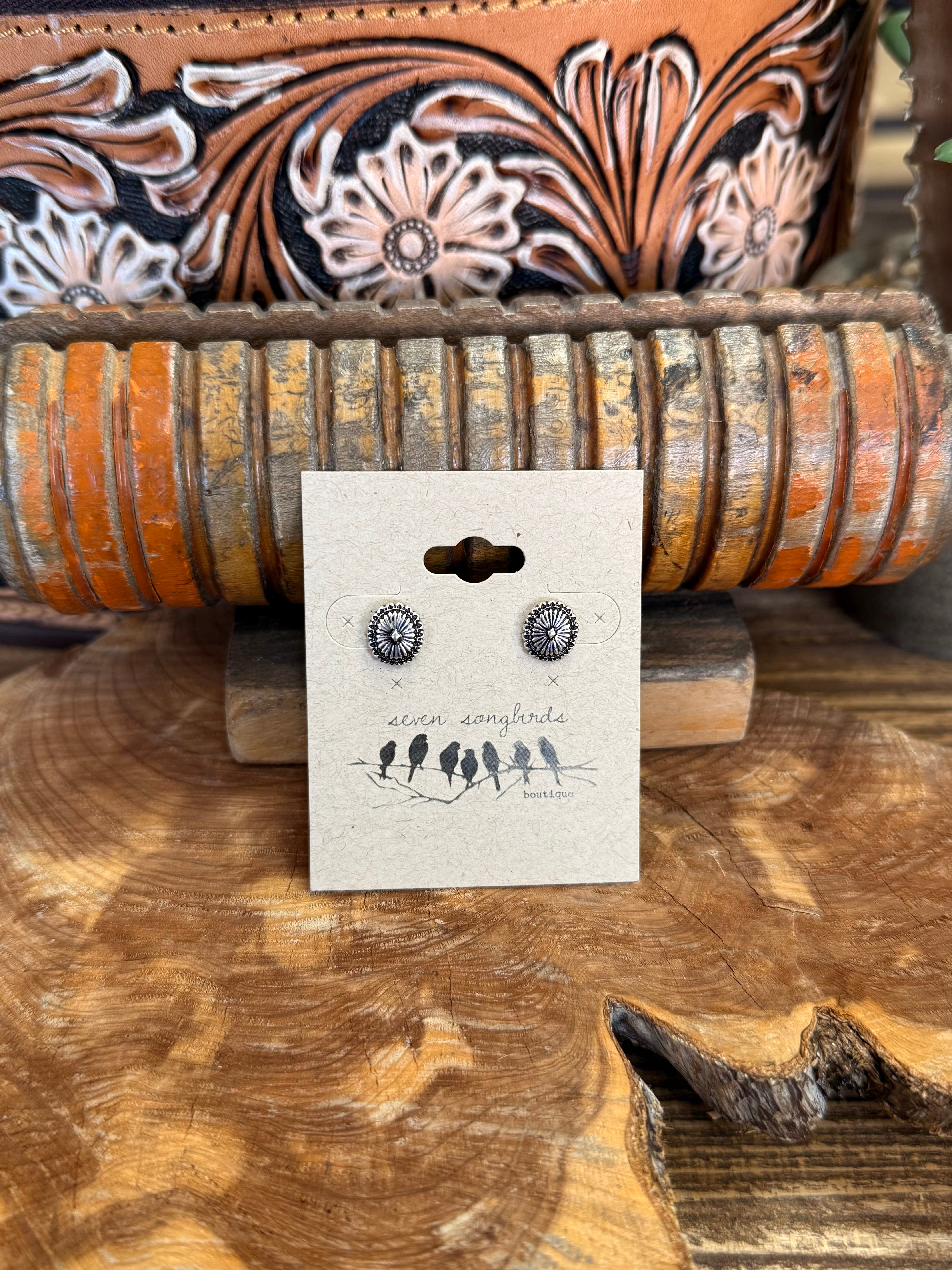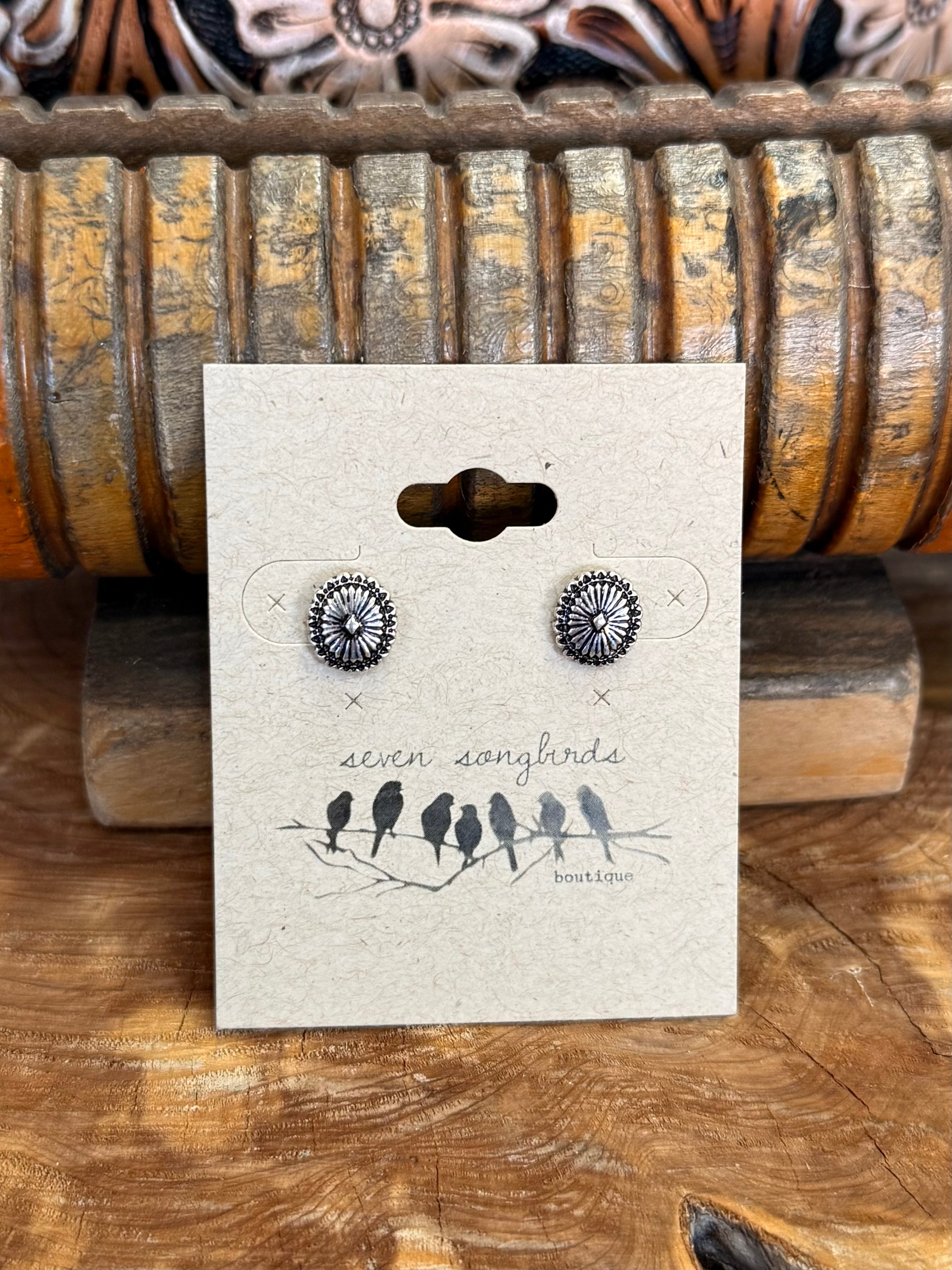 Dainty Silver Concho Stud Earrings