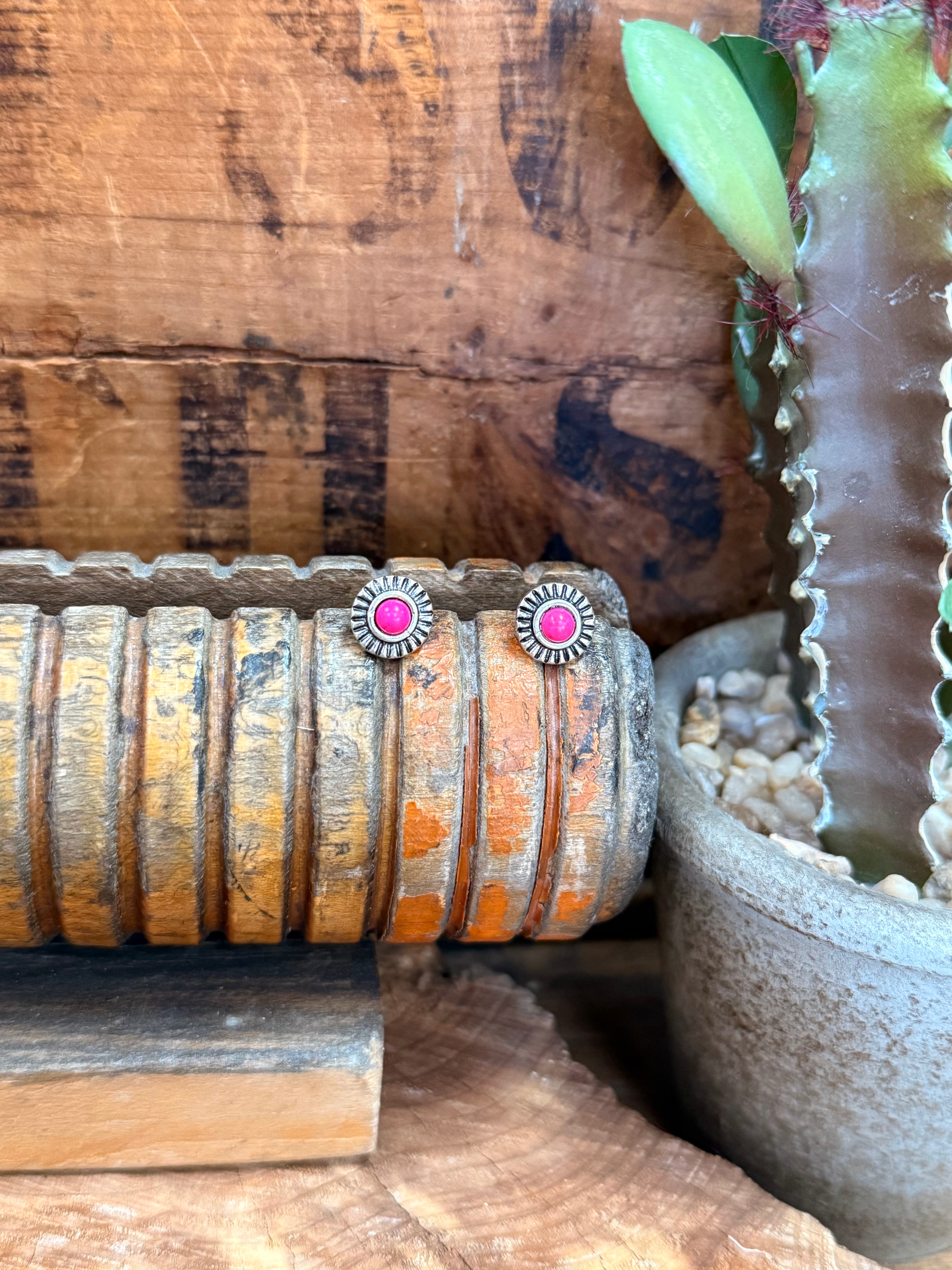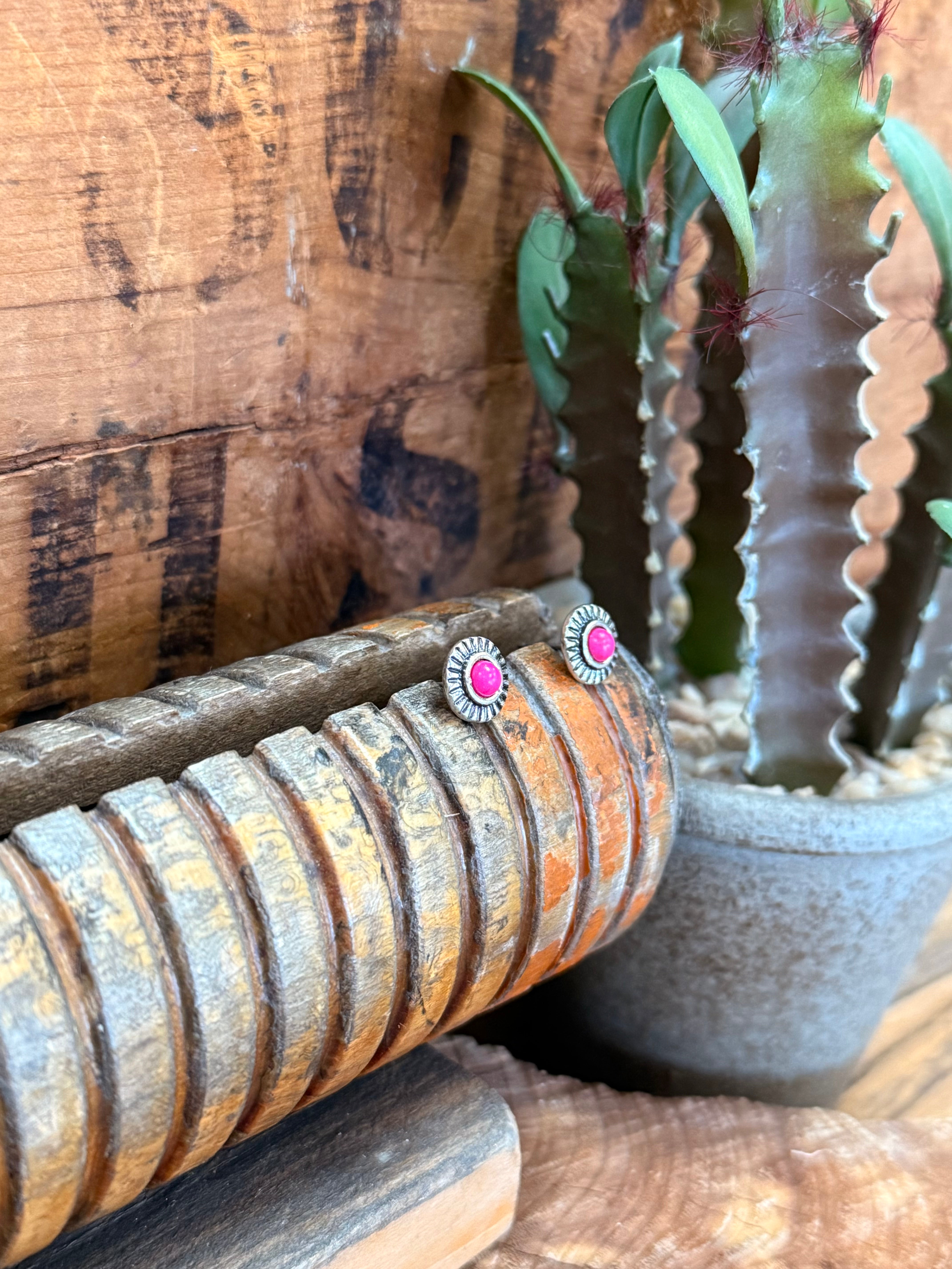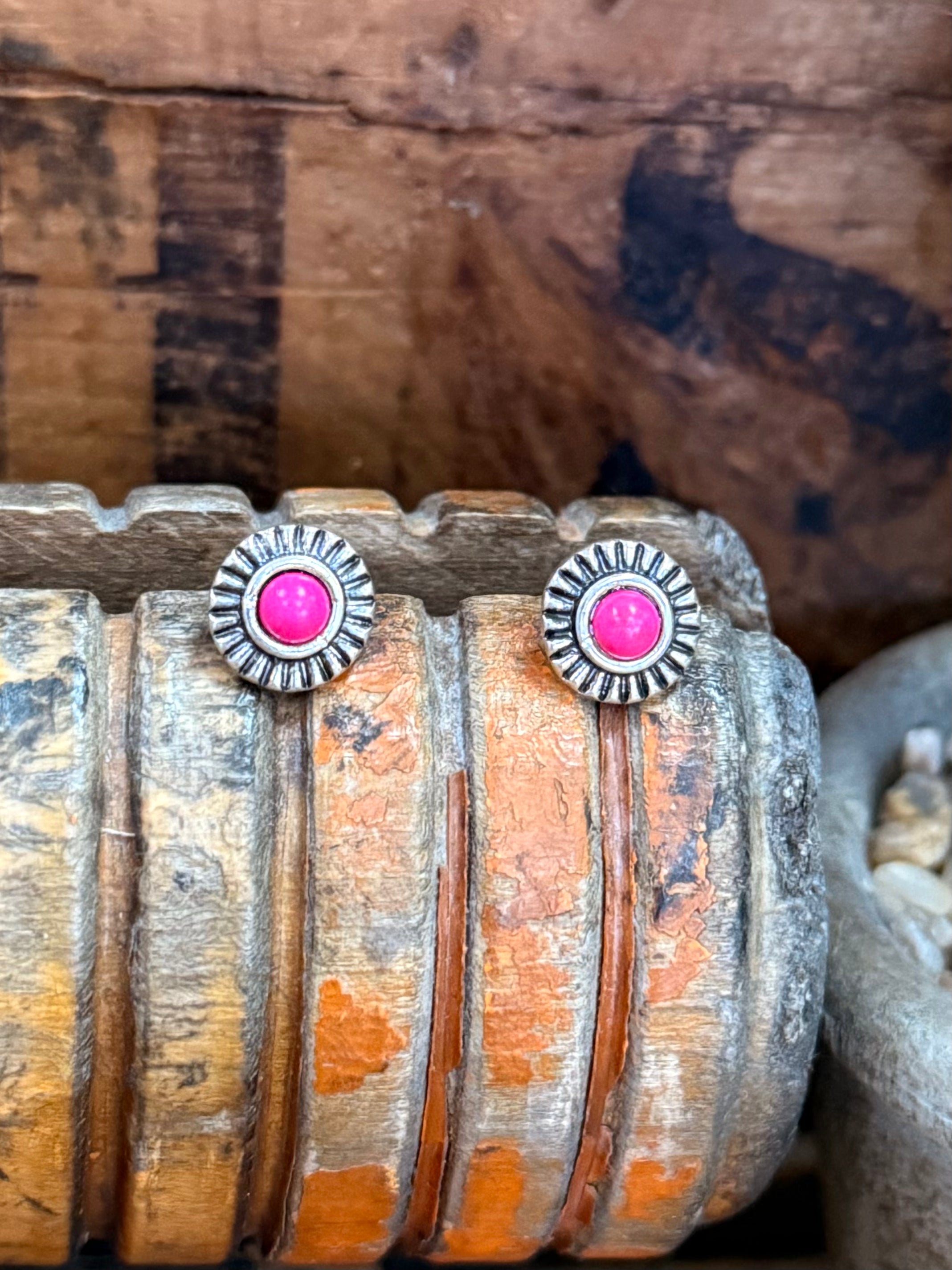 Silver & Pink Circle Stud Earrings