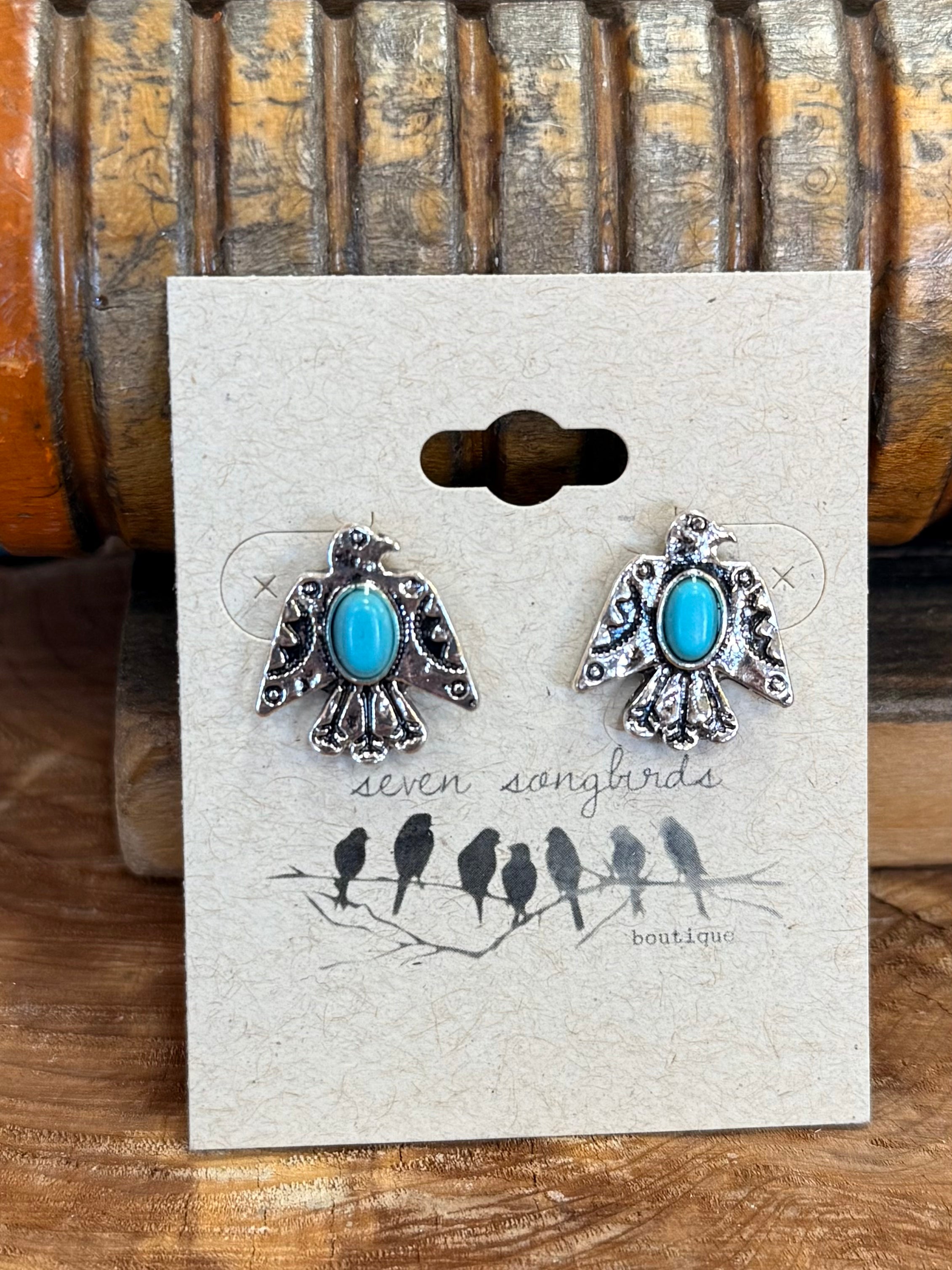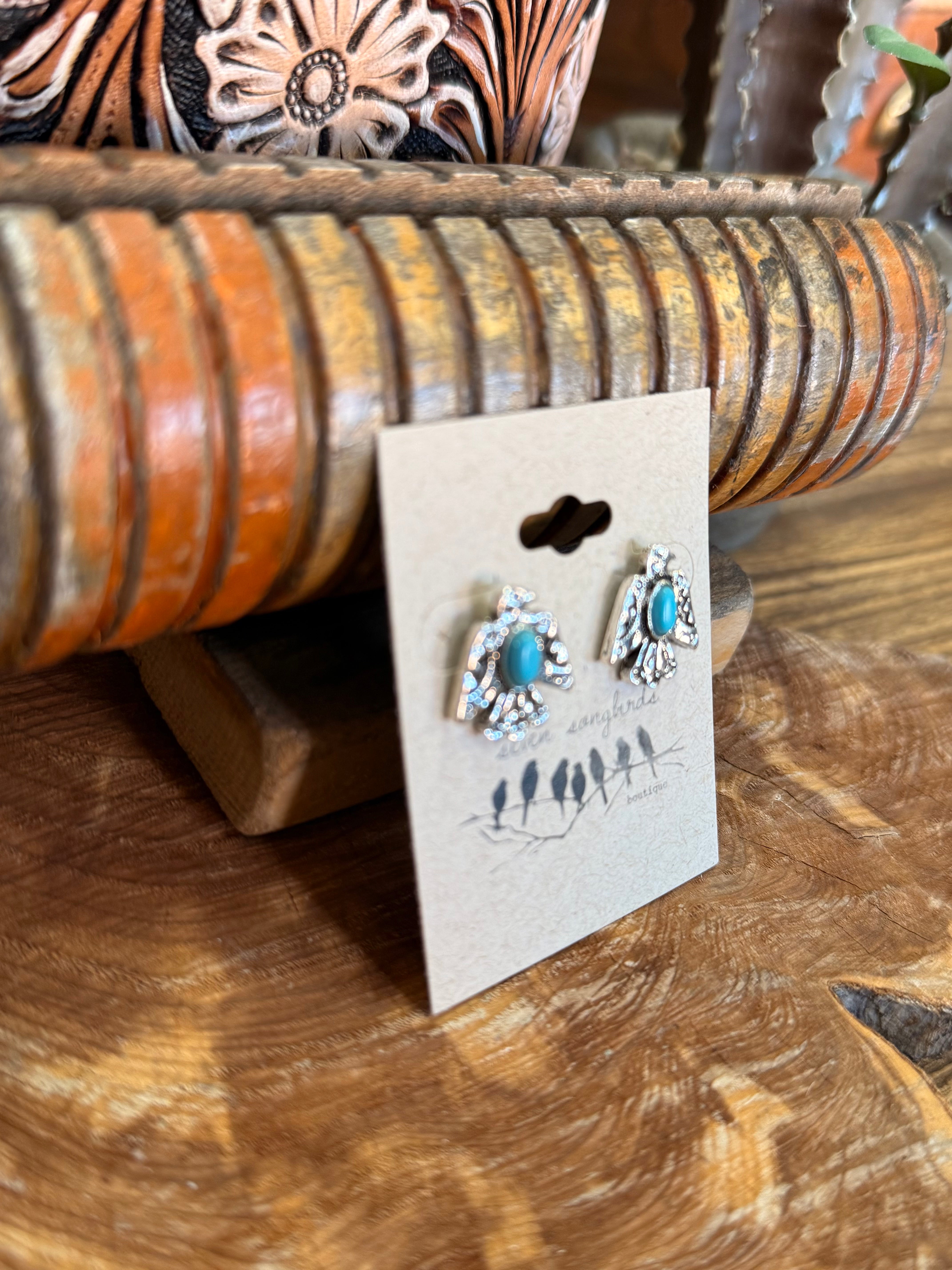 Silver & Turquoise Large Thunderbird Stud Earrings