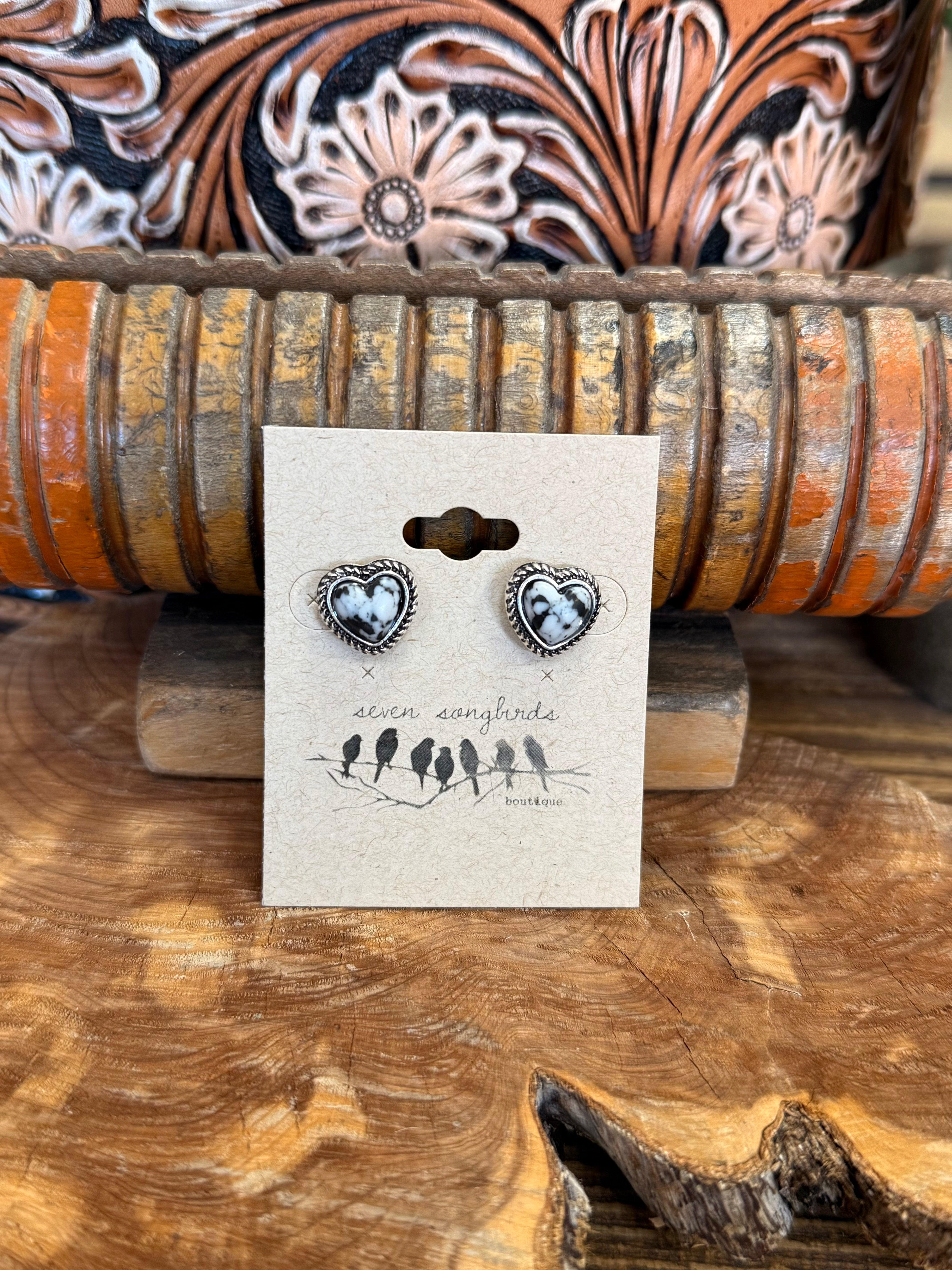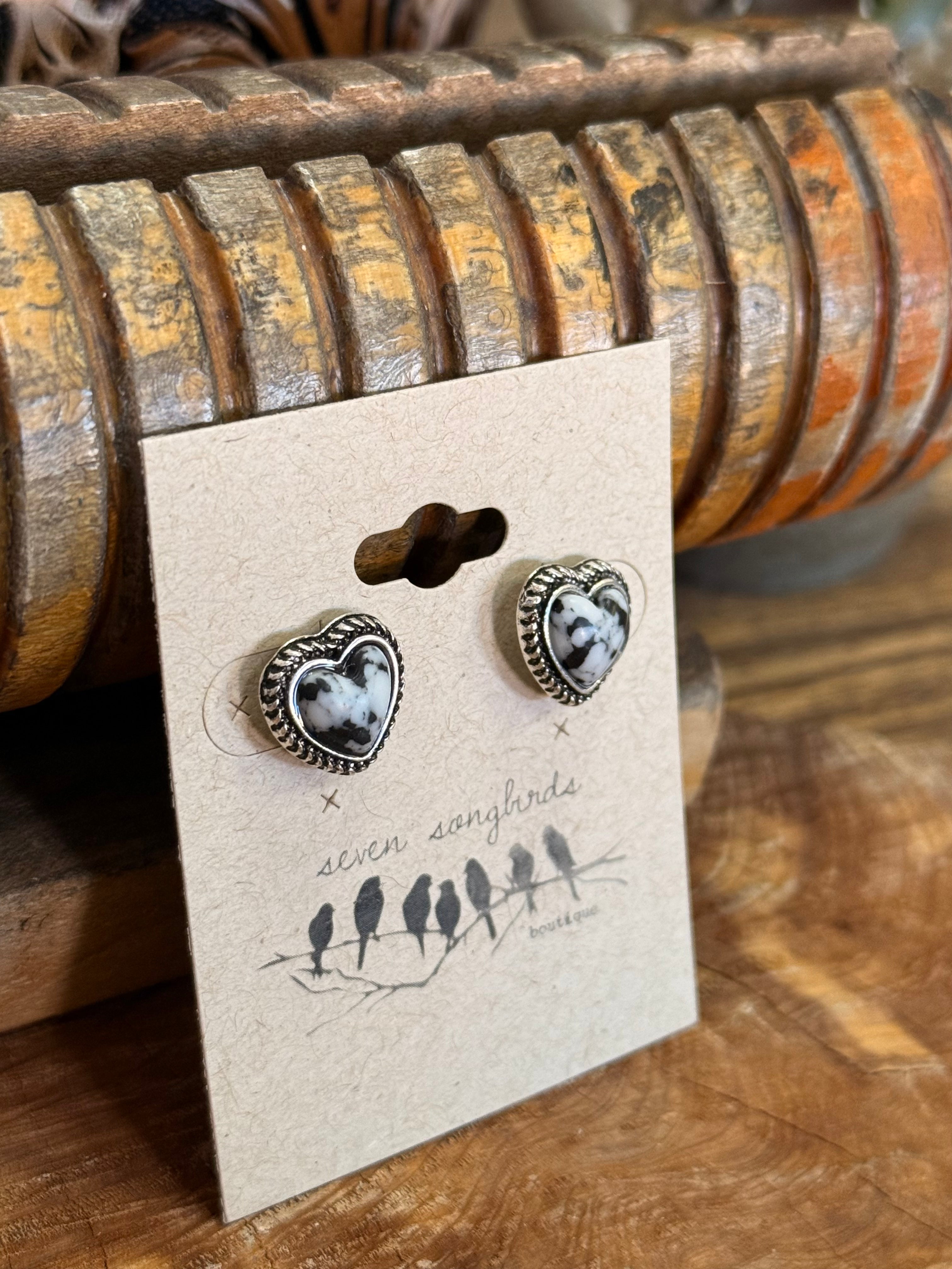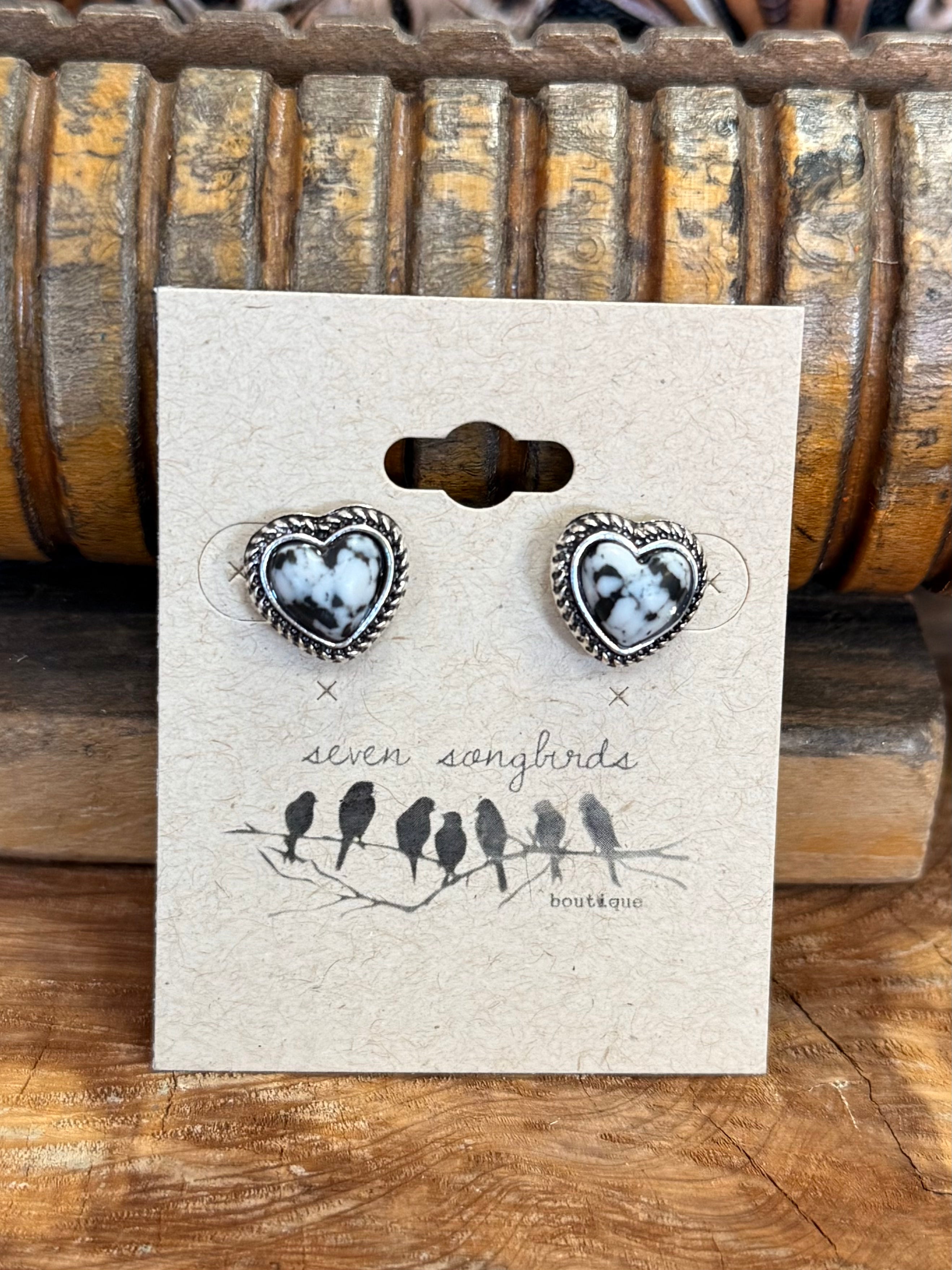 Black & White Heart Silver Earrings