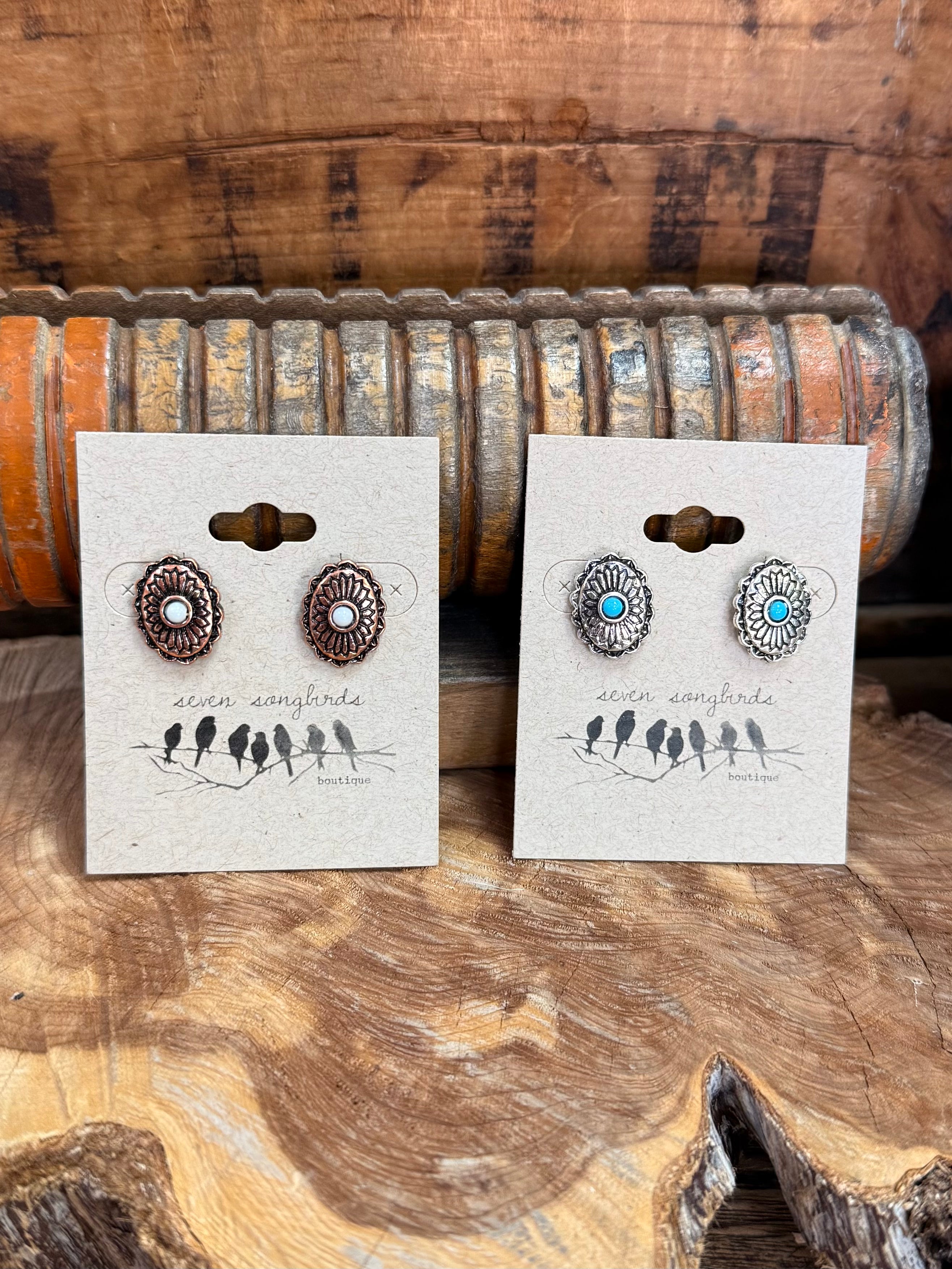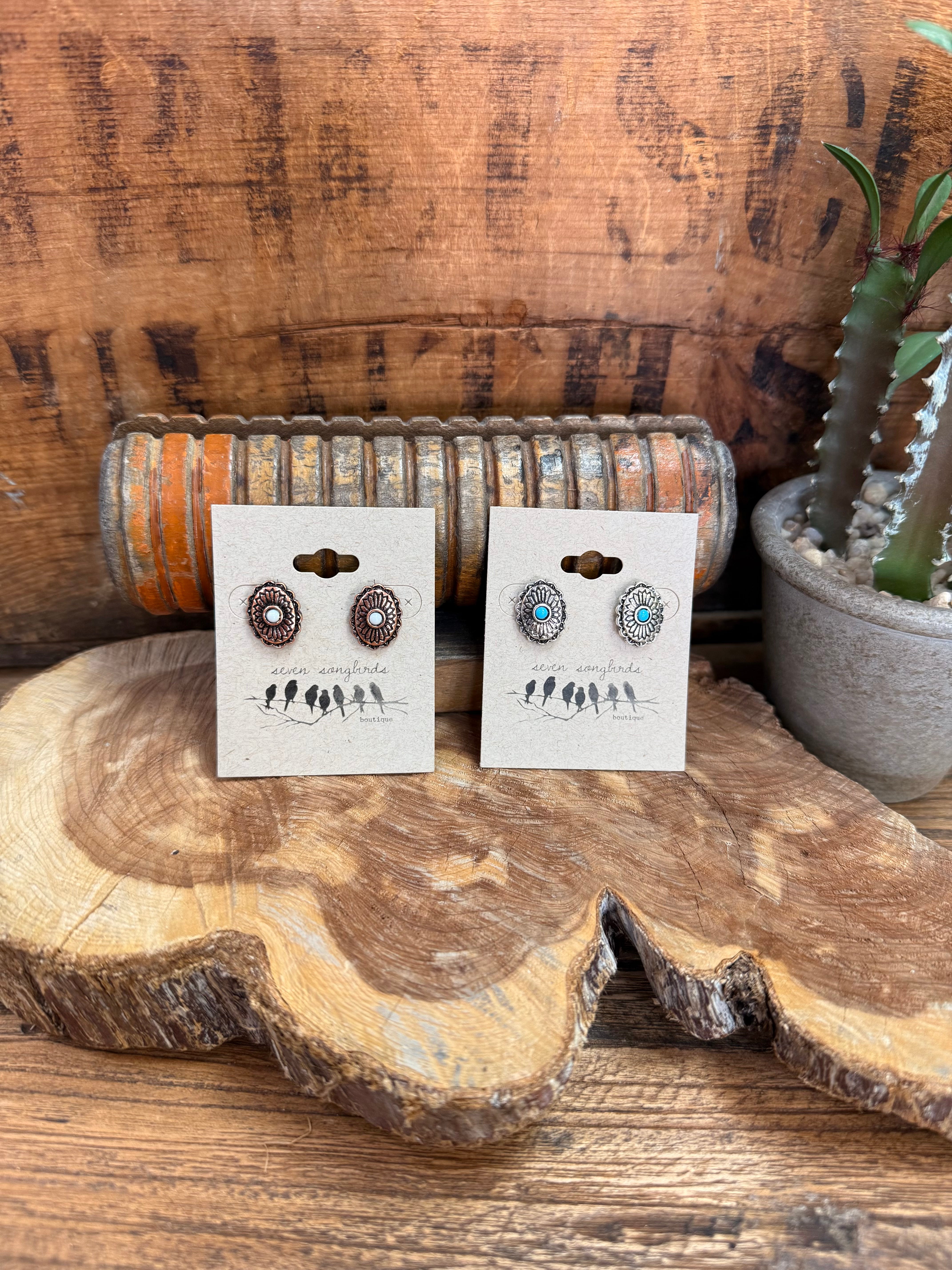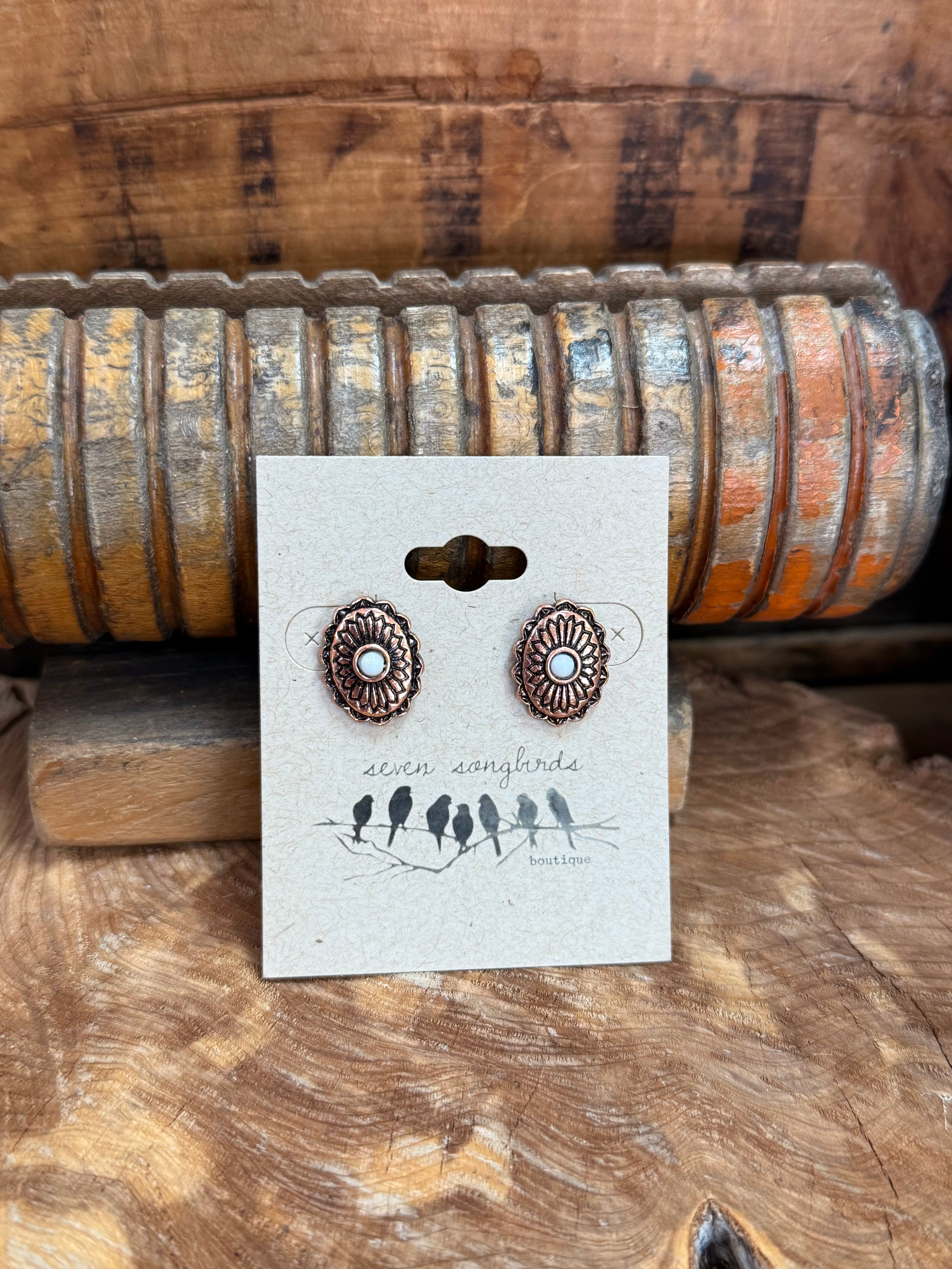 Concho Stud Earrings w/ Stone | Copper or Silver