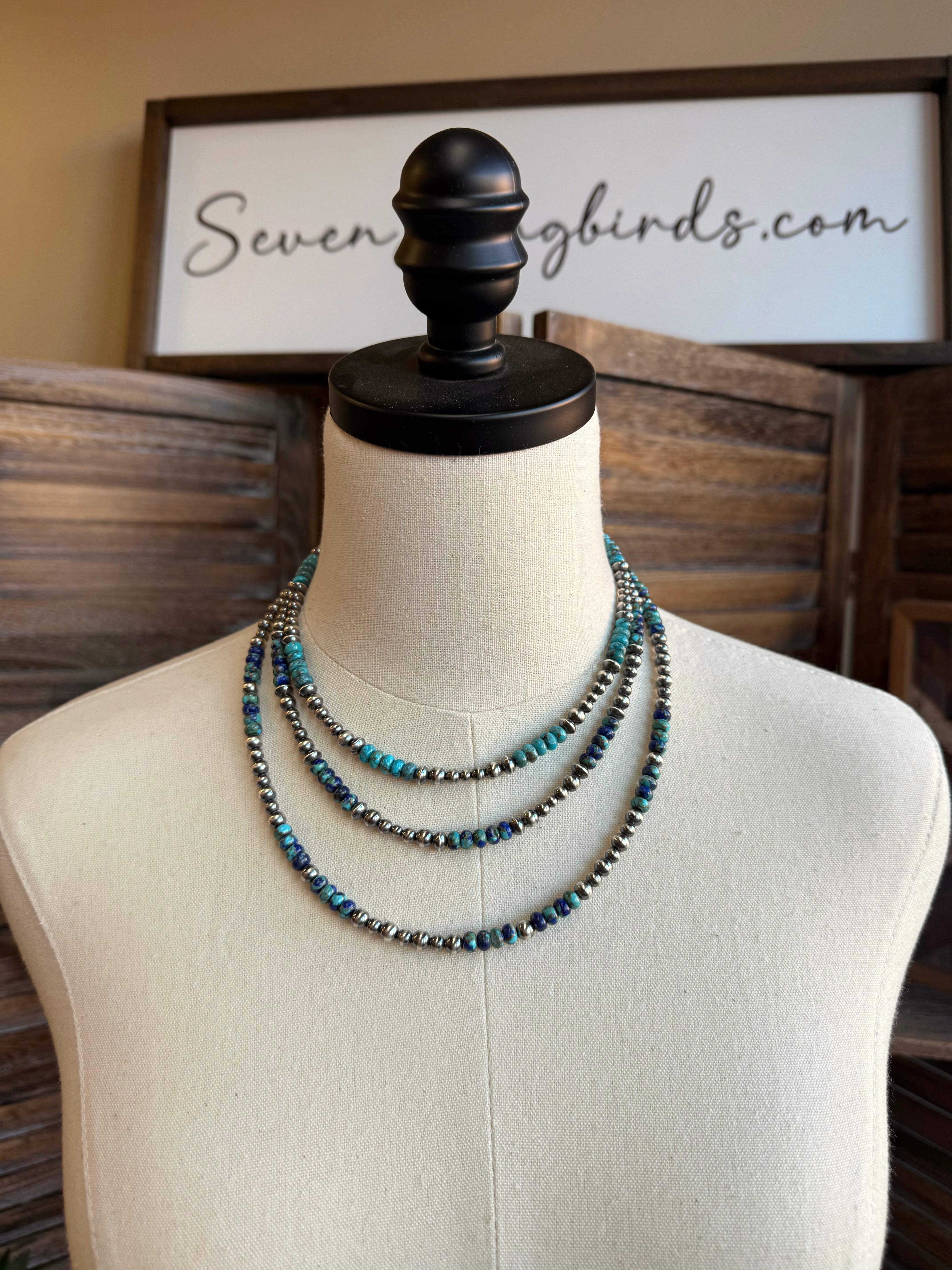 19" + 2" Extender Turquoise & Lapis Mix. 3-6mm Beads