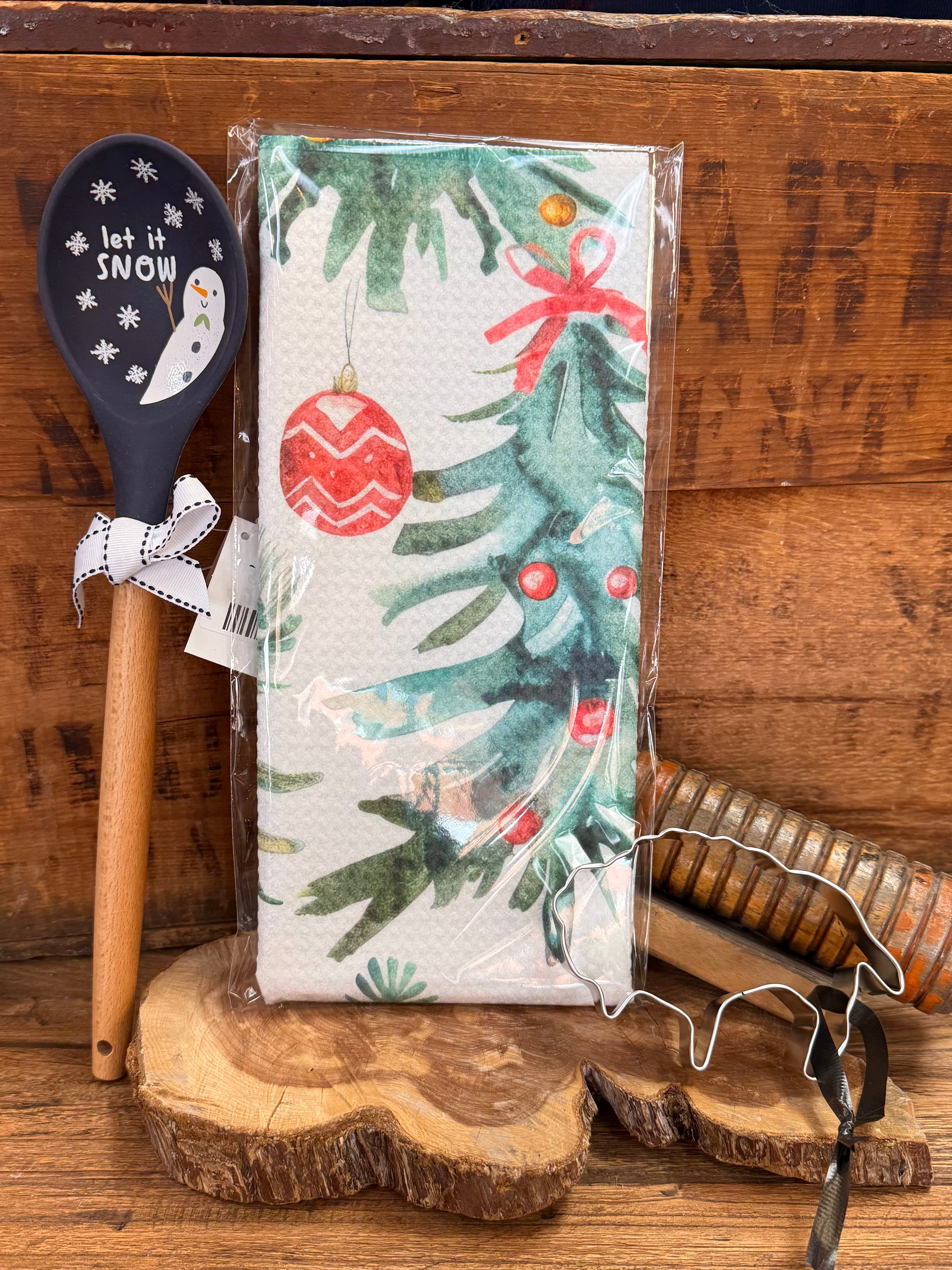 Super cute Christmas tree towel with a spoon, and your choice of cookie cutter!