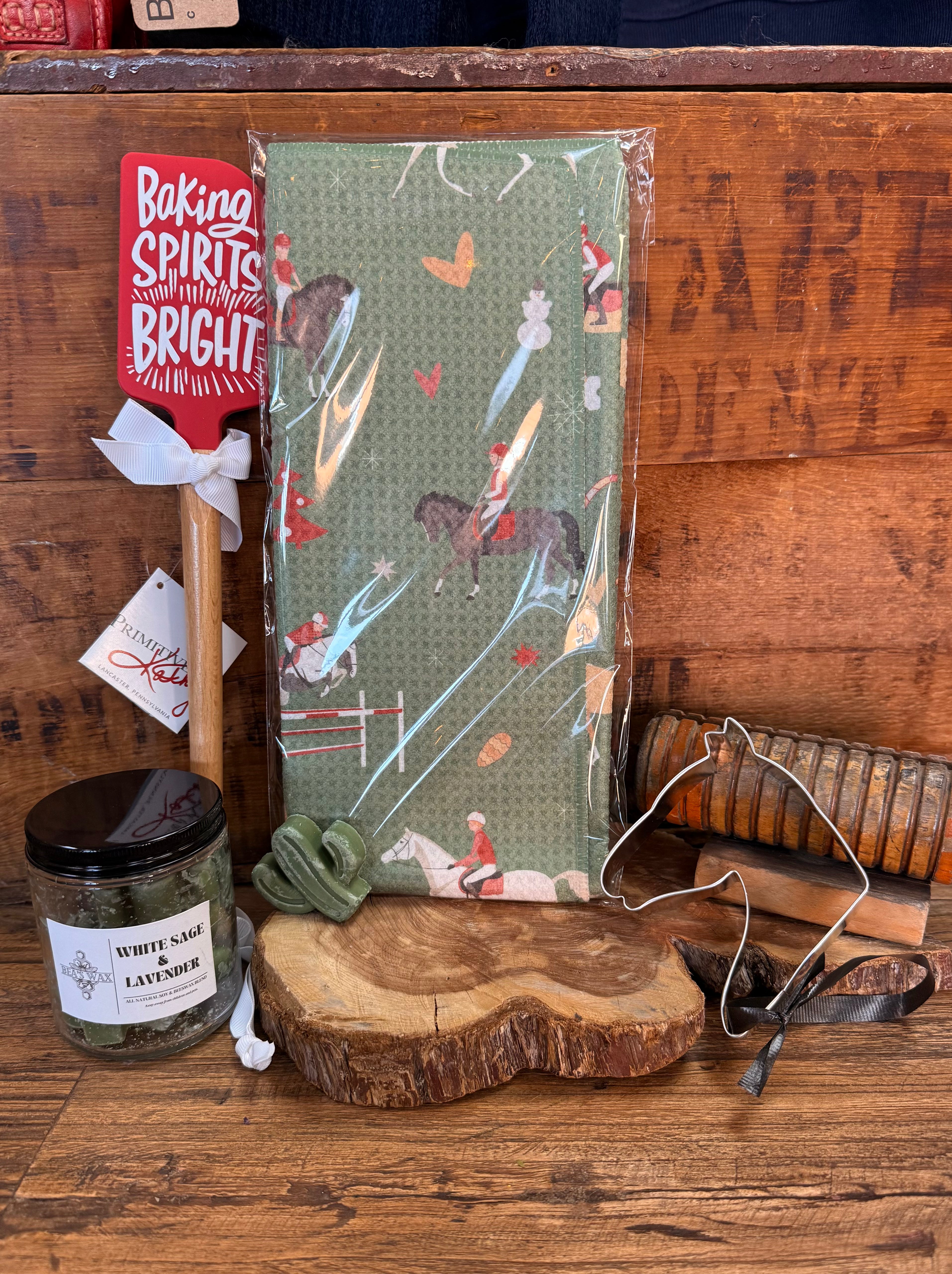 Super cute horse tea towel with a spatula, wax melts, and your choice of a cookie cutter!