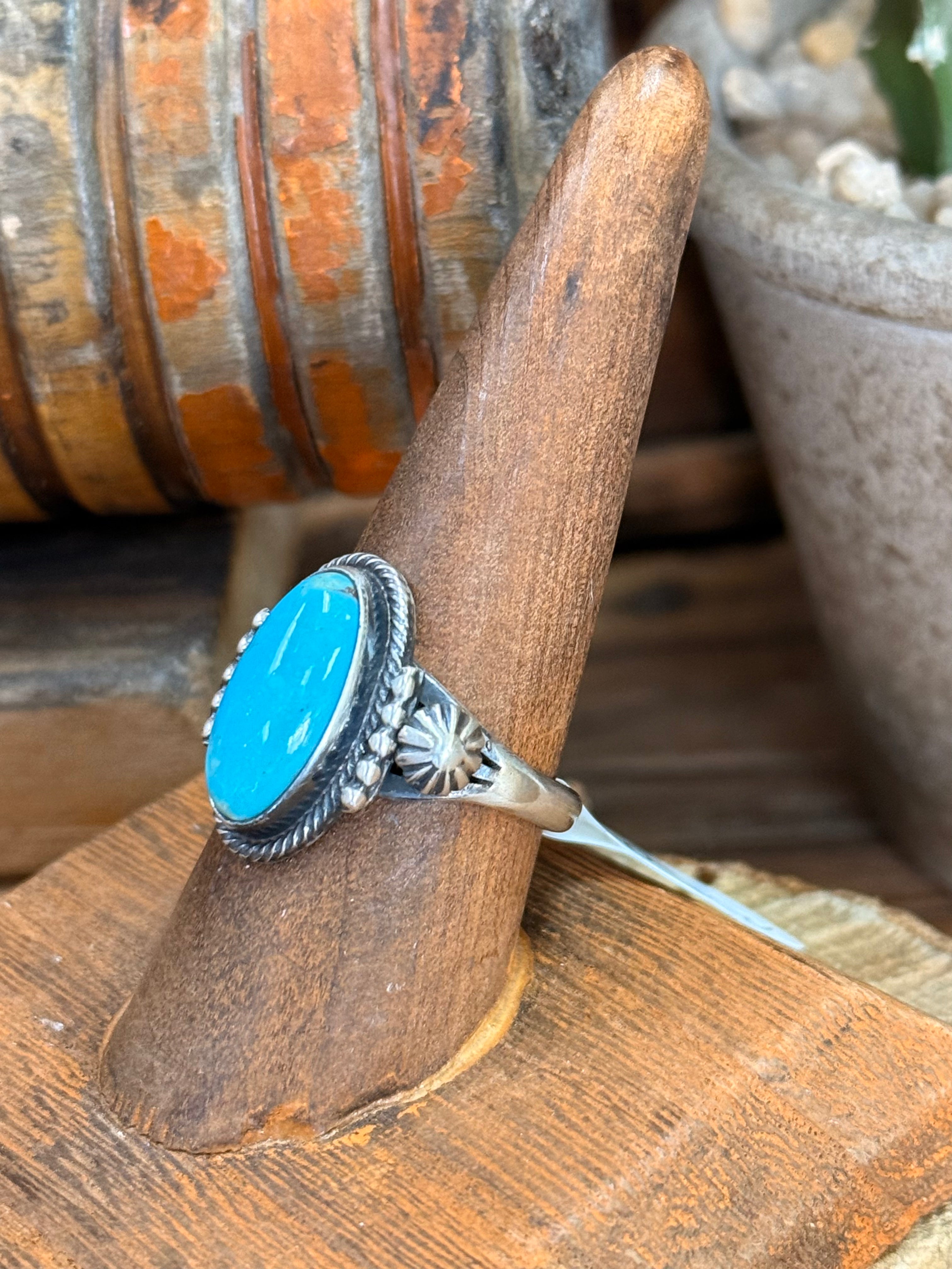 Native Made Kingman Turquoise Sterling Silver Ring - 8.5