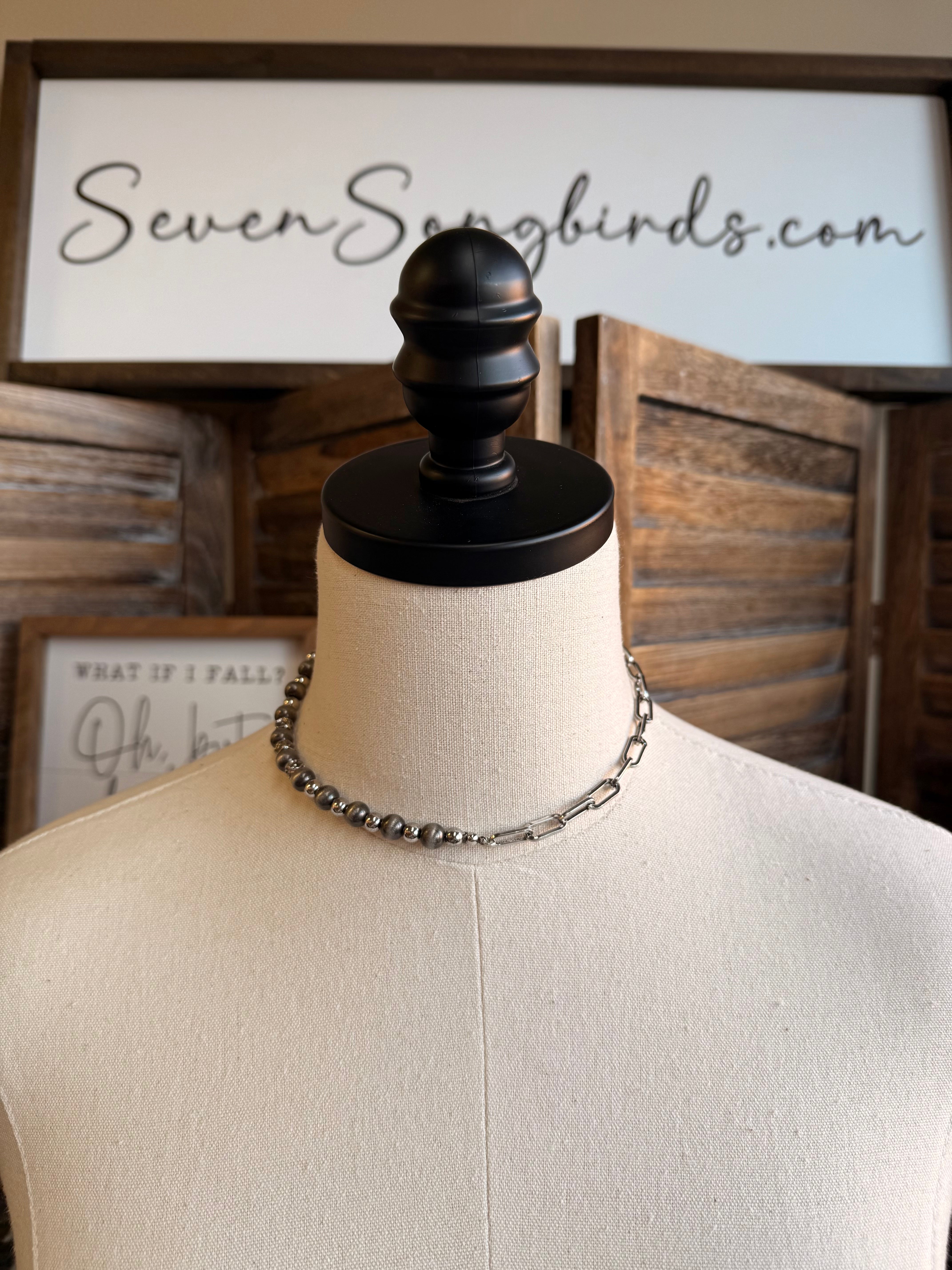 13" Silver Chain & Pearl Necklace