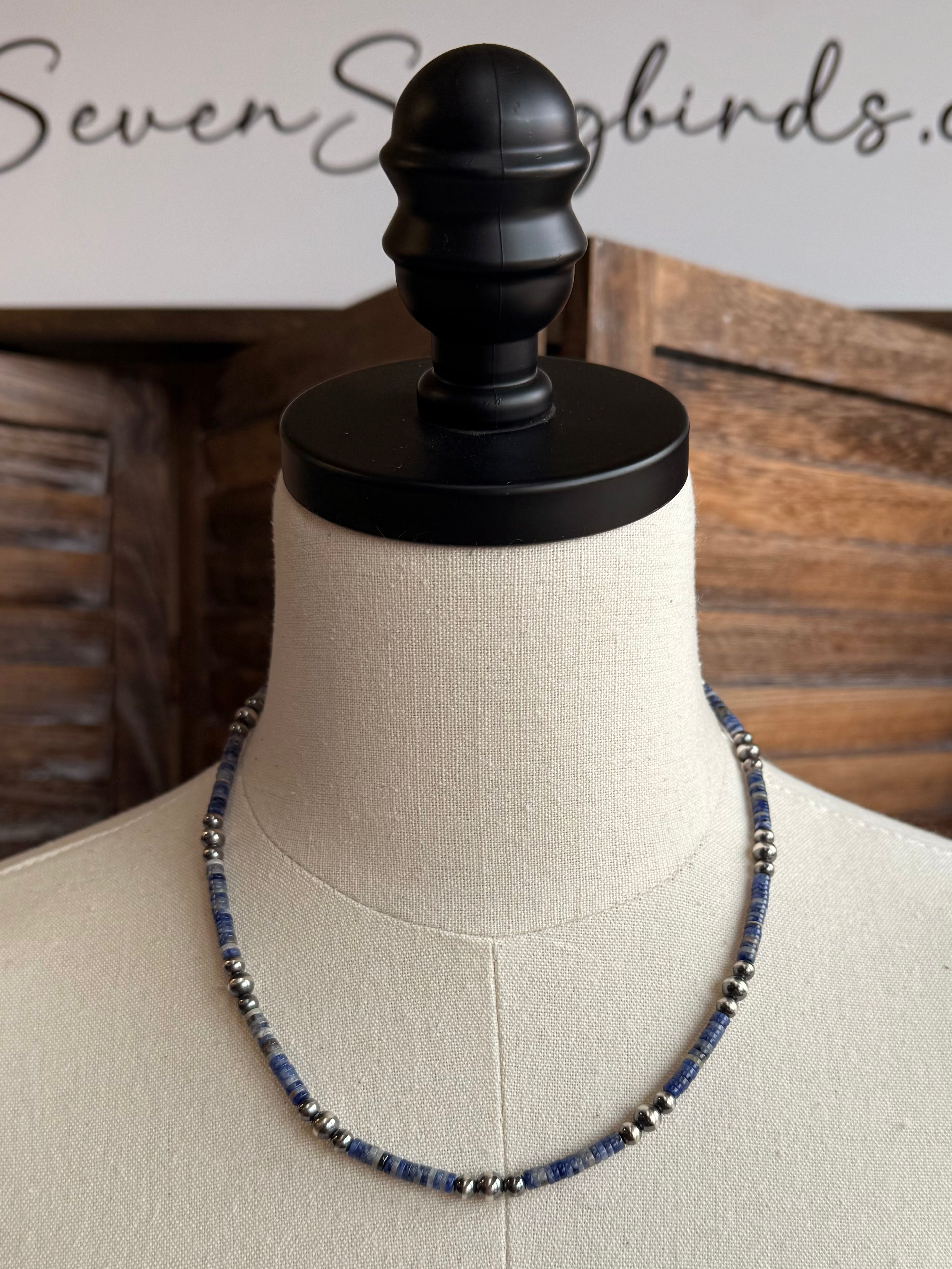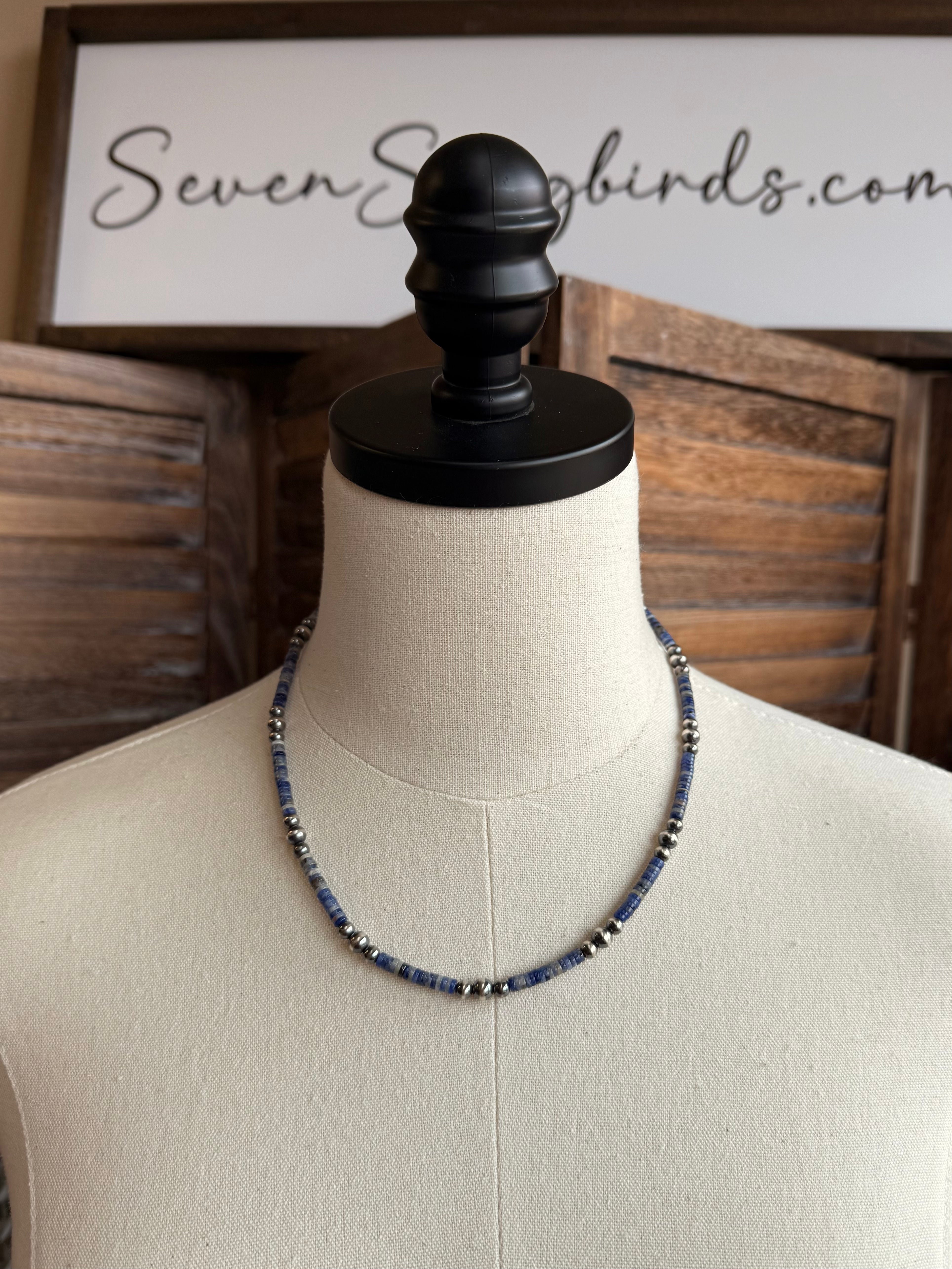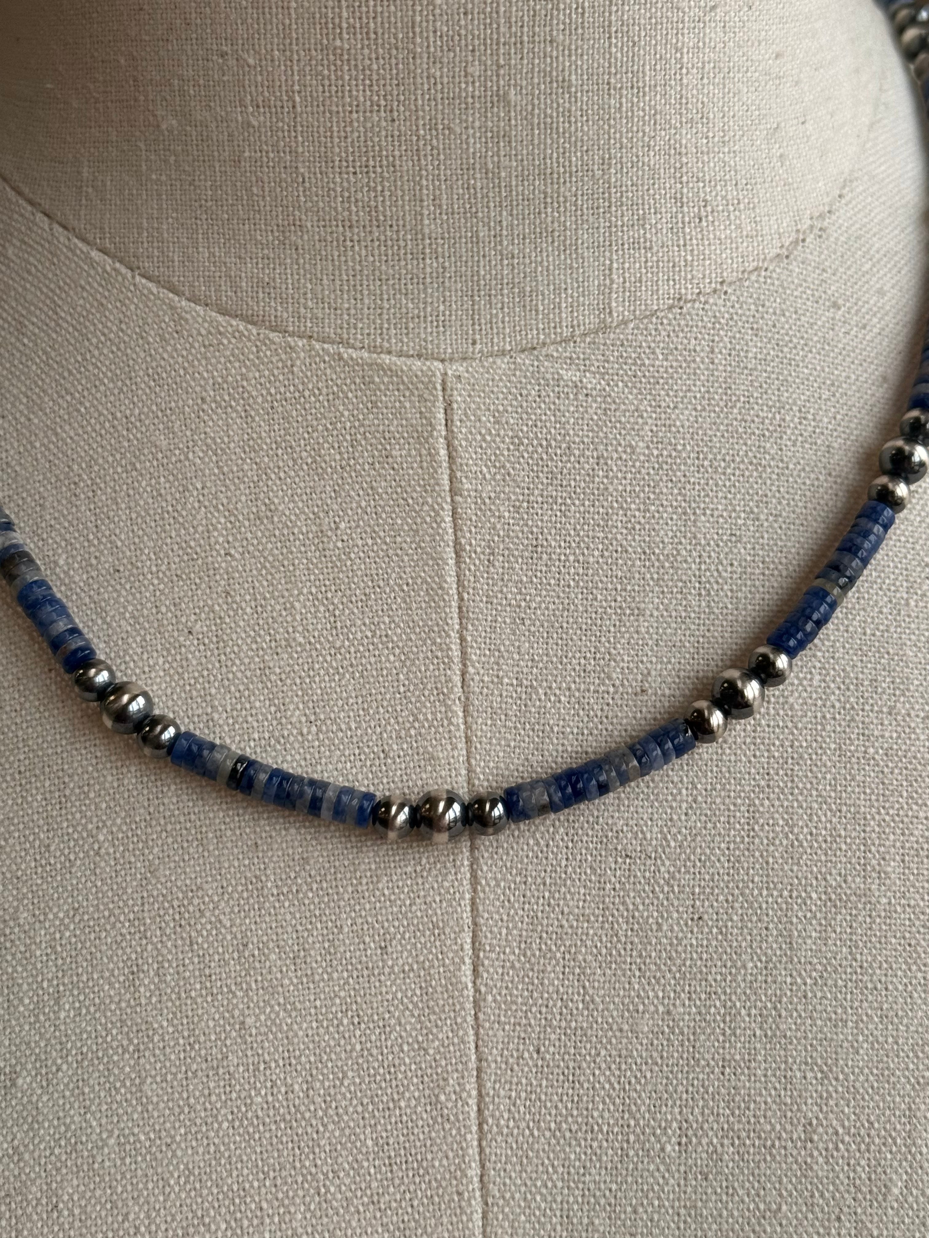 18" Blue Sodalite Heishi and Sterling Pearl Necklaces