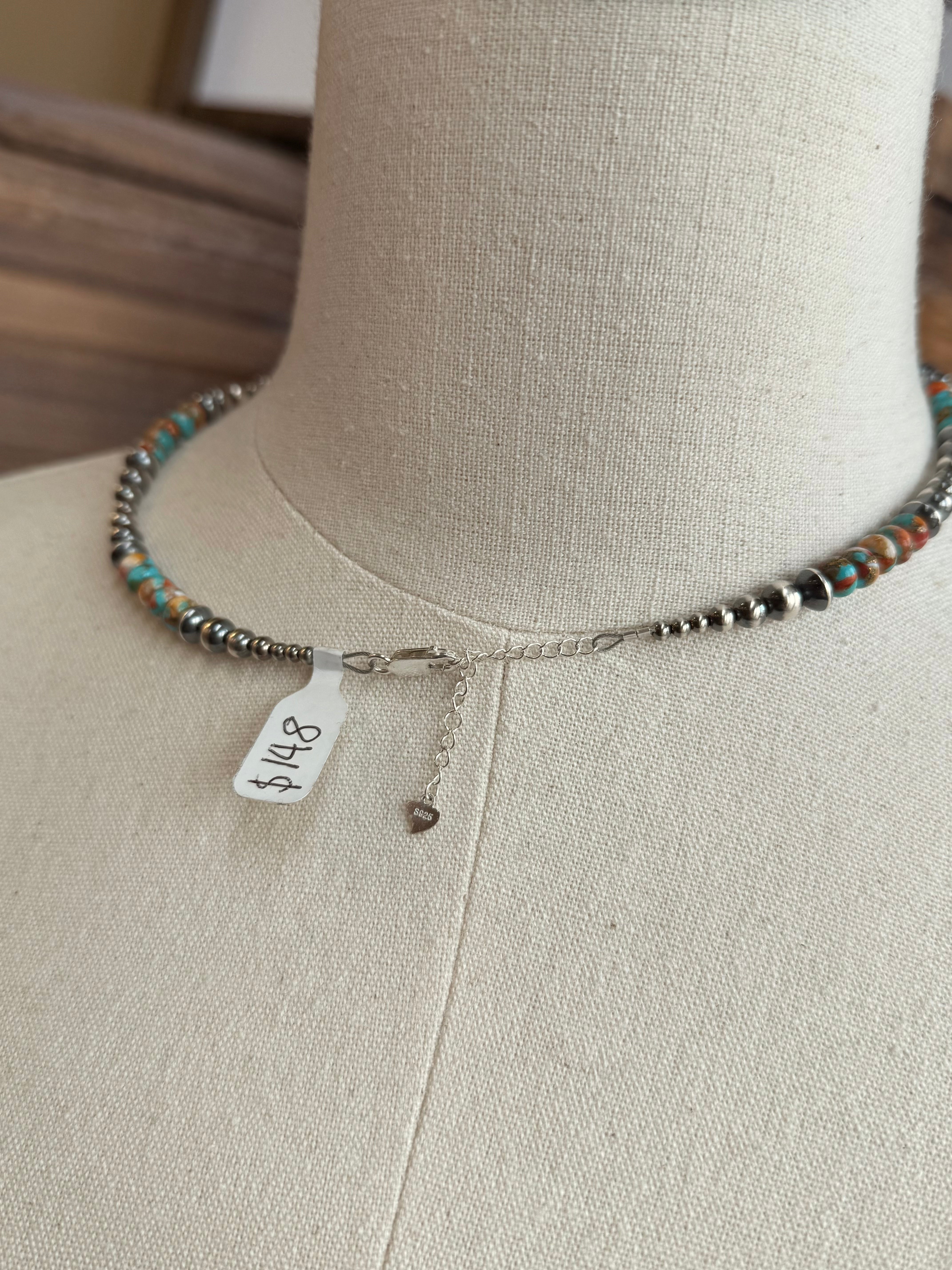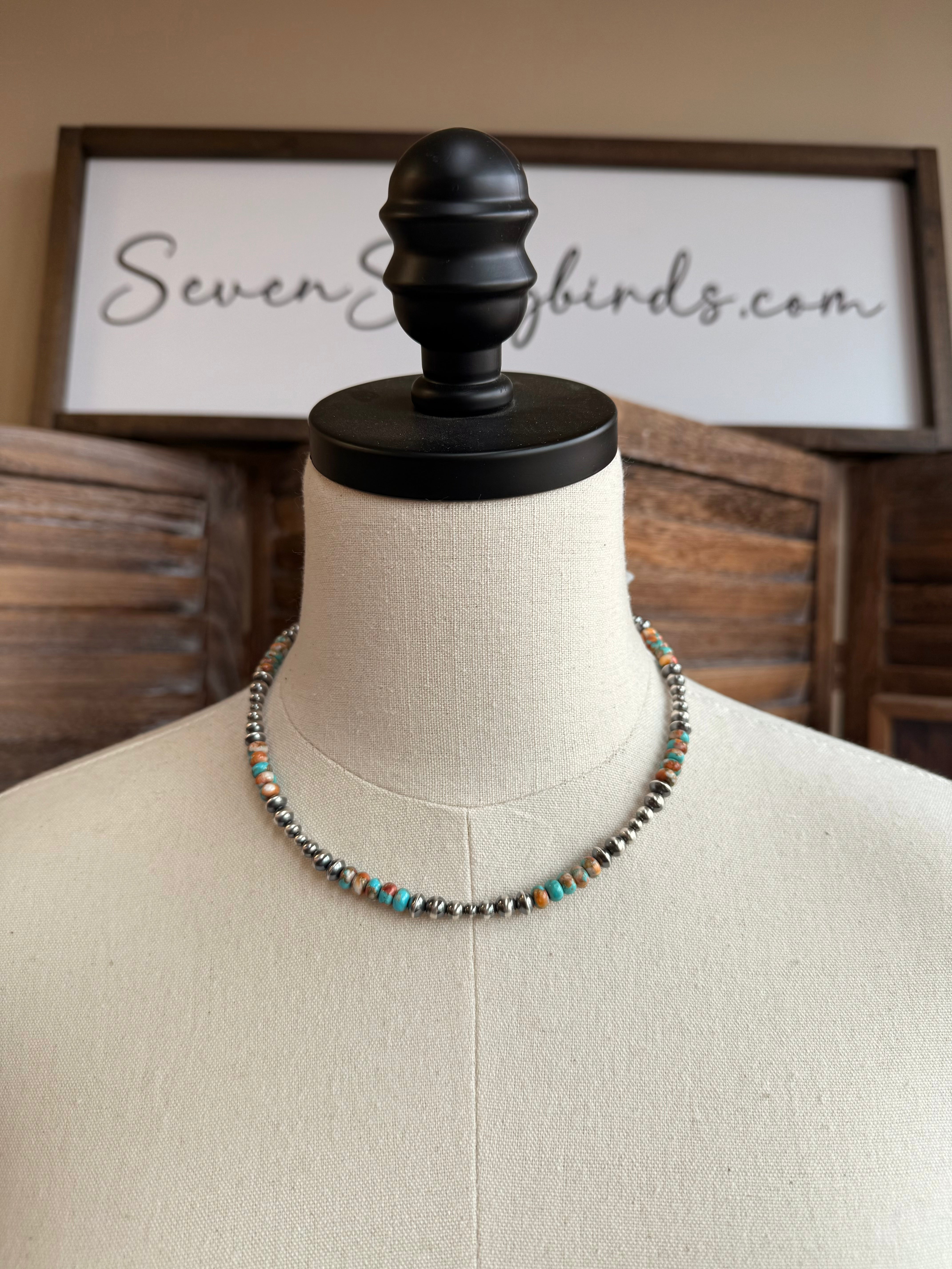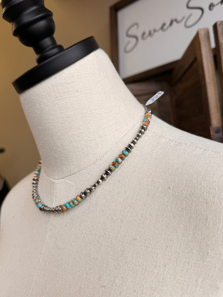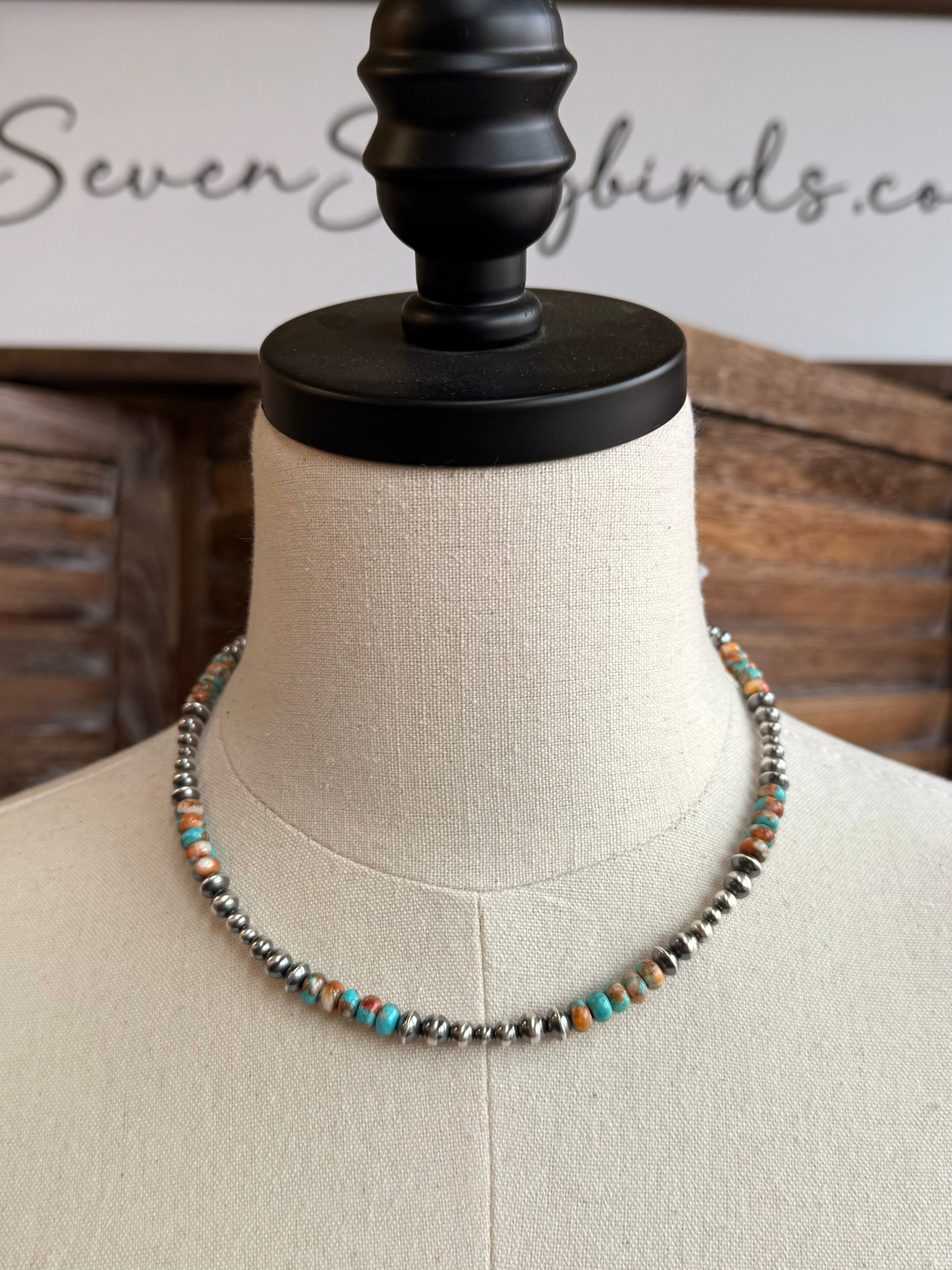 16" Sterling Graduated Turquoise and Spiny Necklace