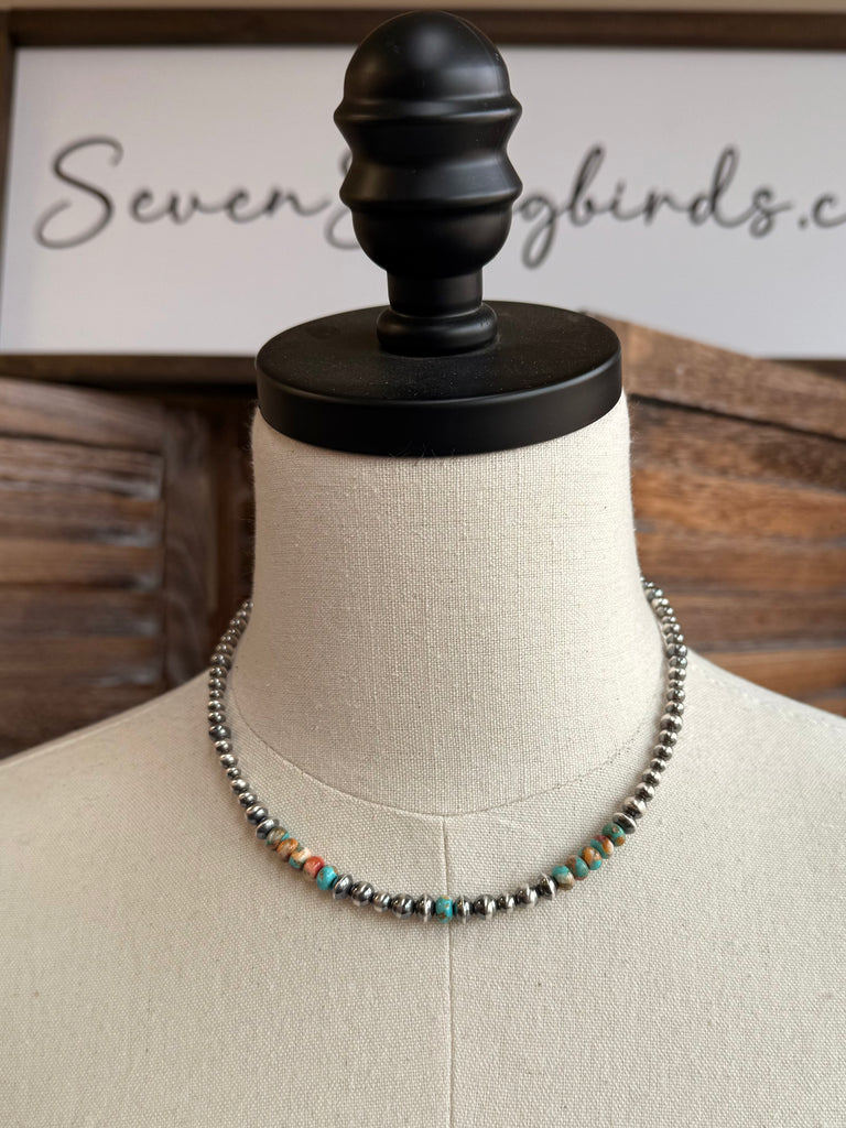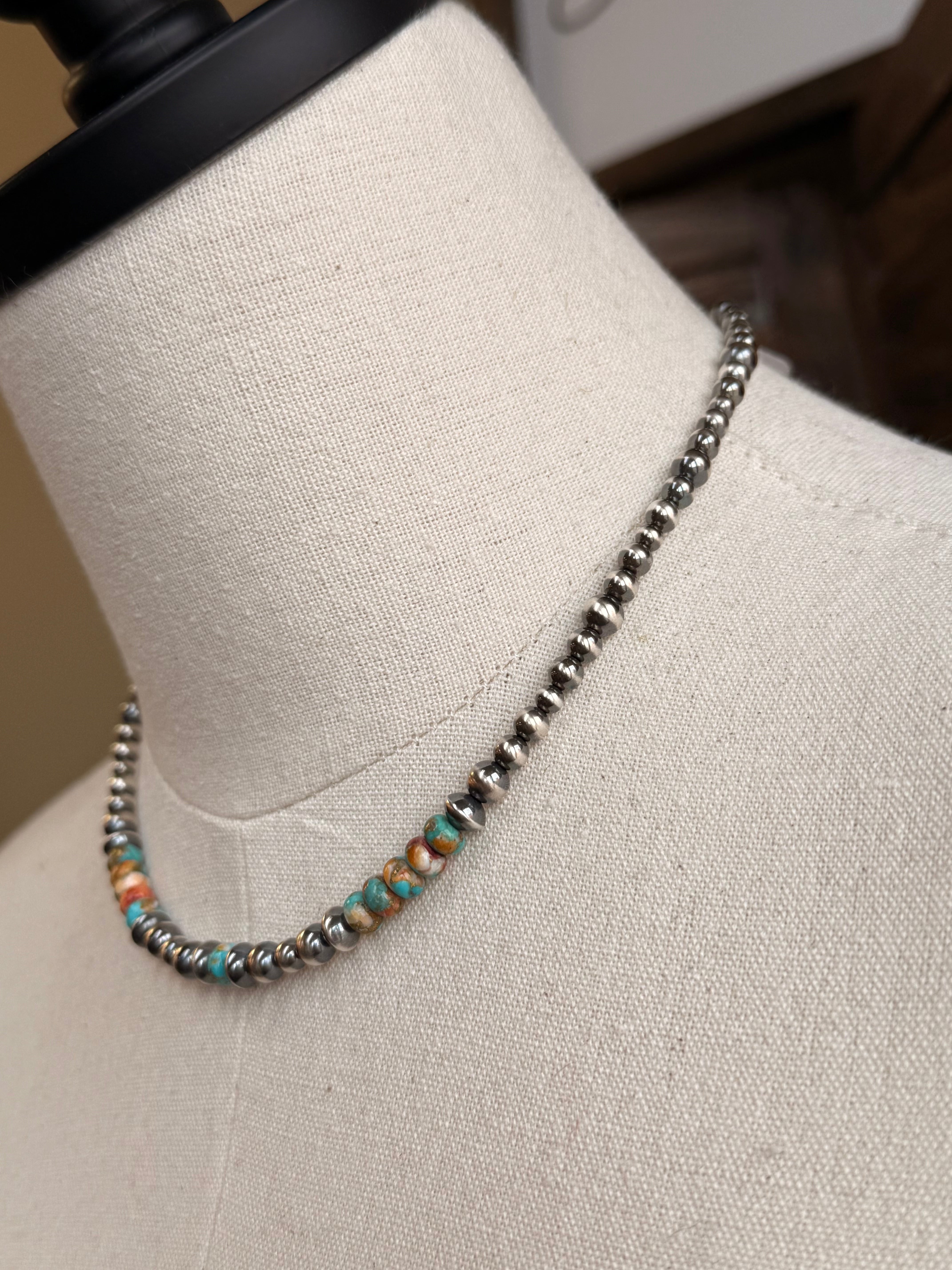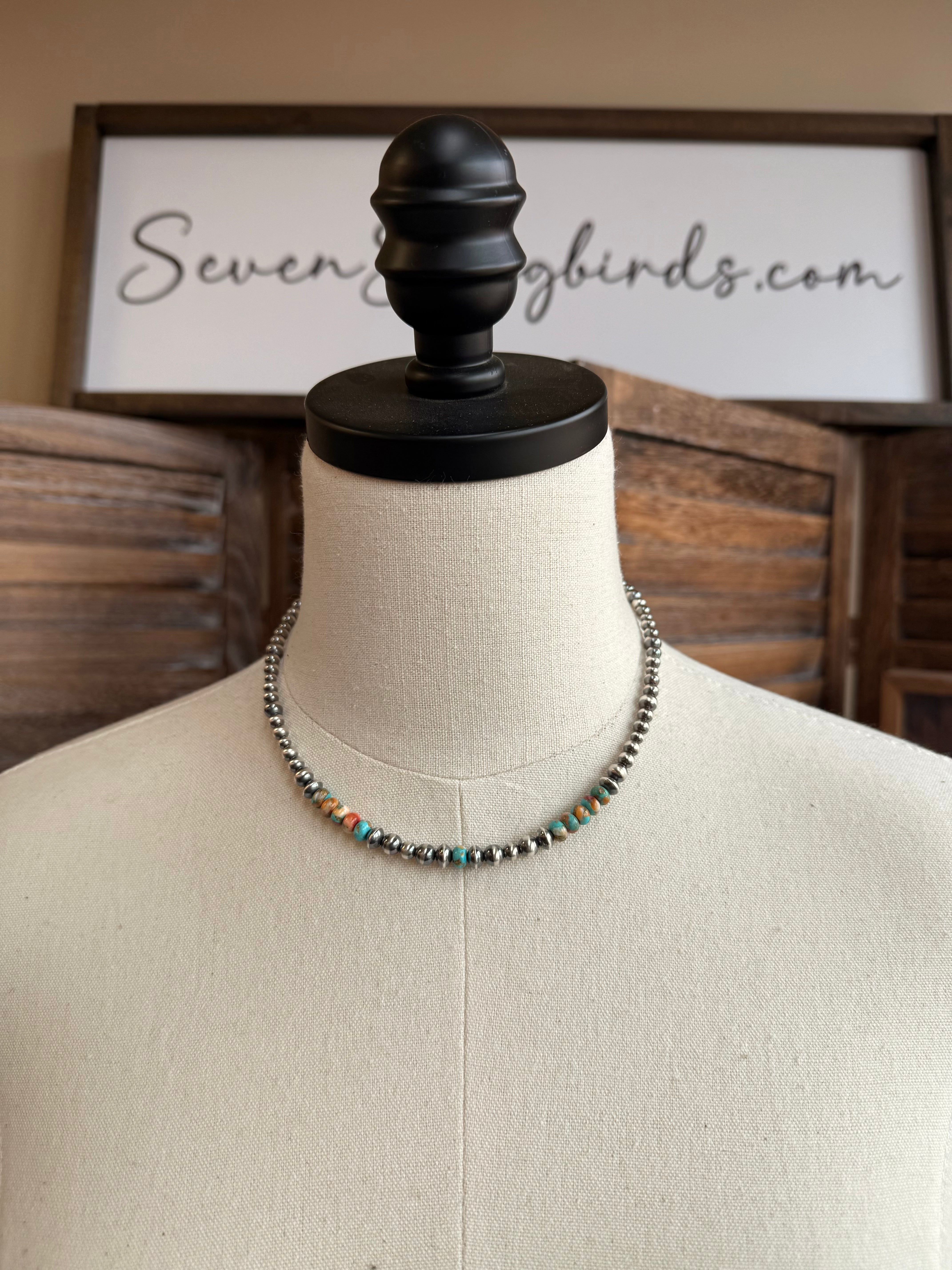 15" Sterling Graduated Turquoise and Spiny Necklace