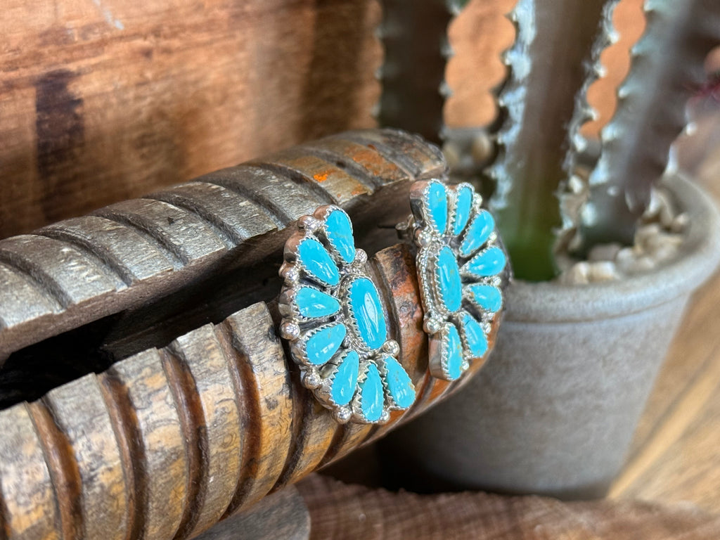 Navajo Handmade Half Cluster Kingman Turquoise Earrings