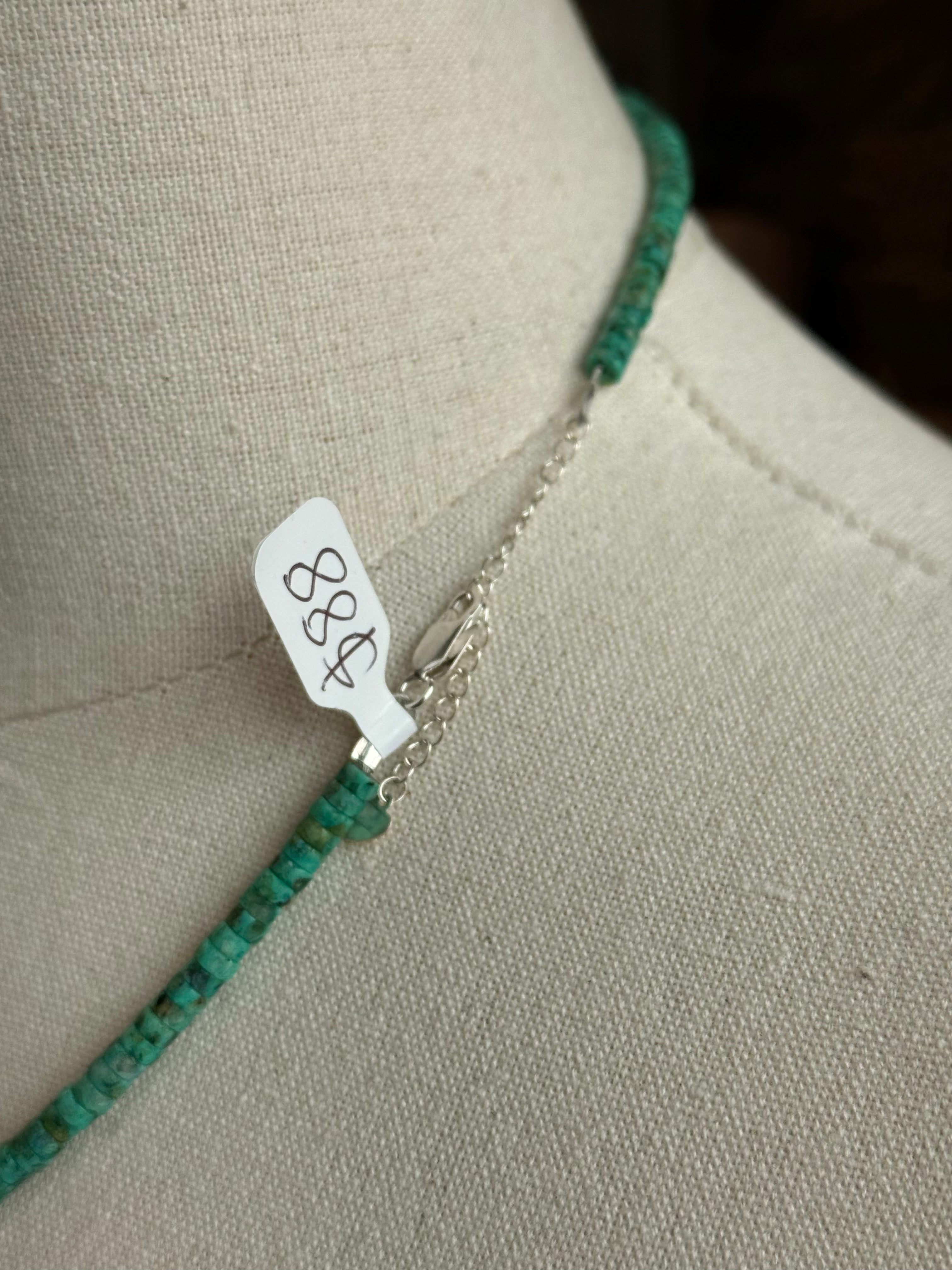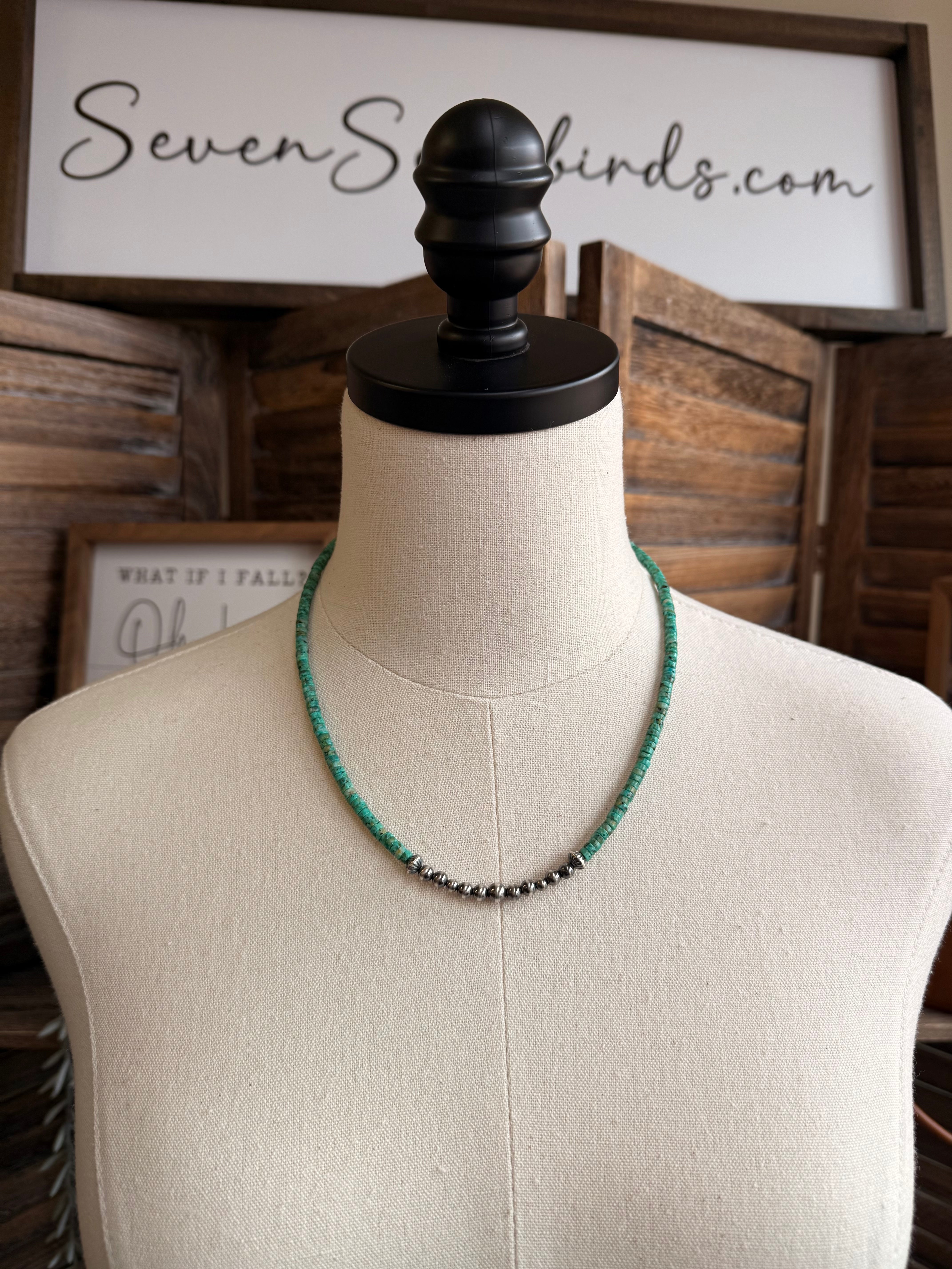 18" Green Turquoise Heishi w/ Sterling Pearls Necklace