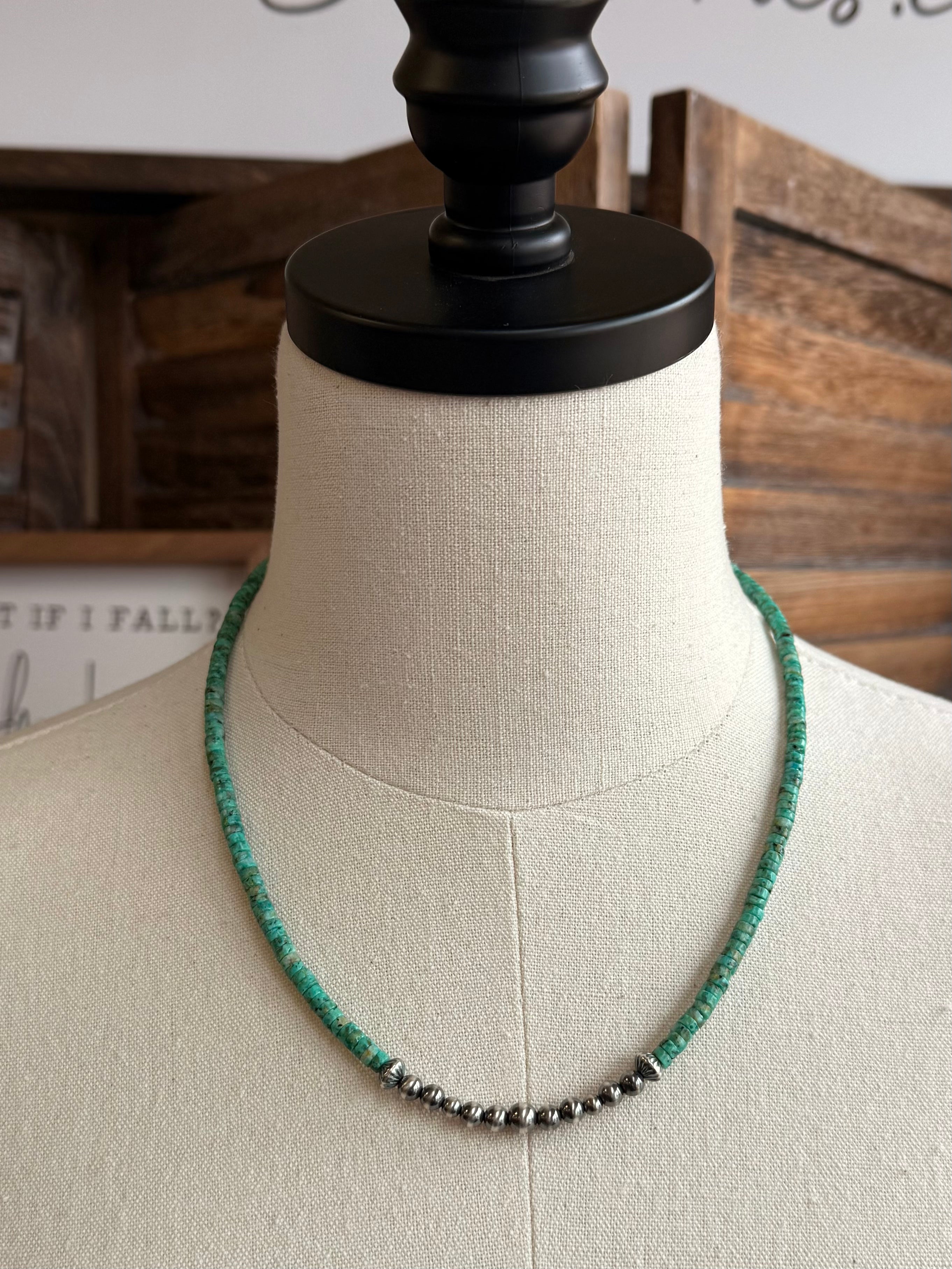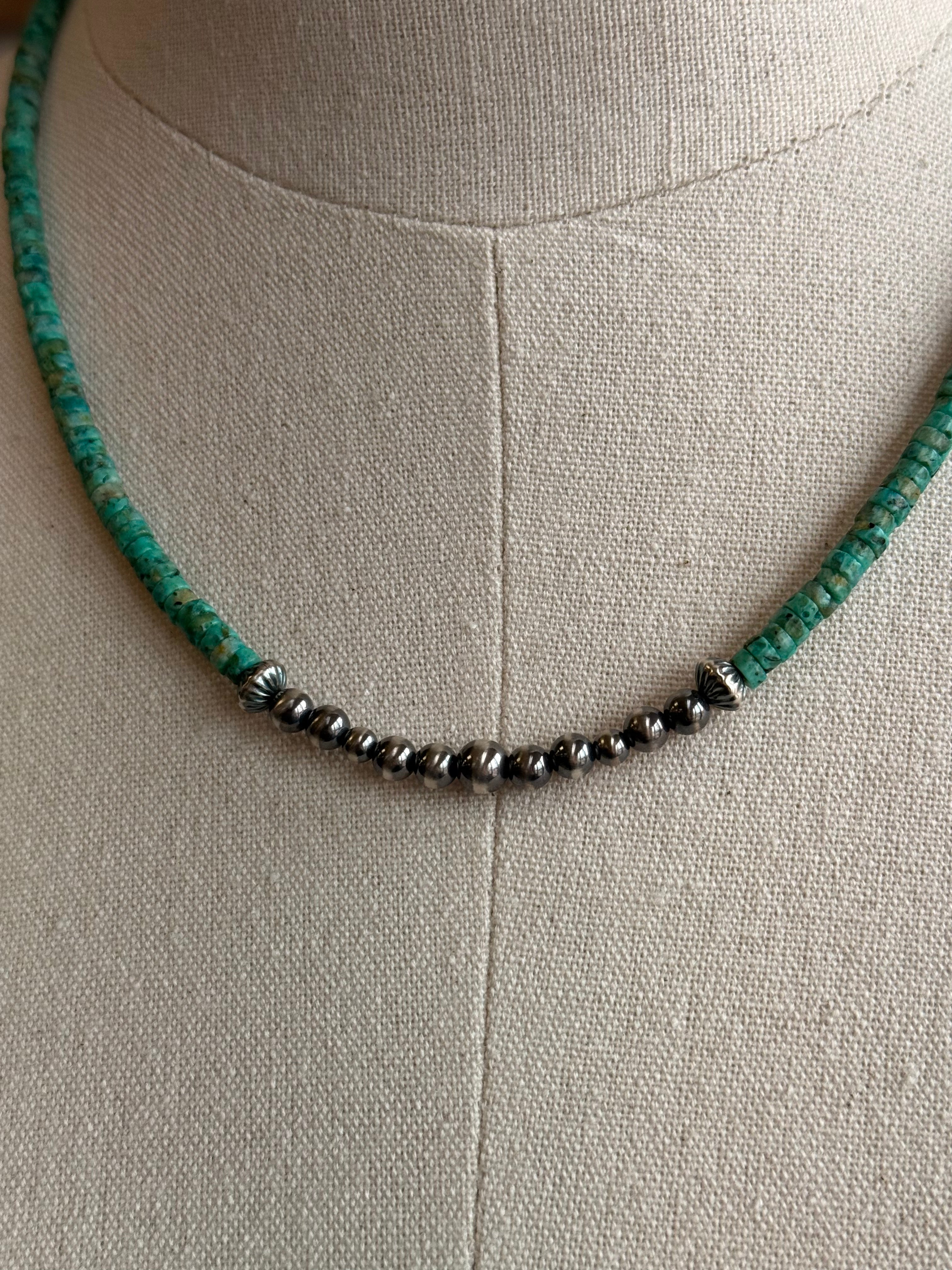 Genuine Turquoise Heishi w/ 4,5, & 6mm Sterling Silver Beads