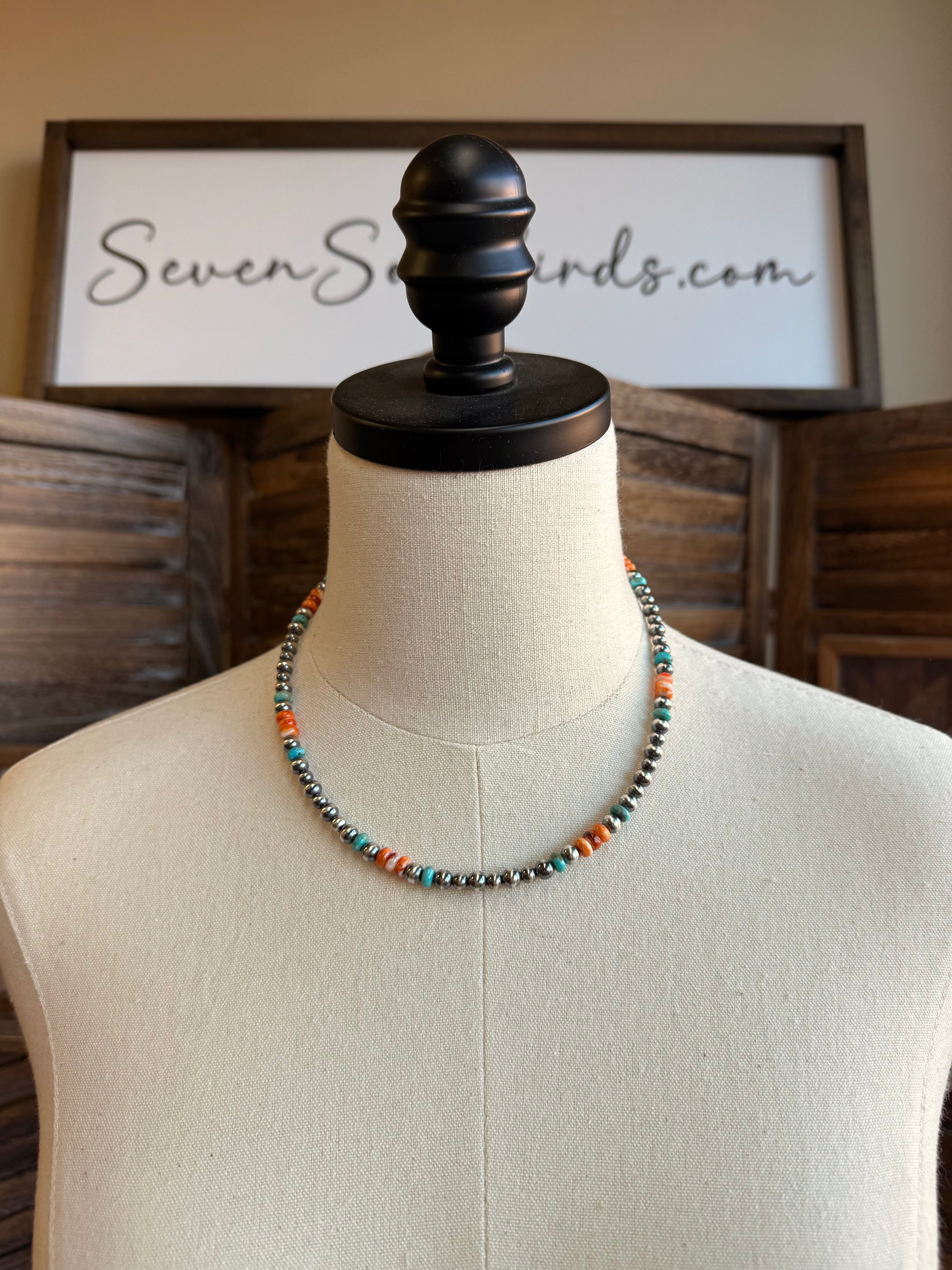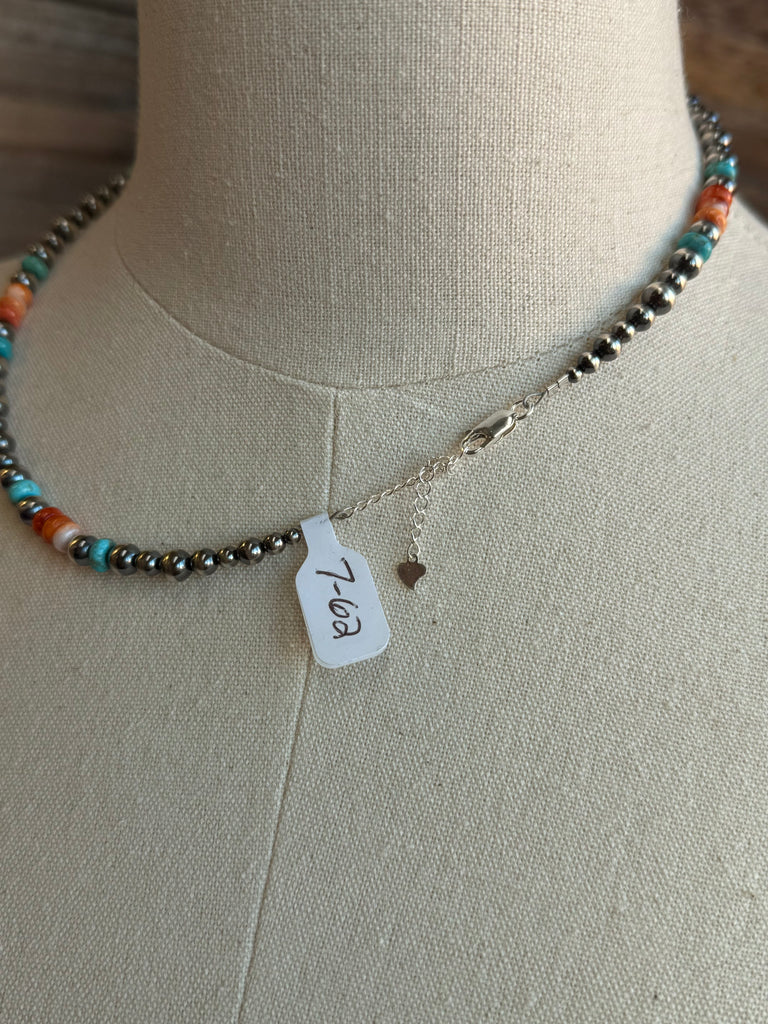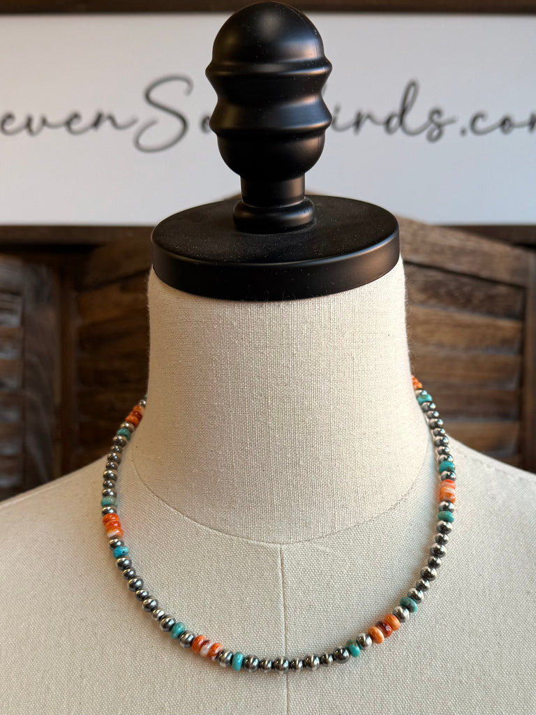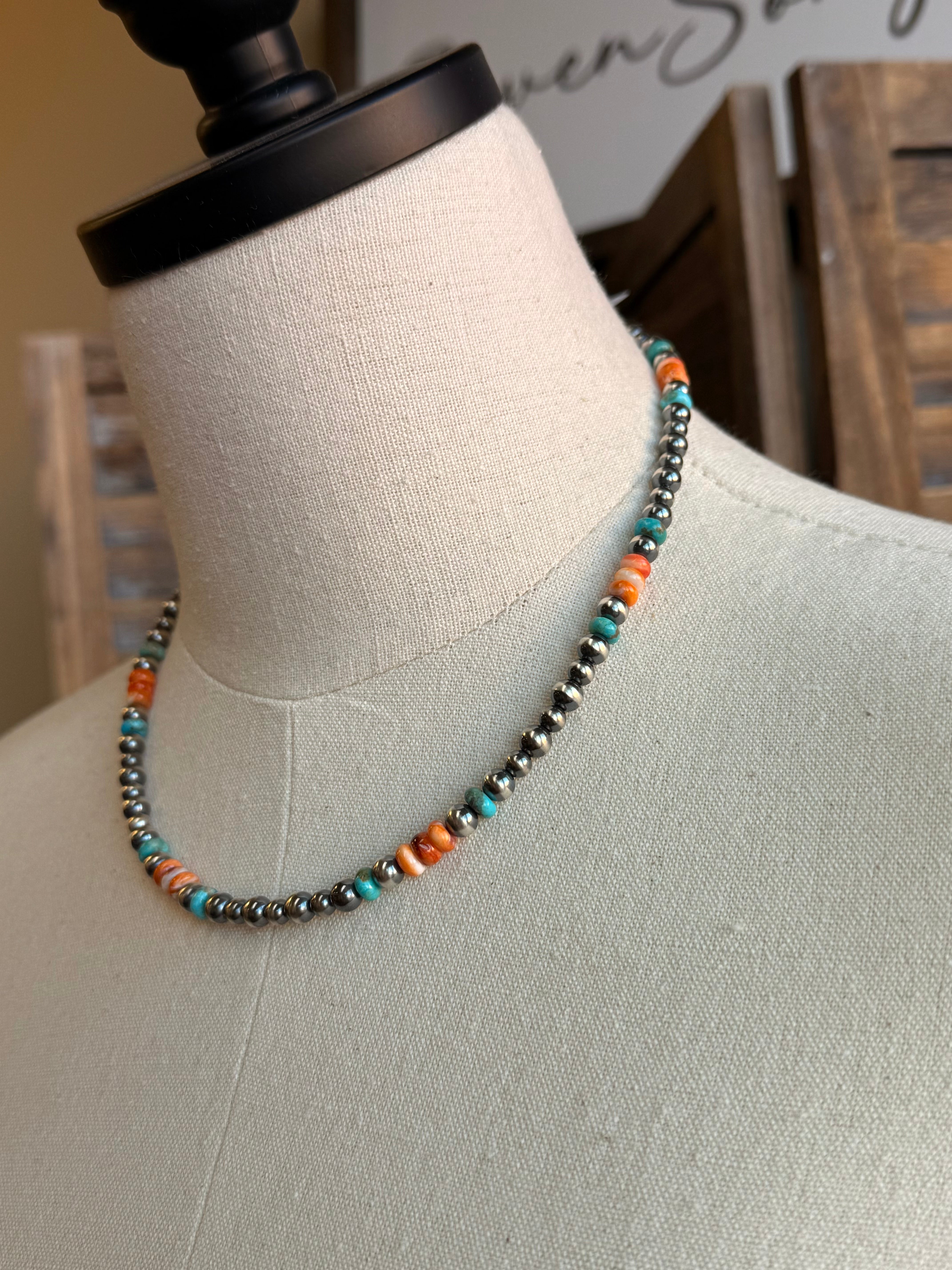 17" Spiny Oyster and Kingman Turquoise Sterling Necklace