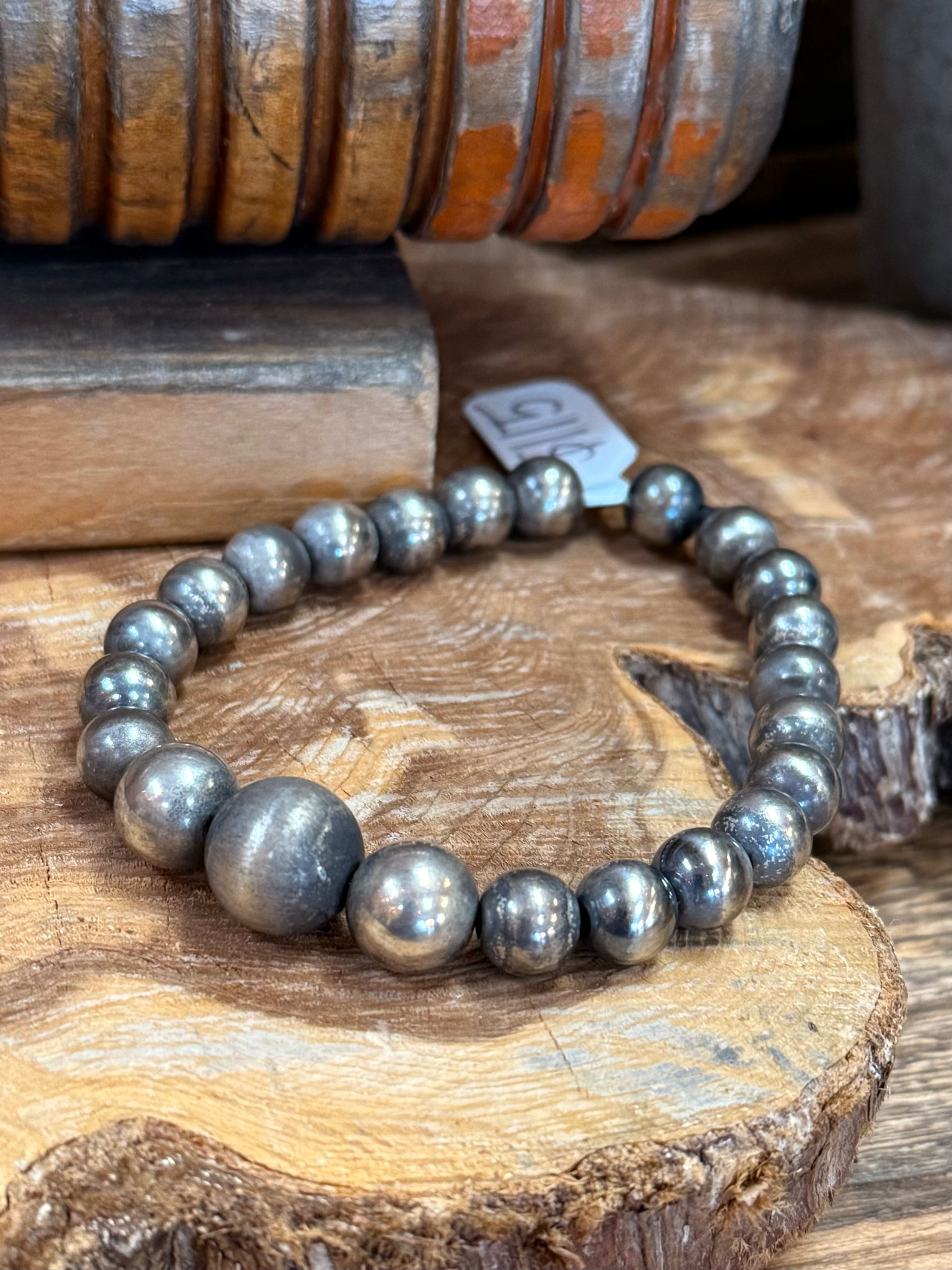 This bracelet was made of beads that were inside of our building during a fire on 12/30/24. They have been cleaned and strung on new wire. They may have some discoloration but should shine up! Every order will come with a polishing cloth.
