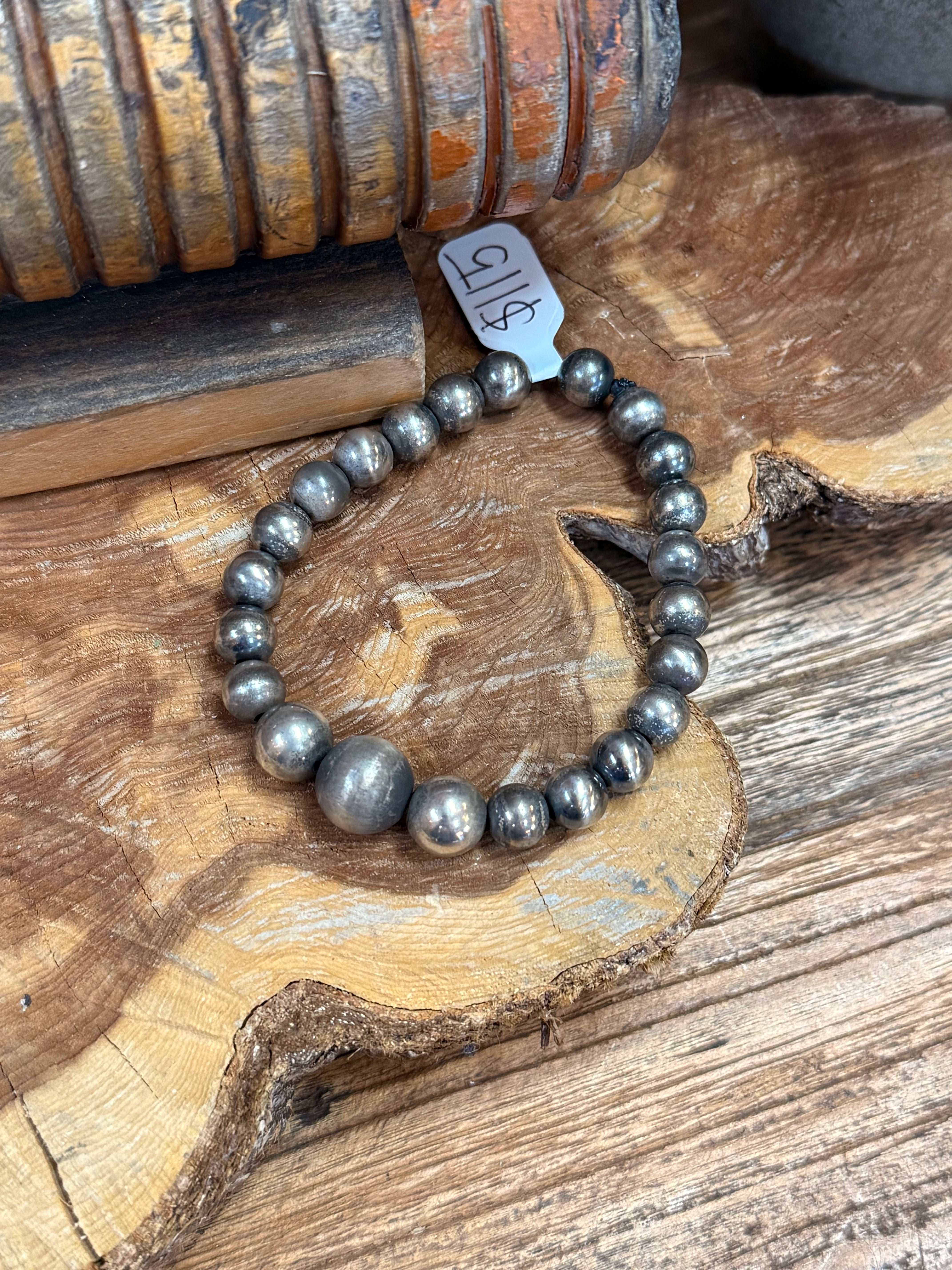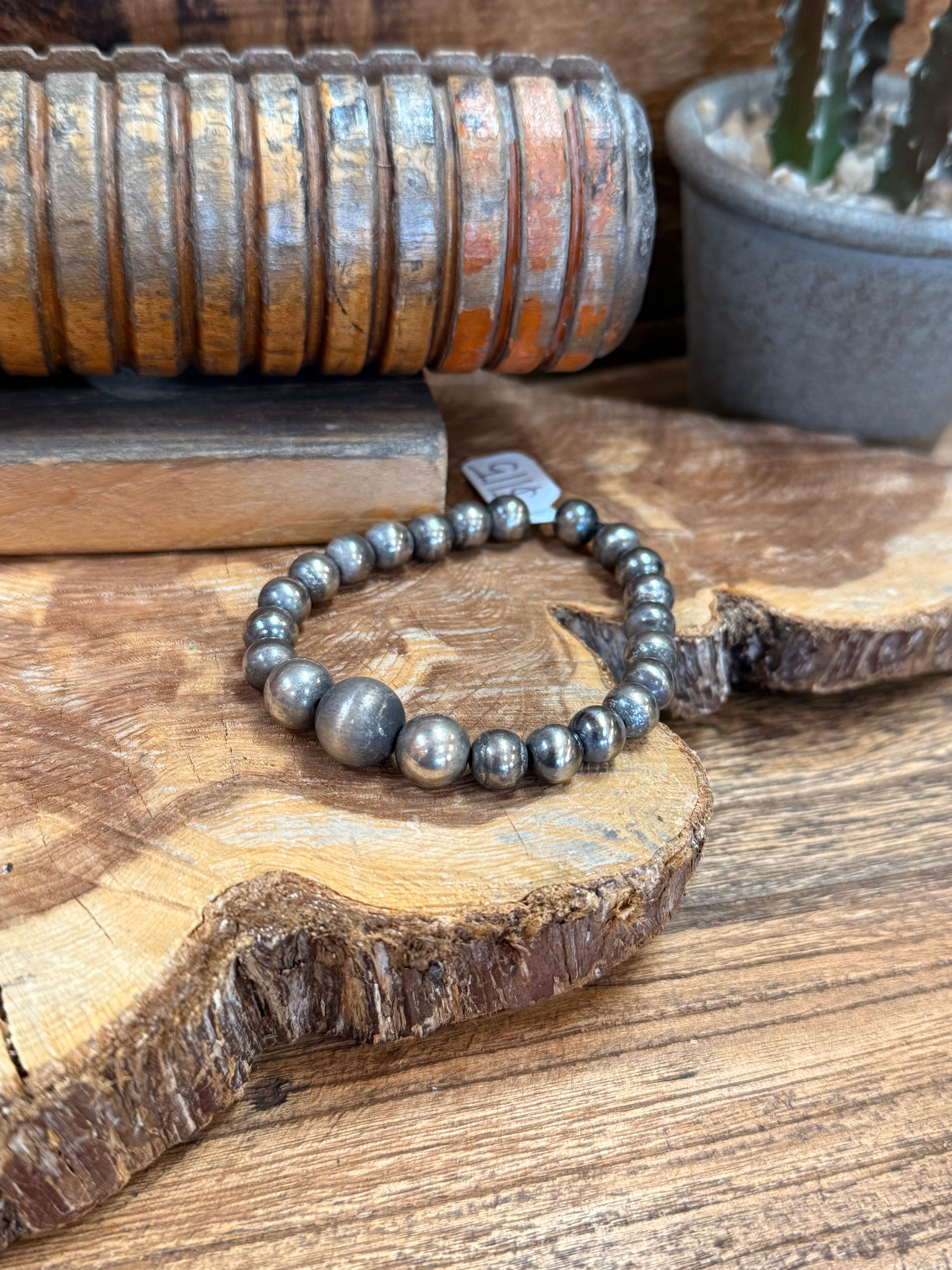 8" 8mm w/ 12mm Center Sterling Stretch Bracelet - Read Description