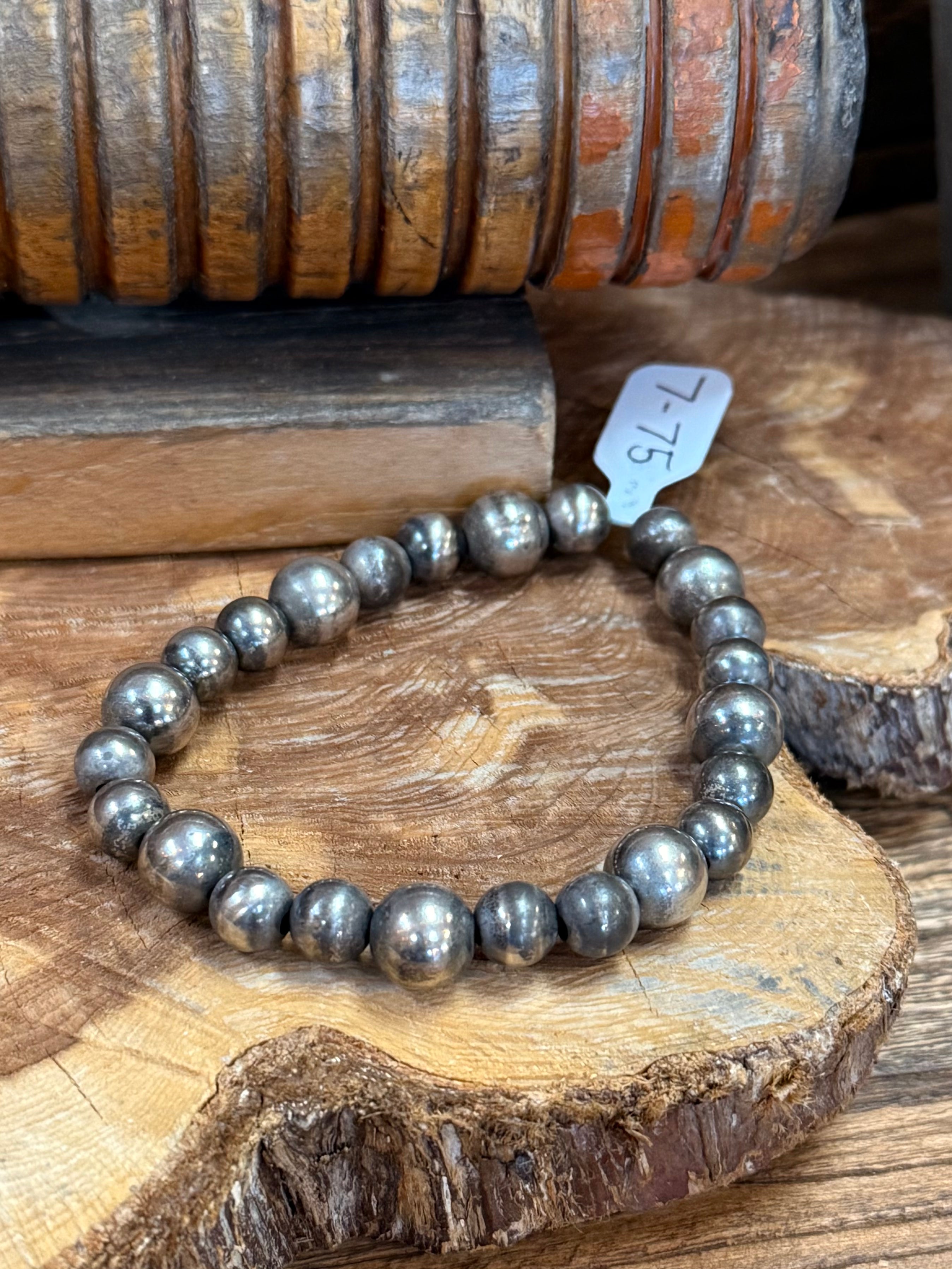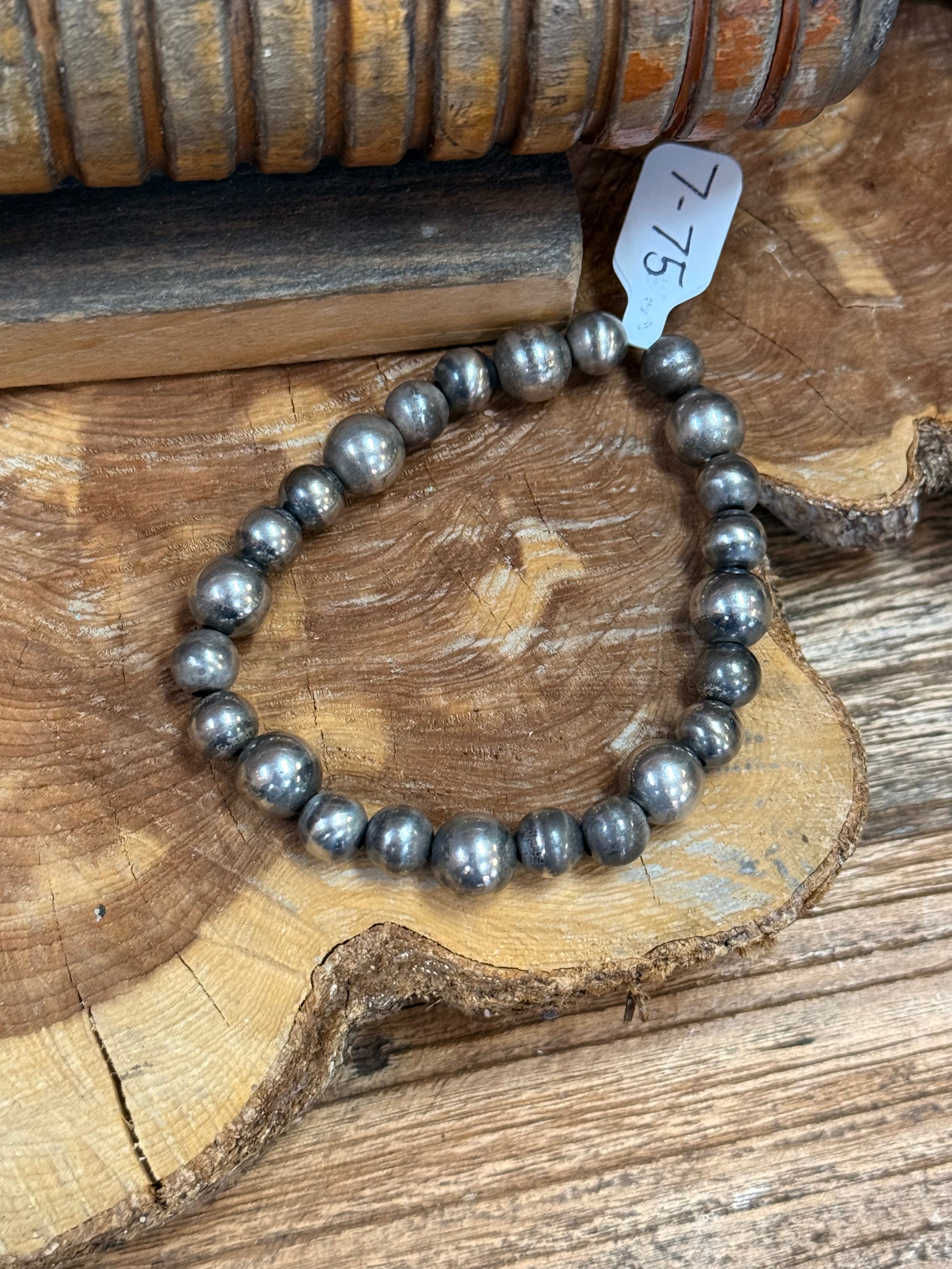 8" Graduated 8-10mm Sterling Stretch Bracelet - Read Description