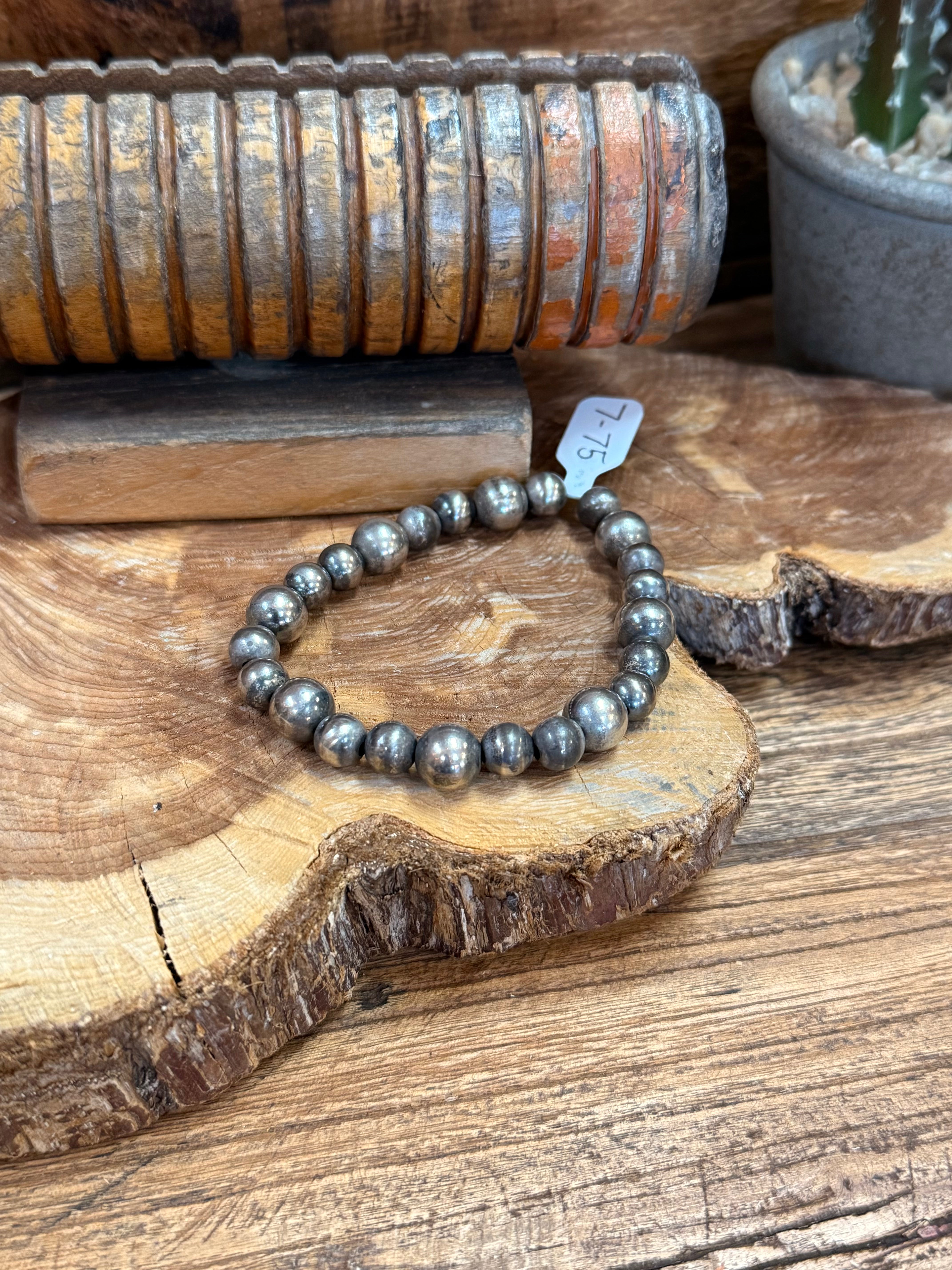 This bracelet was made of beads that were inside of our building during a fire on 12/30/24. They have been cleaned and strung on new wire. They may have some discoloration but should shine up! Every order will come with a polishing cloth.