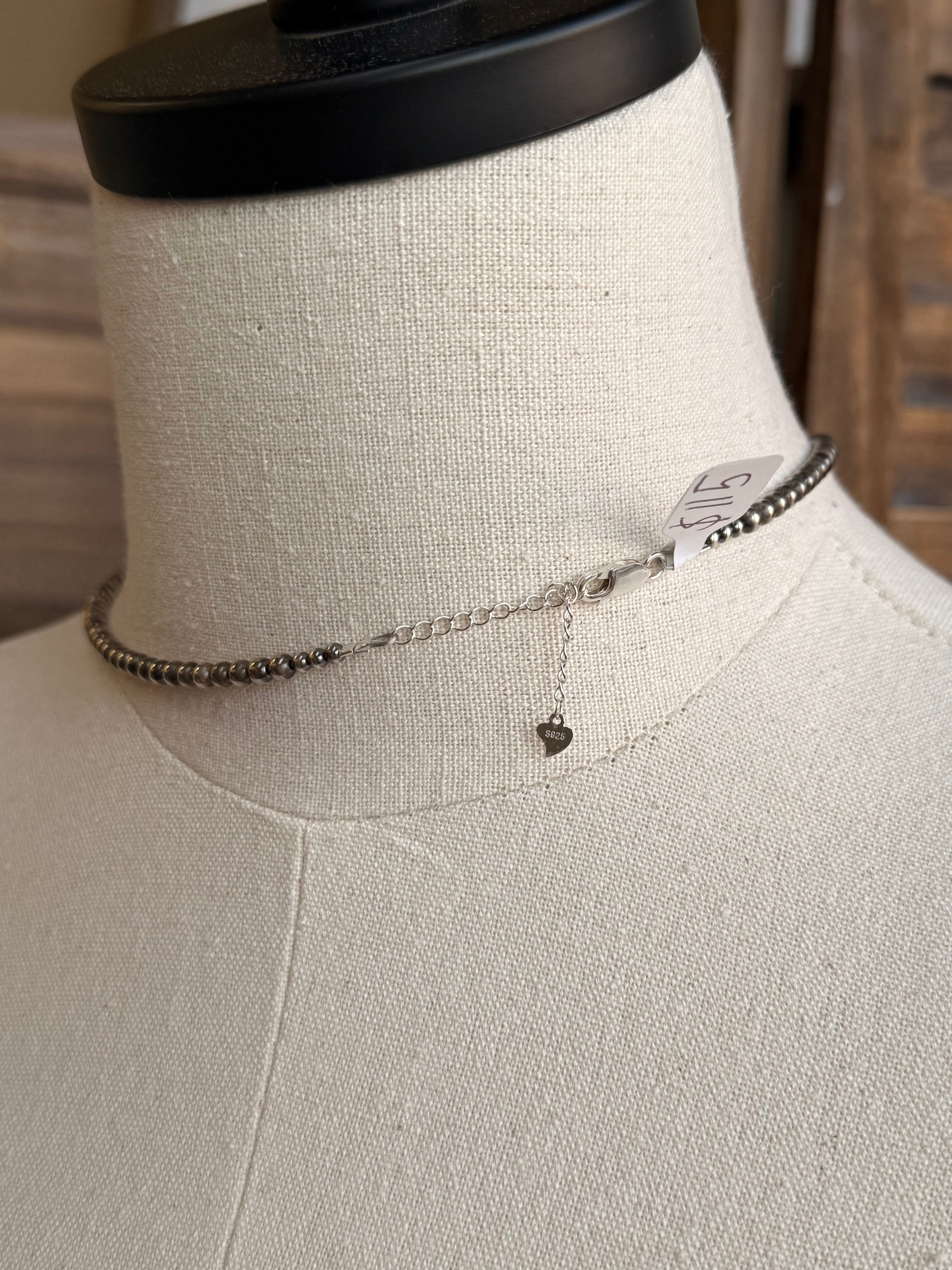 15" + 2" Extender Sterling Silver Necklace with Pink Mother of Pearl