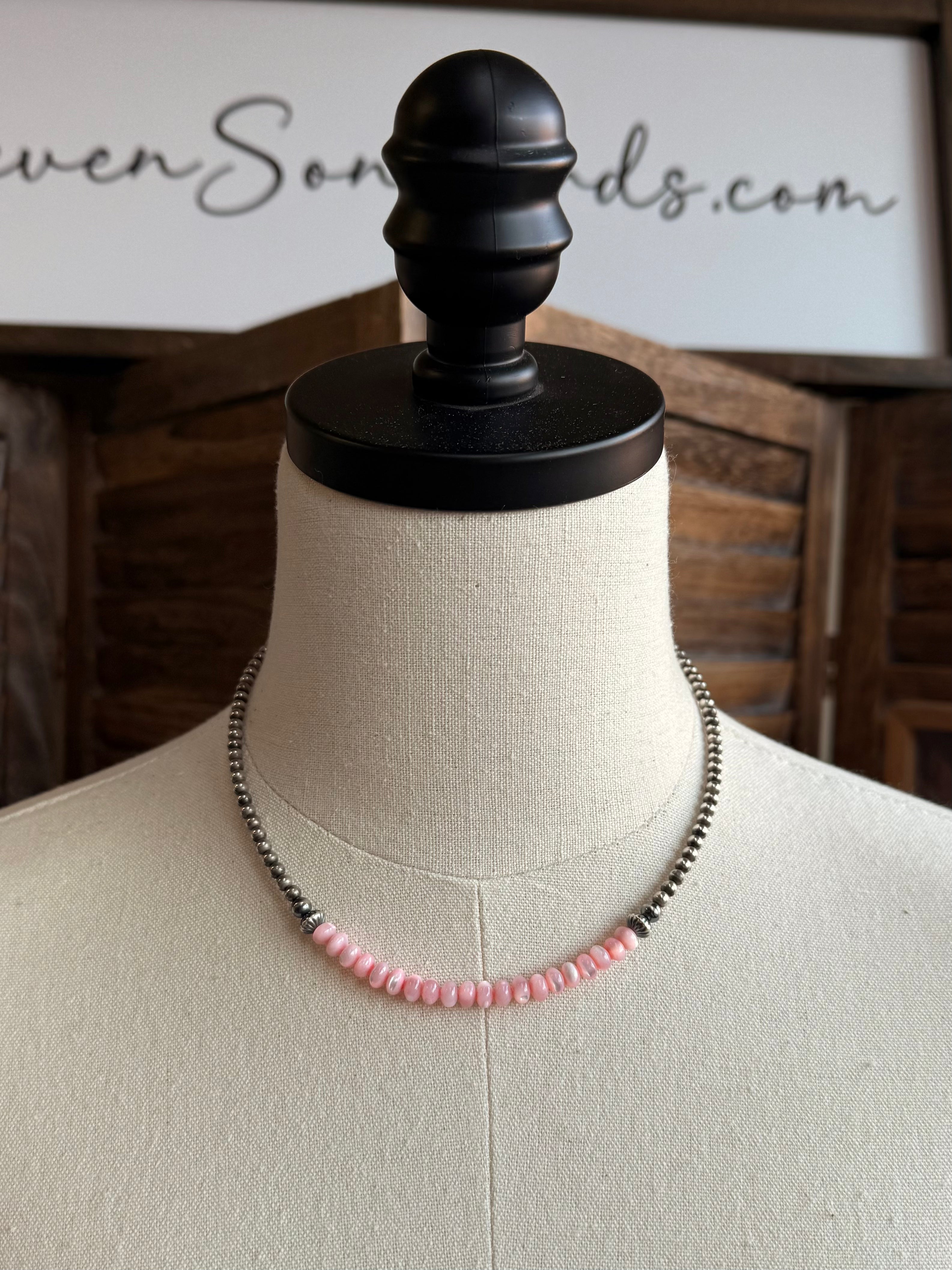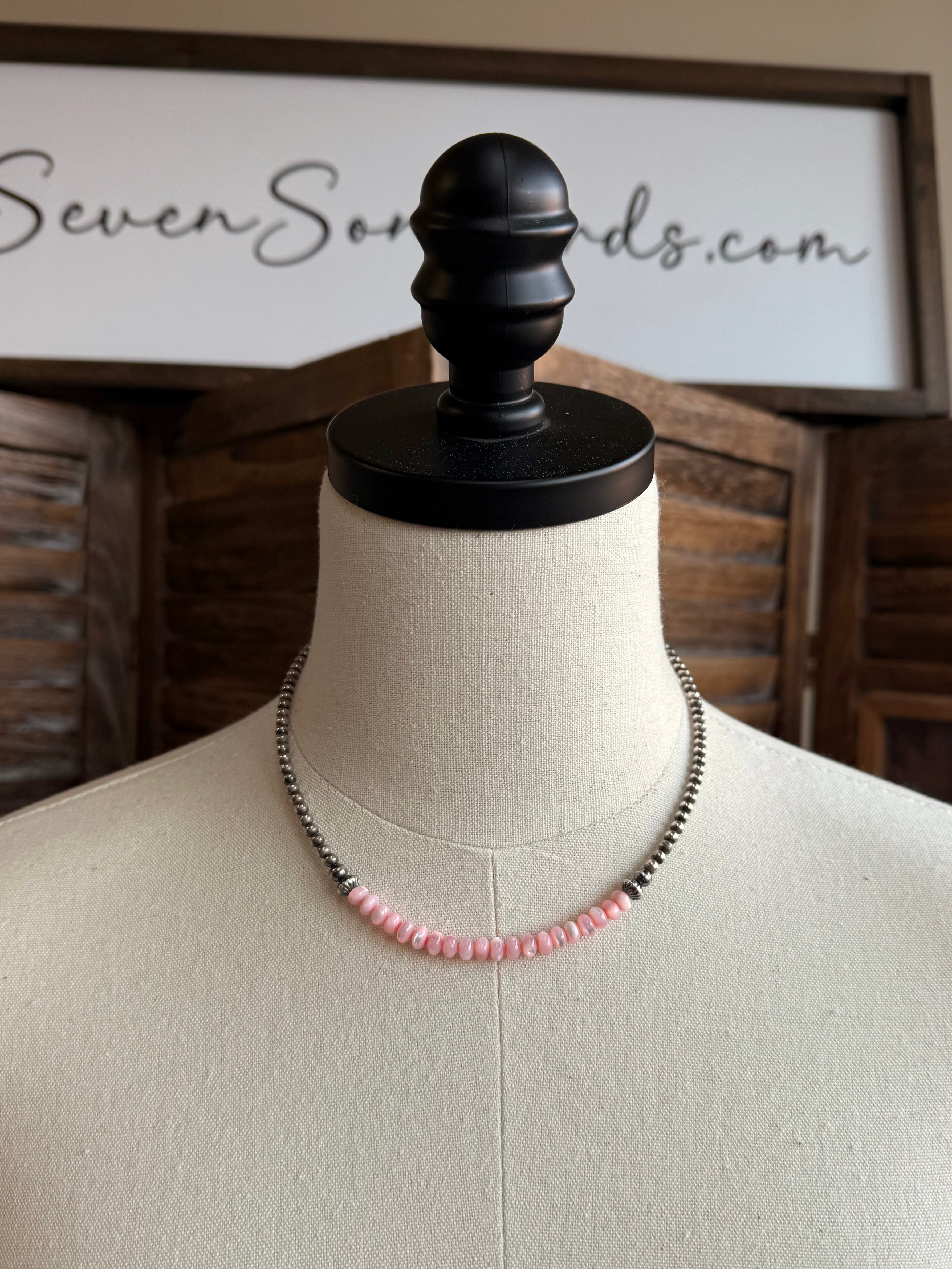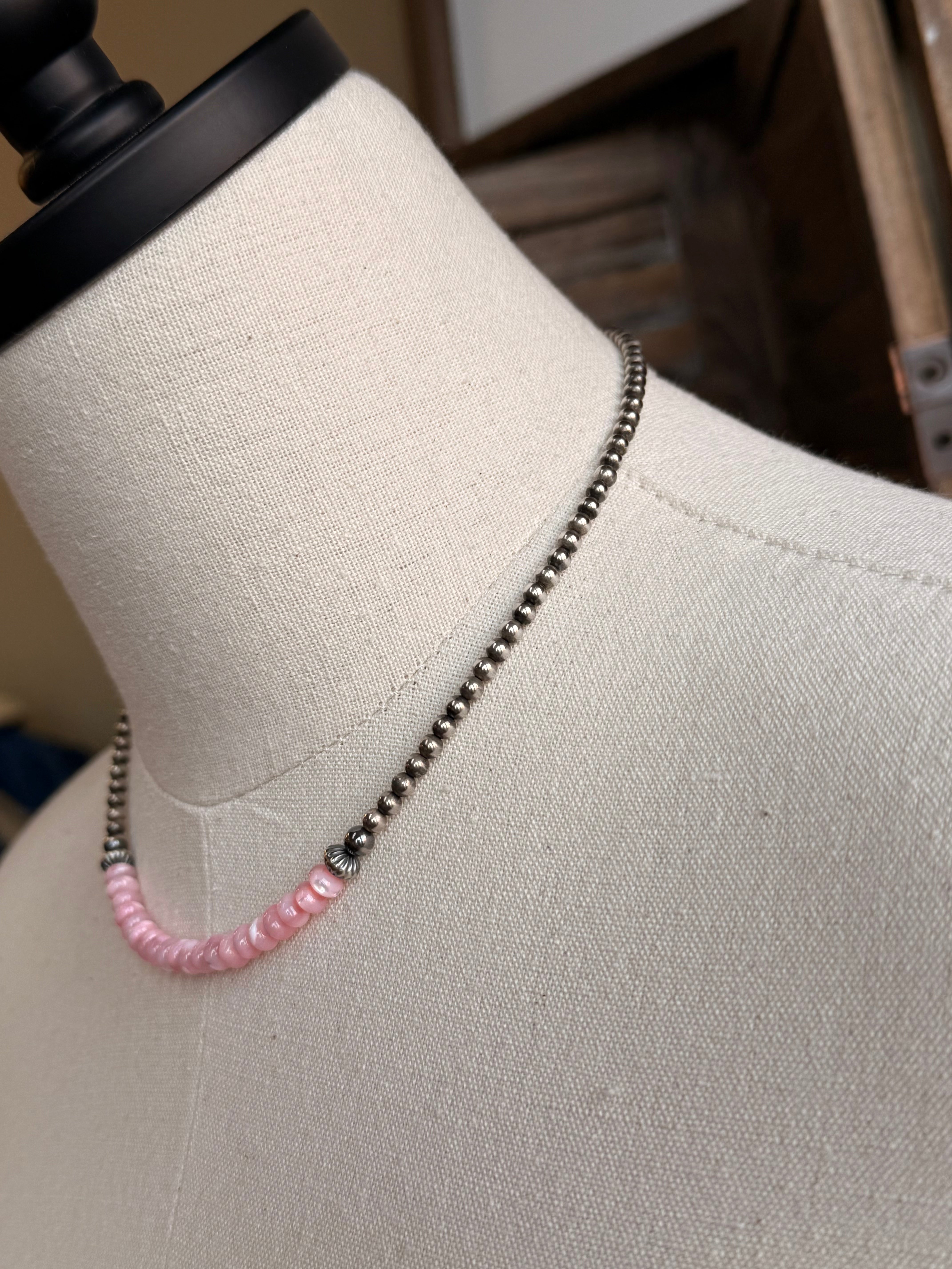 15" Sterling Necklace with a Pink MOP Middle