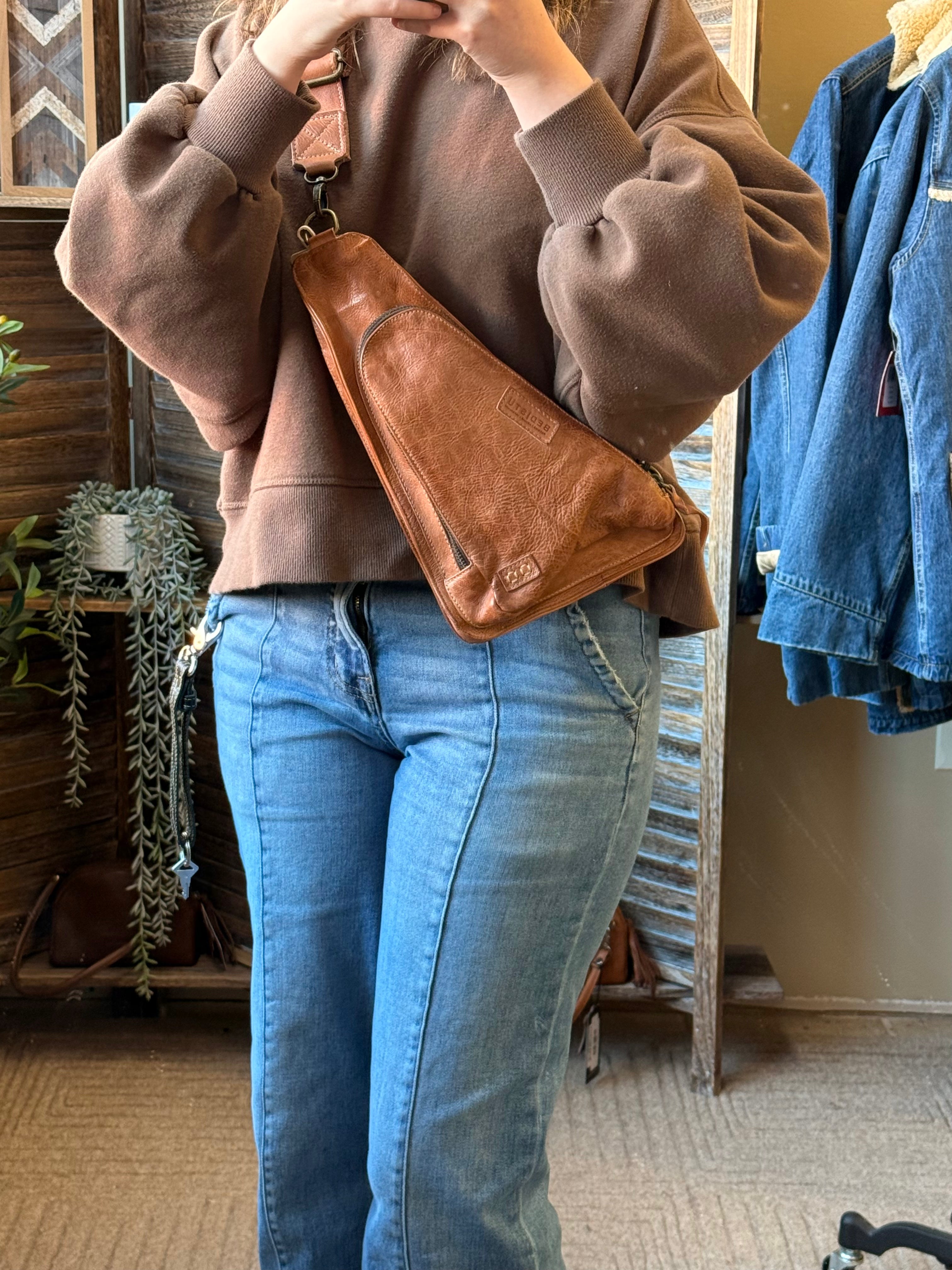 Meet Adept - your most adept travel companion. Sustainably handmade from BED|STÜ's high quality, 100% vegetable tanned leather, this compact sling bag features two spacious zippered compartments to keep all of your essentials safe and secure, remaining hands-free for an easy on-the-go experience. Its unique triangular shape and removeable and adjustable strap makes for versatile wear as a front-or-back crossbody bag or as a fanny pack for easy access at any time.