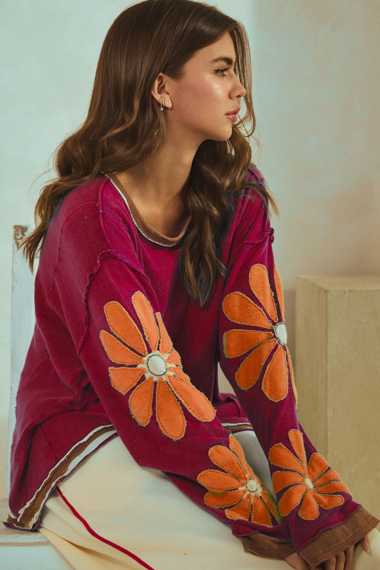 Daisey Embroidered Crew Neck Long Sleeve T Shirt