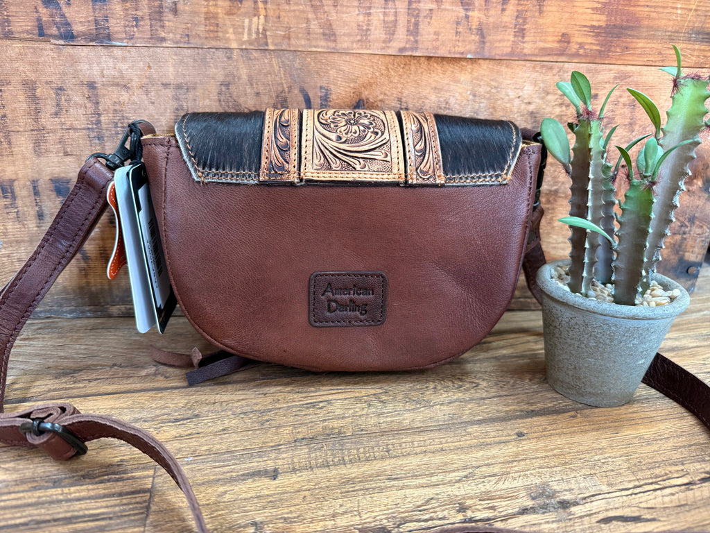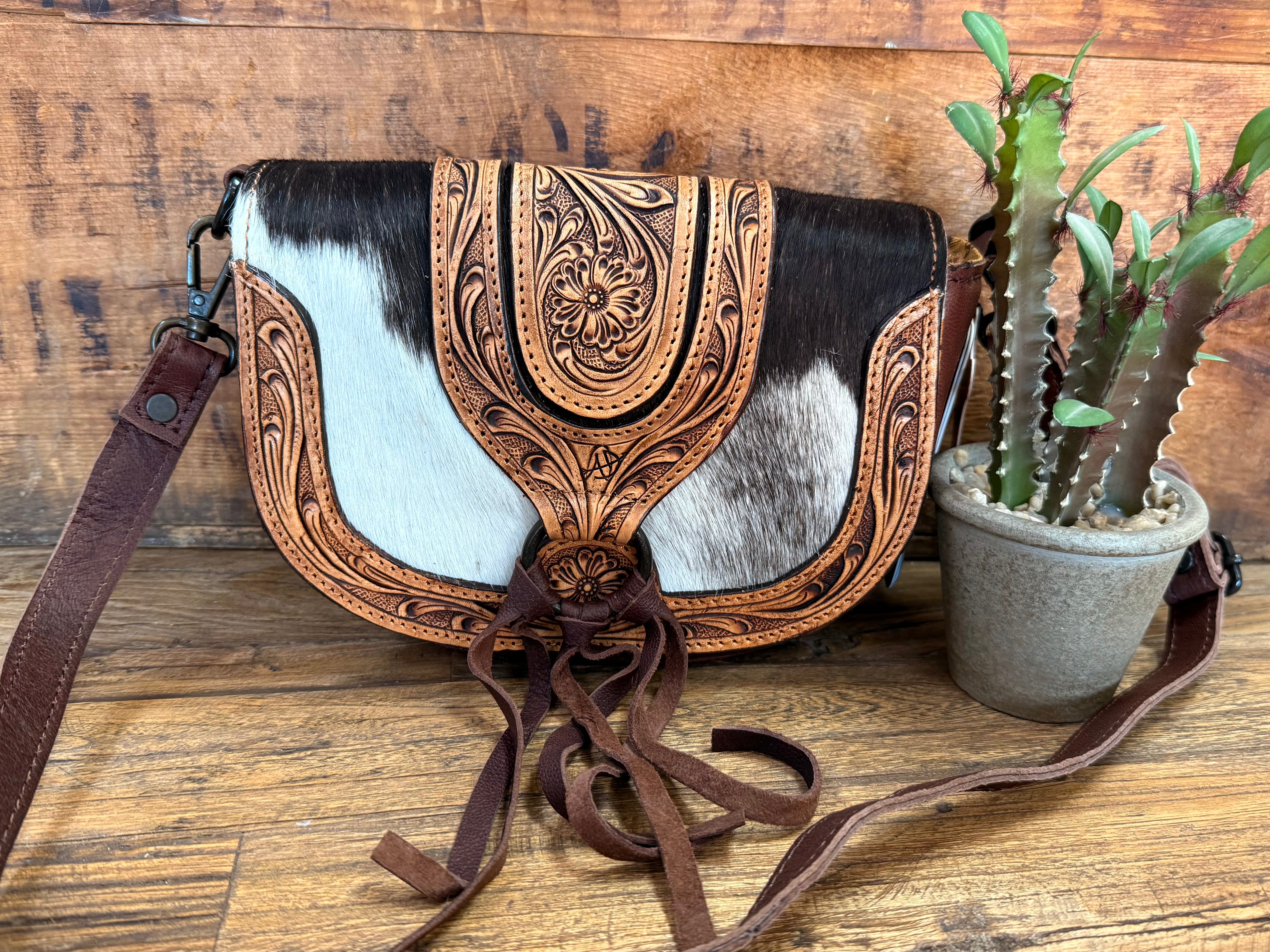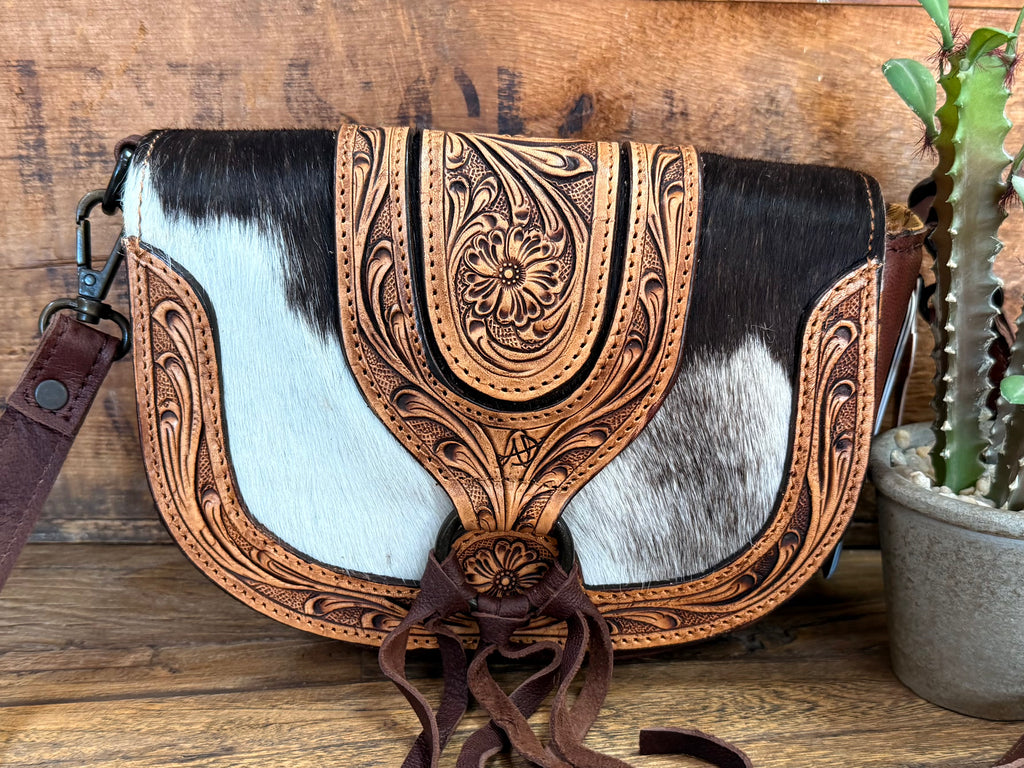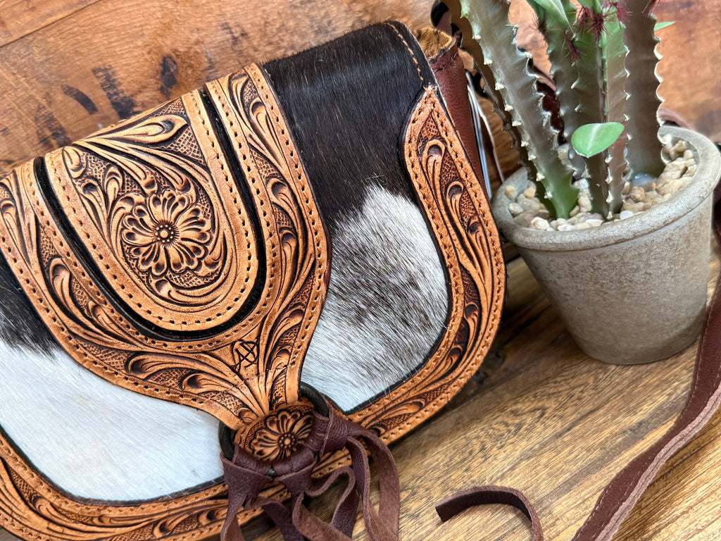 Tooled Cowhide Hair On Mini Crossbody Purse
