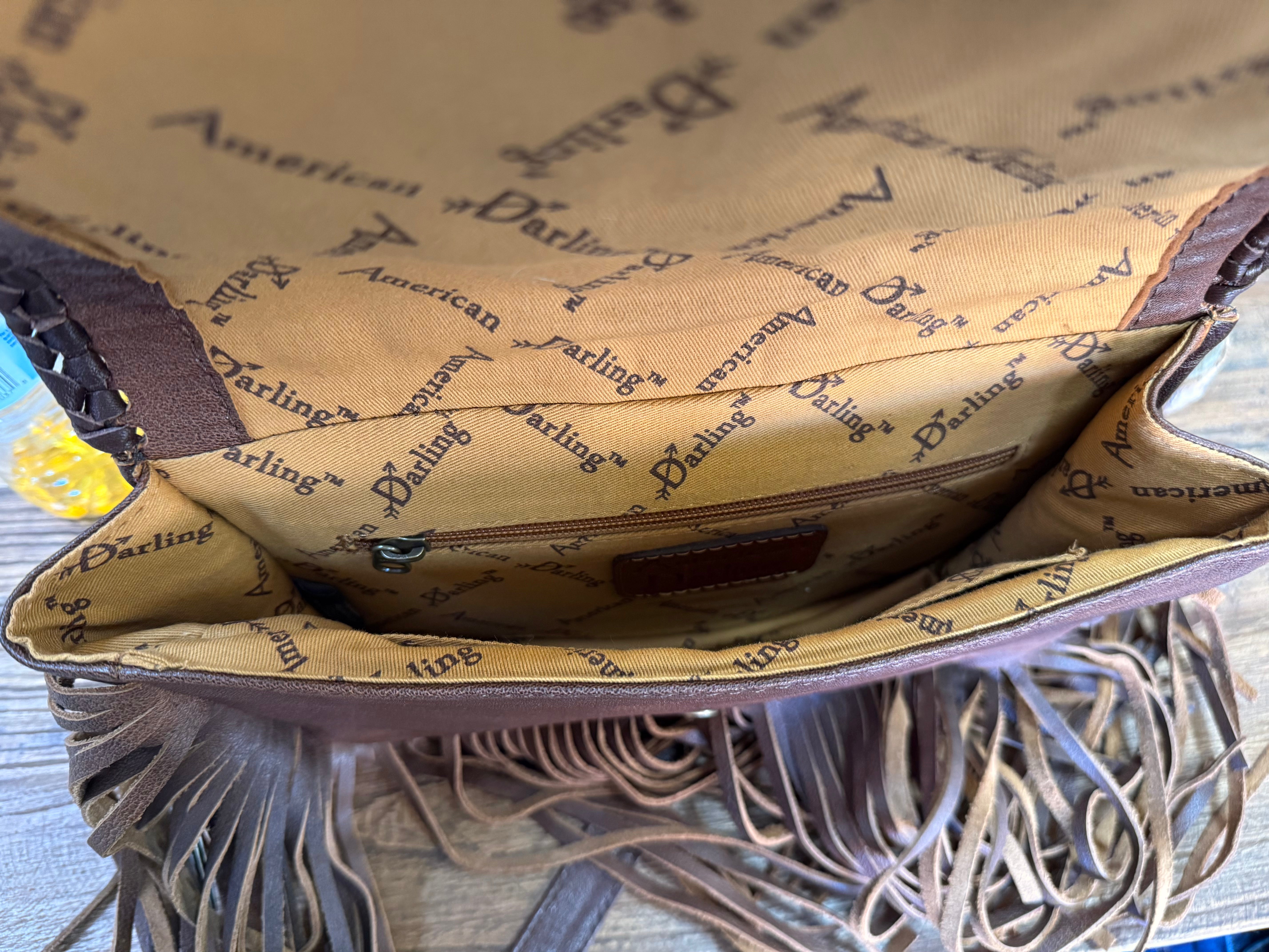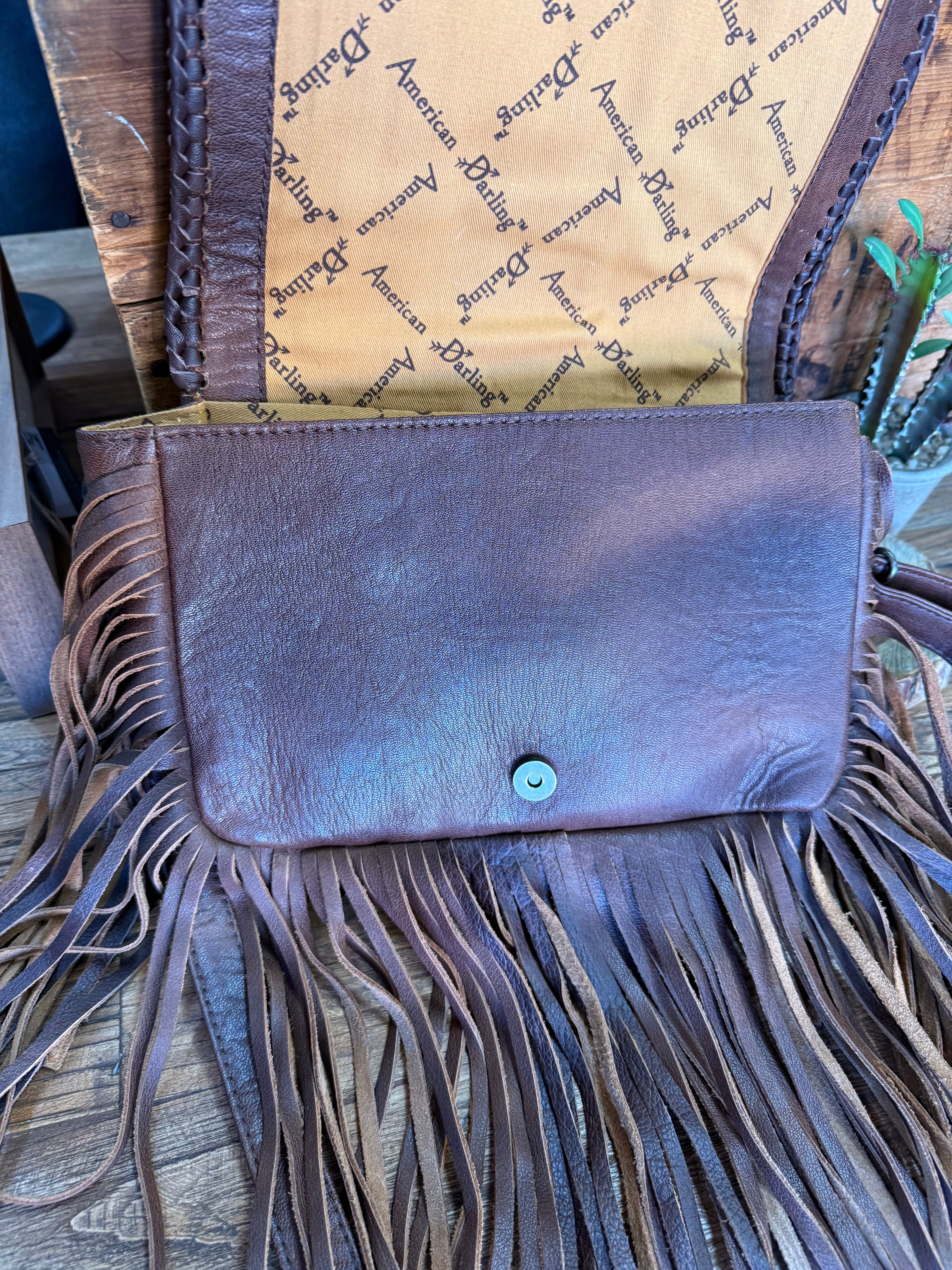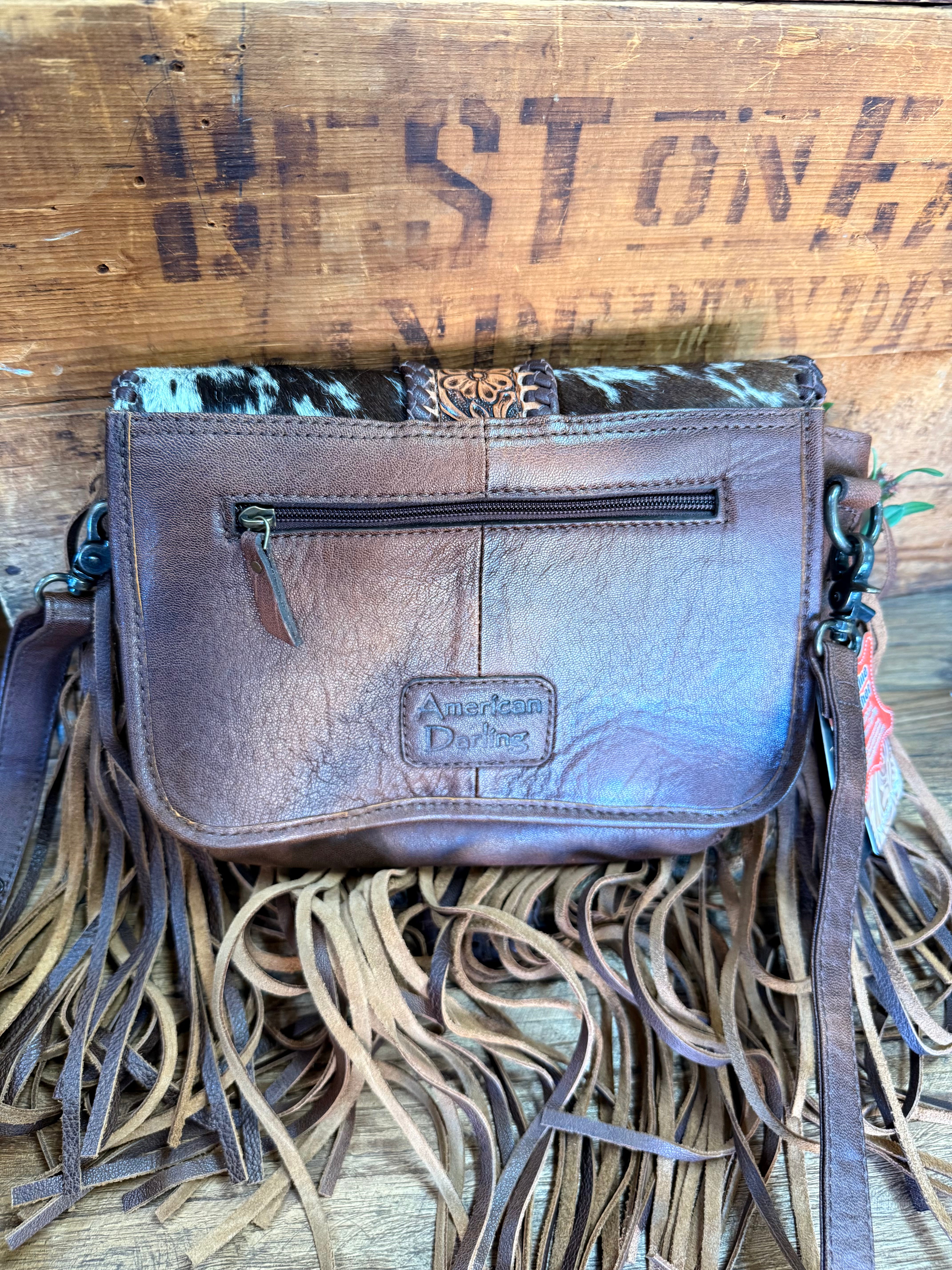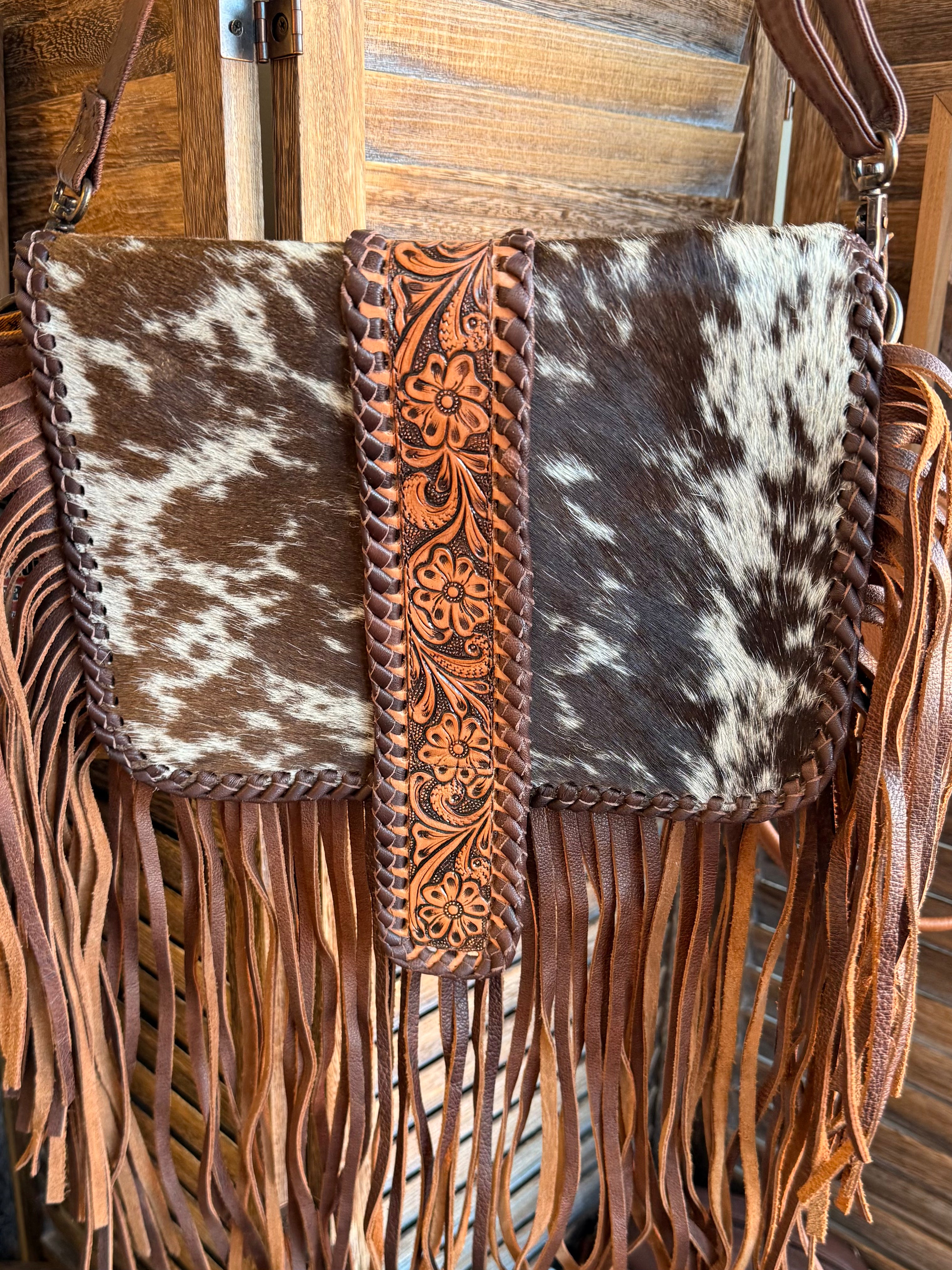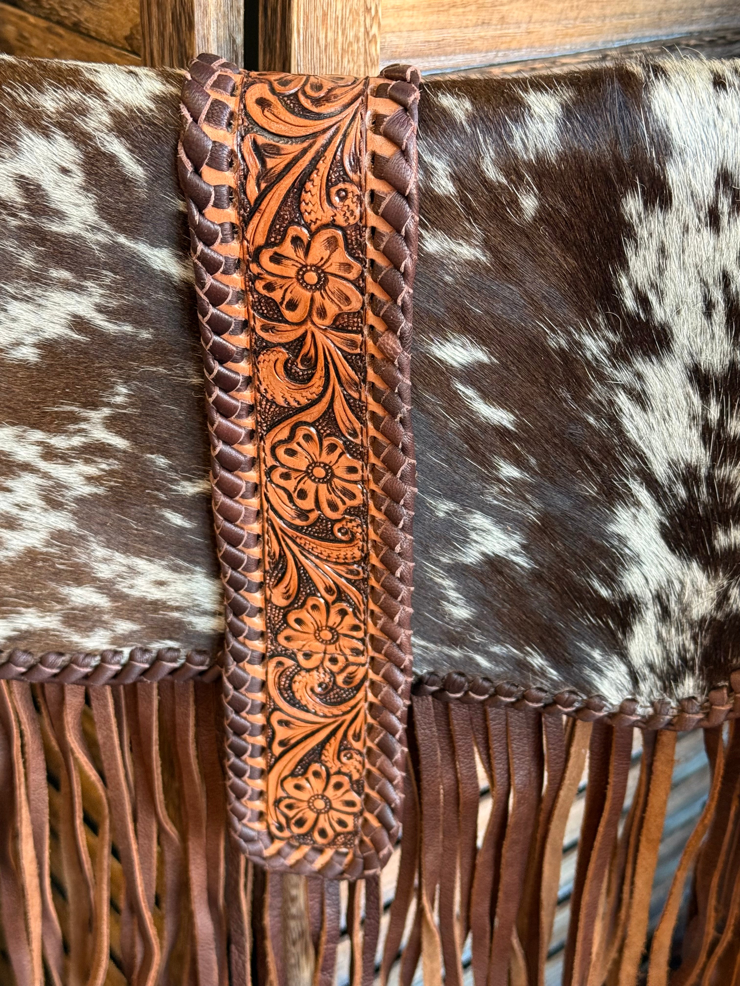 Hide Fringed Tooled Cowhide Flap Crossbody Purse