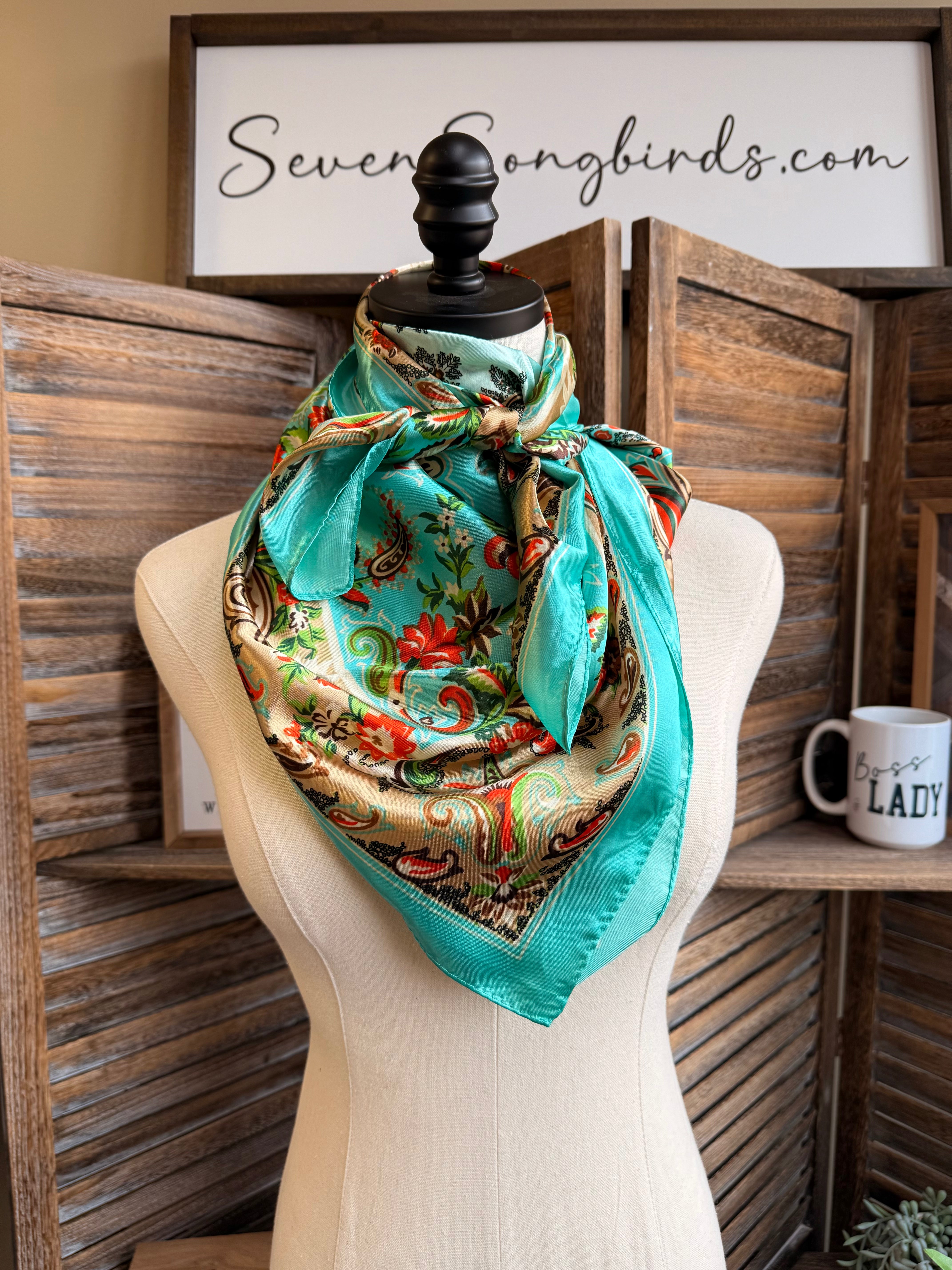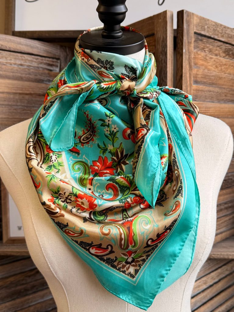 Mint Orange Green Tan Paisley Wild Rag Scarf