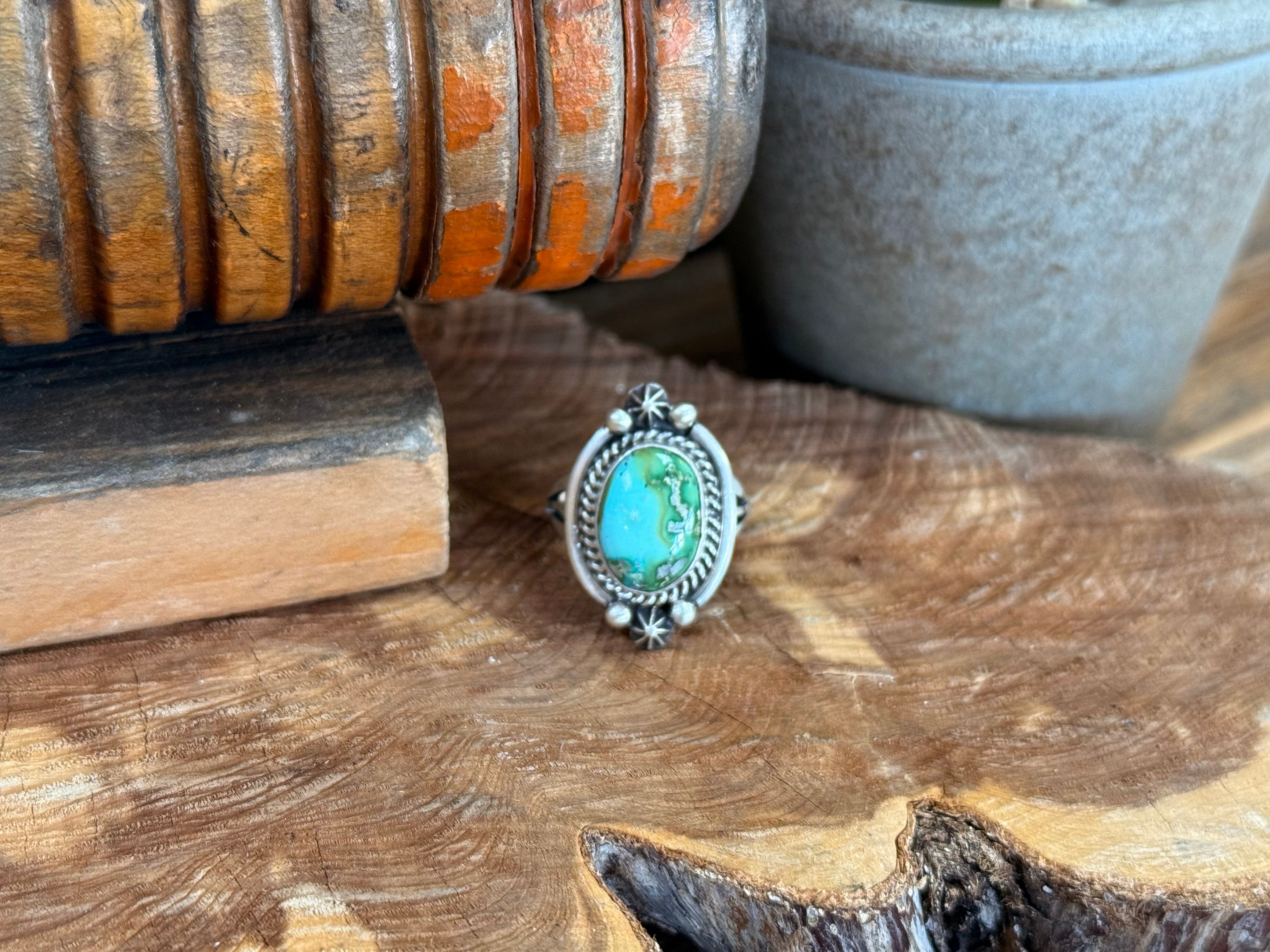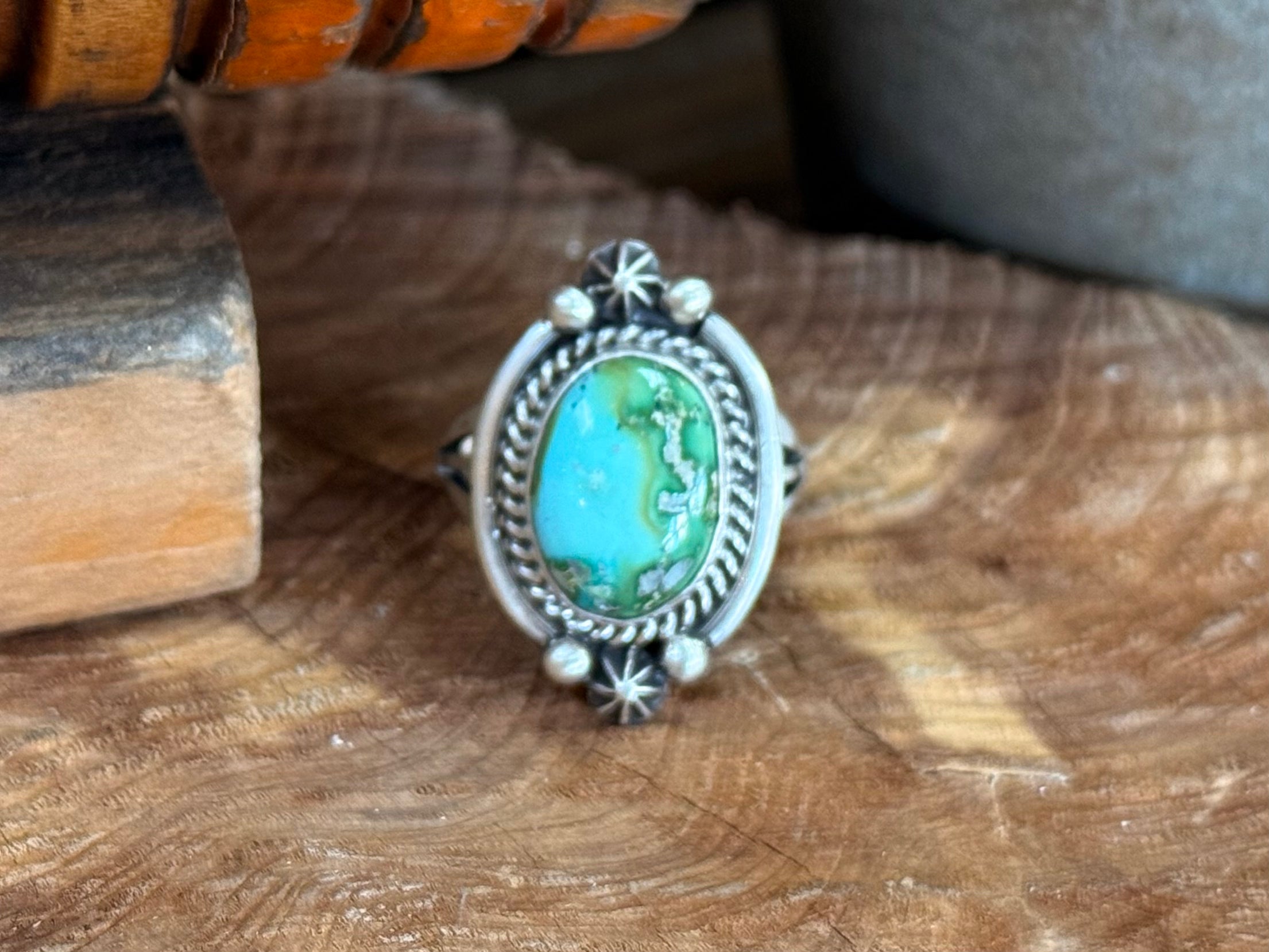 Beautiful Sonoran Turquoise Ring by Navajo Artist Sam Yellowhair