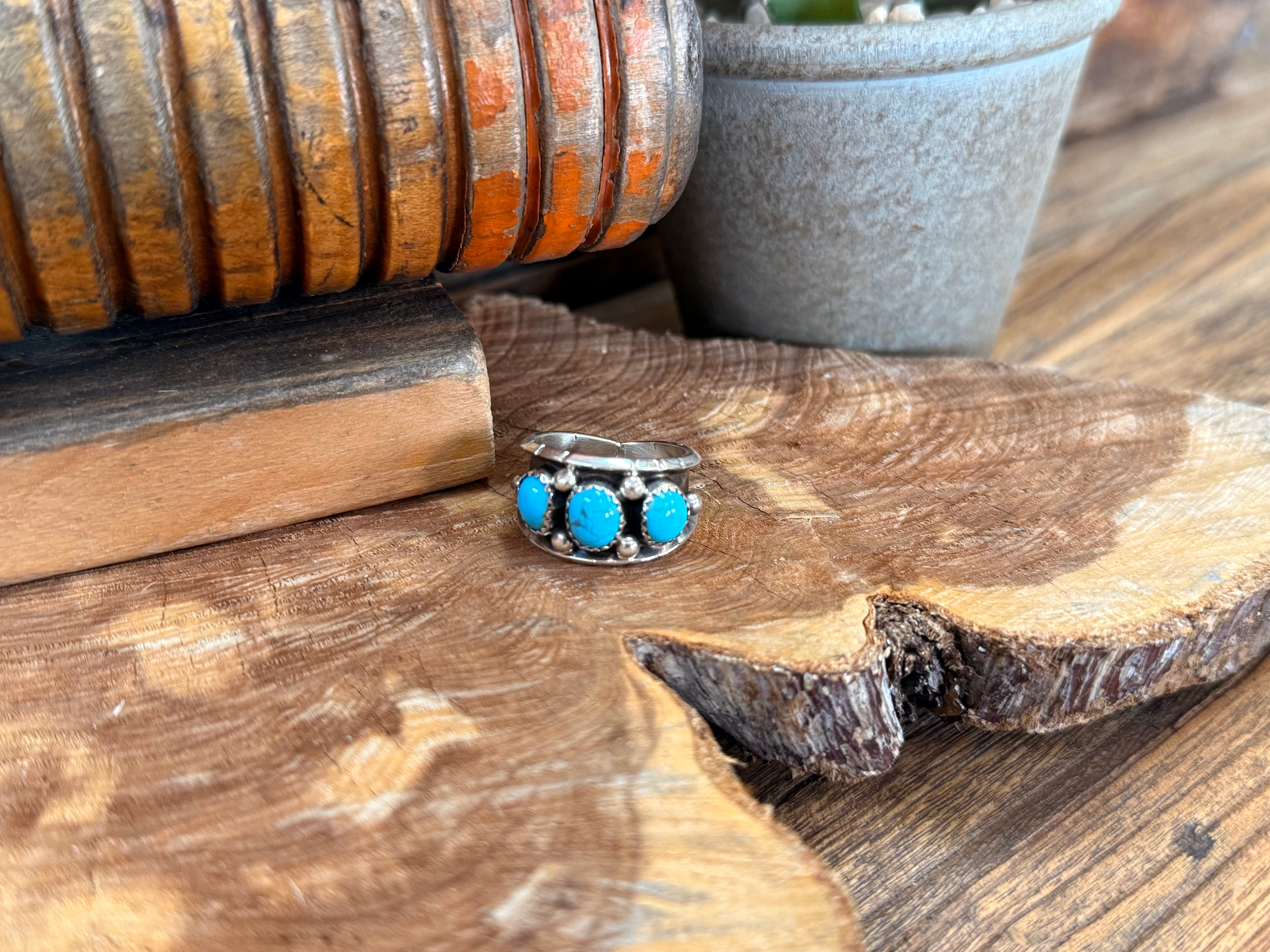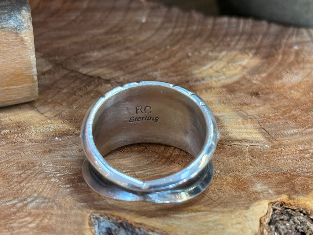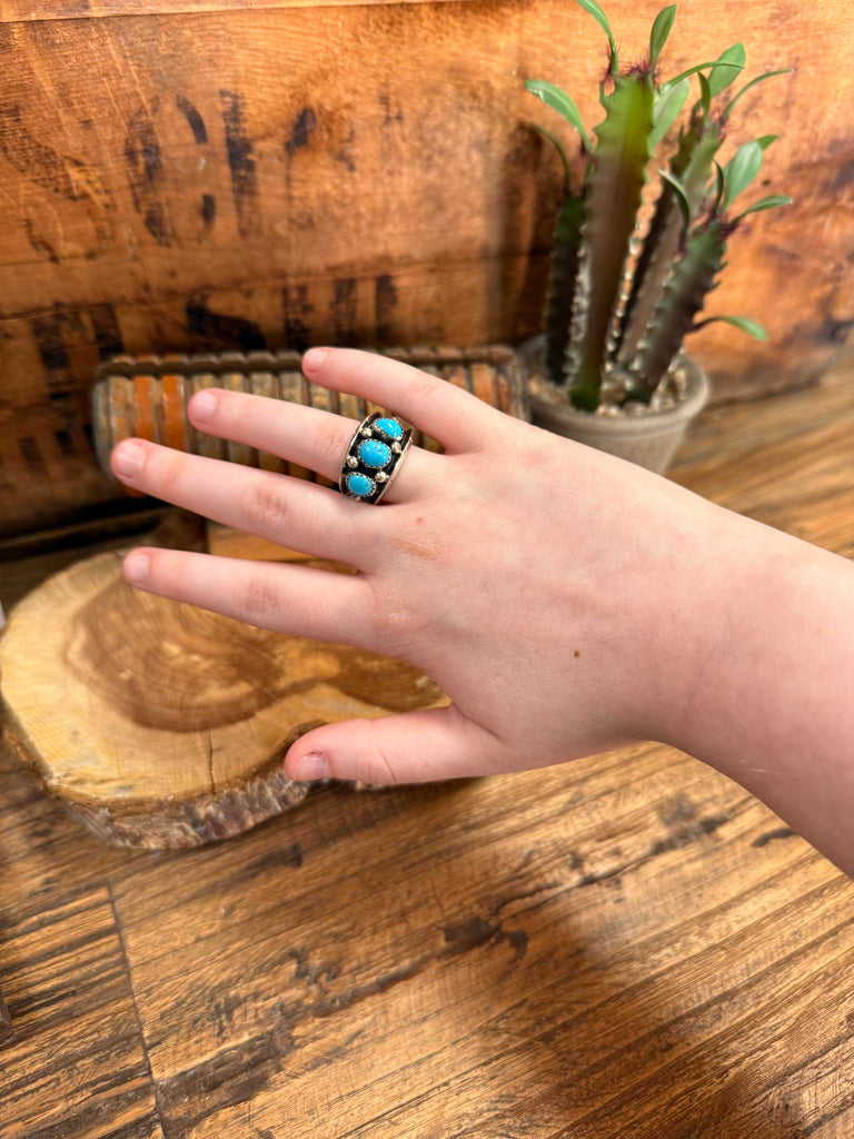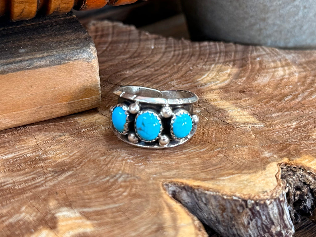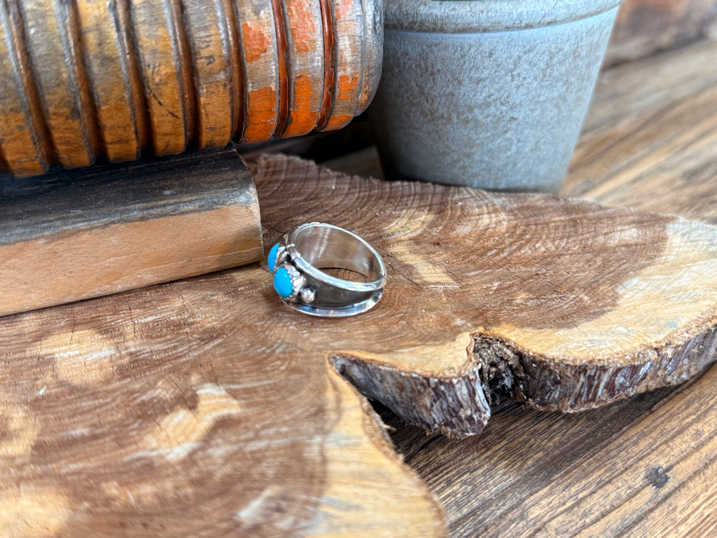 Beautiful Kingman Turquoise Cigar Band Ring by Navajo Artist Reed Charley