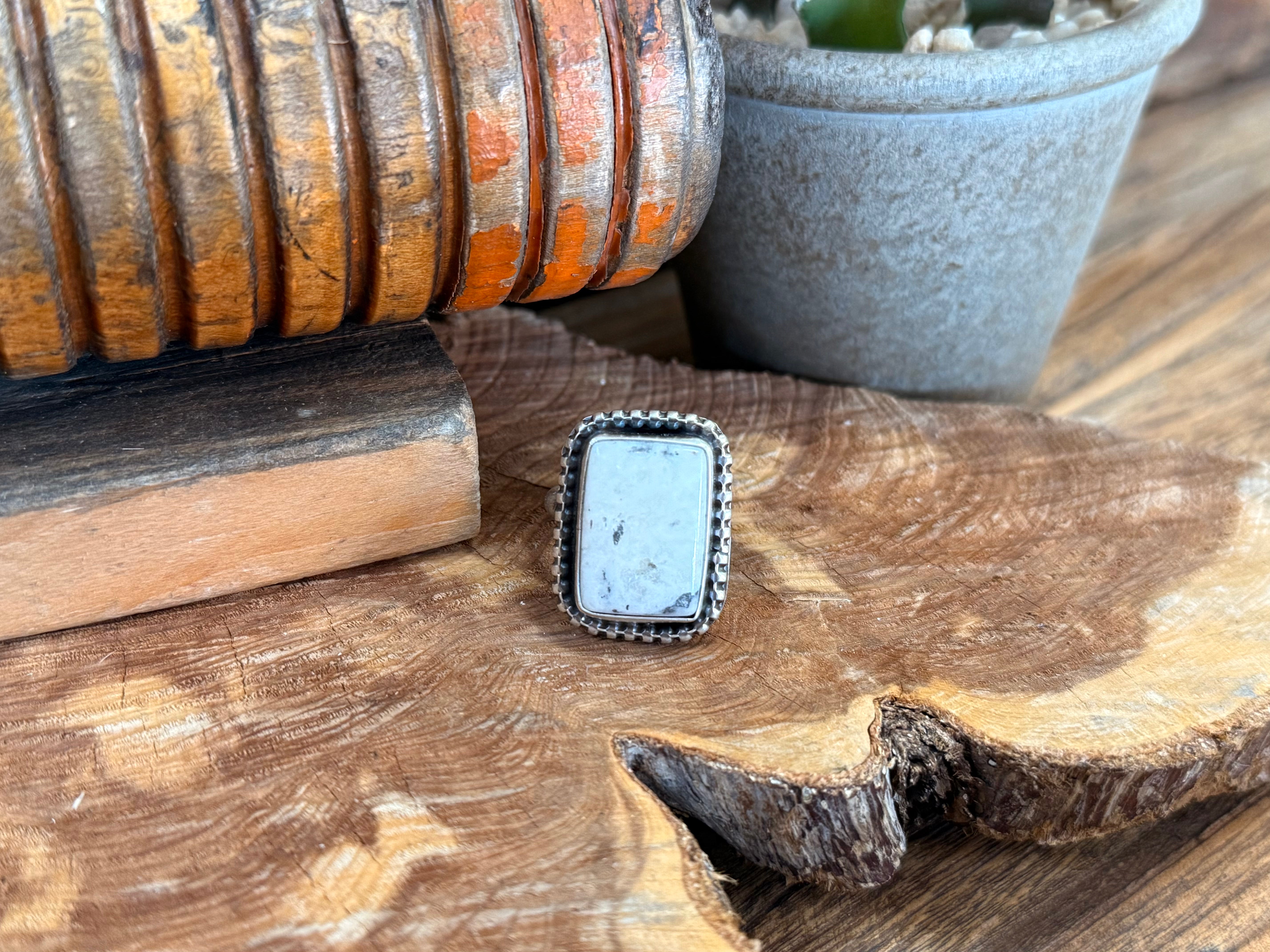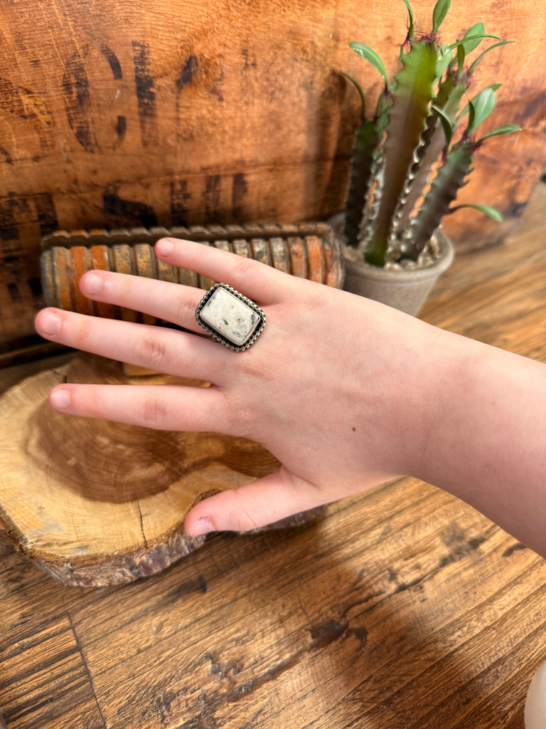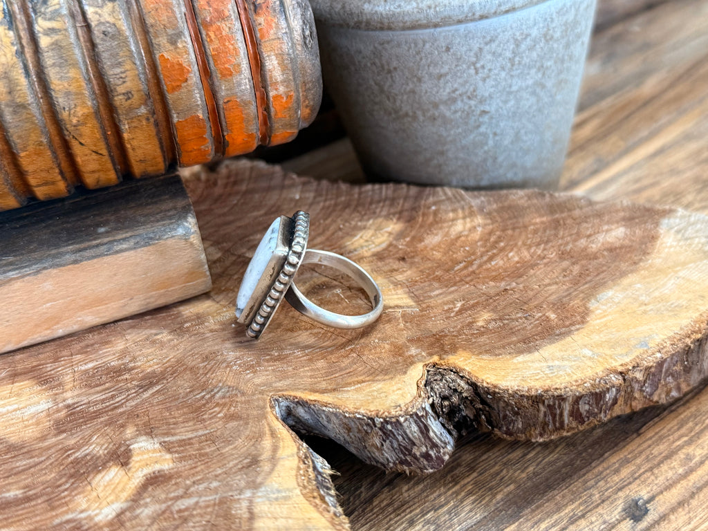 Navajo Handmade Large White Buffalo Ring - Adjustable