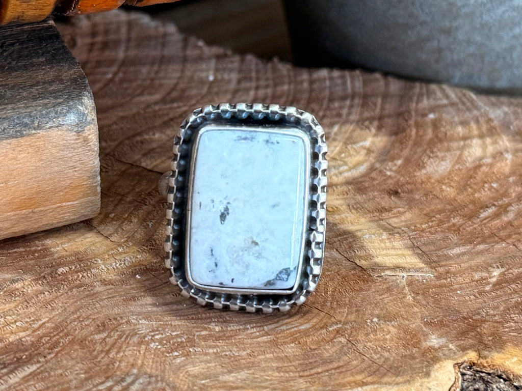 Beautiful Large White Buffalo Ring by Navajo Artist Scott Skeets