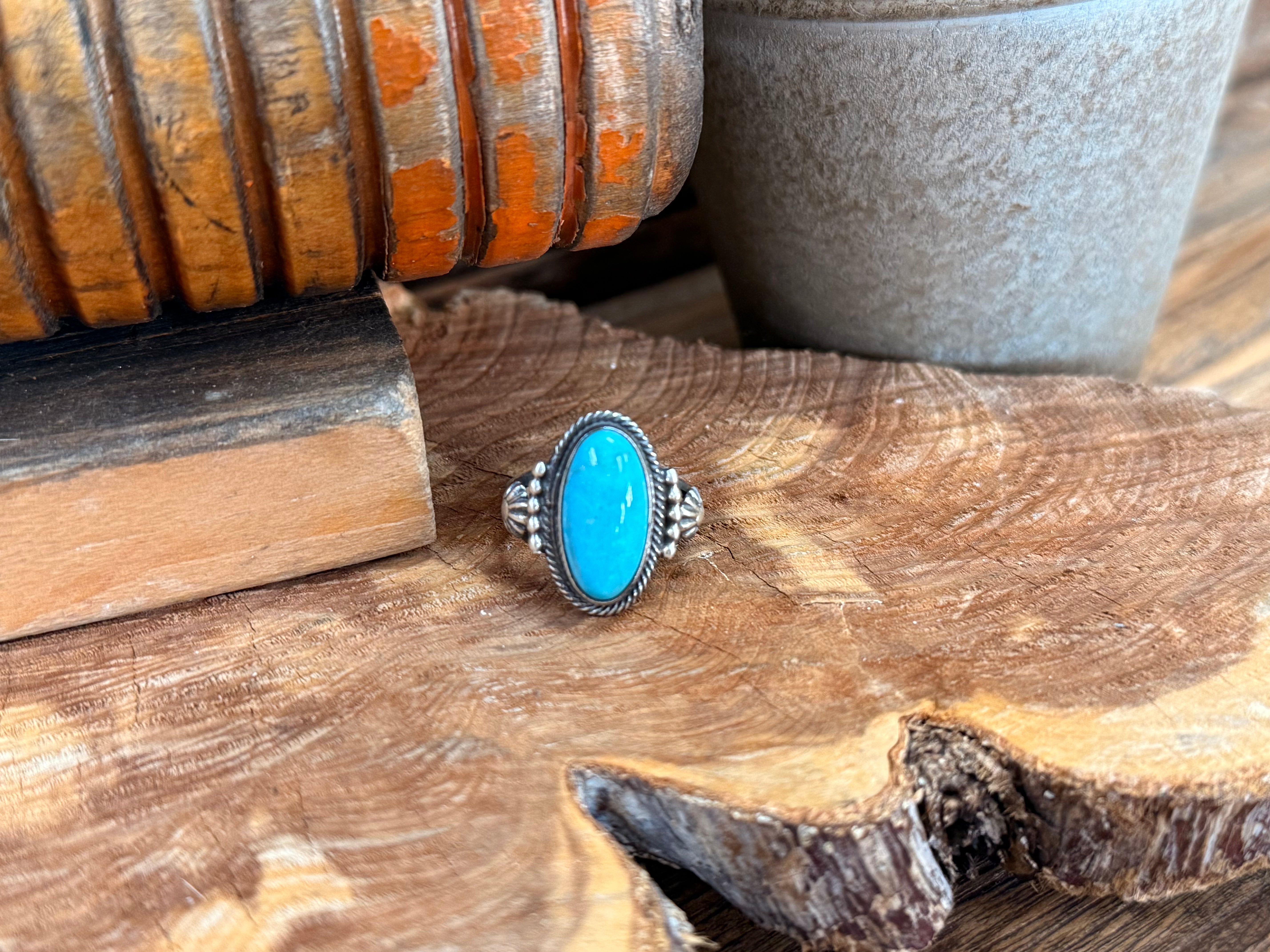 Navajo handmade Kingman Turquoise Ring - 5.5