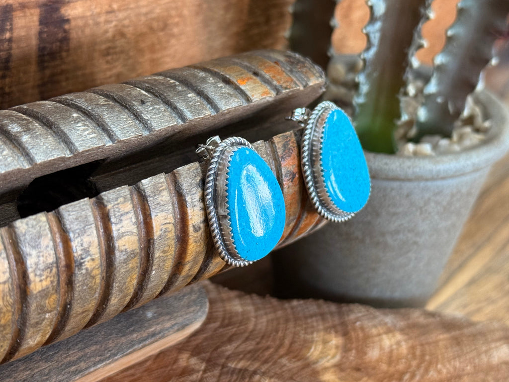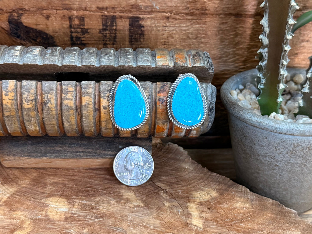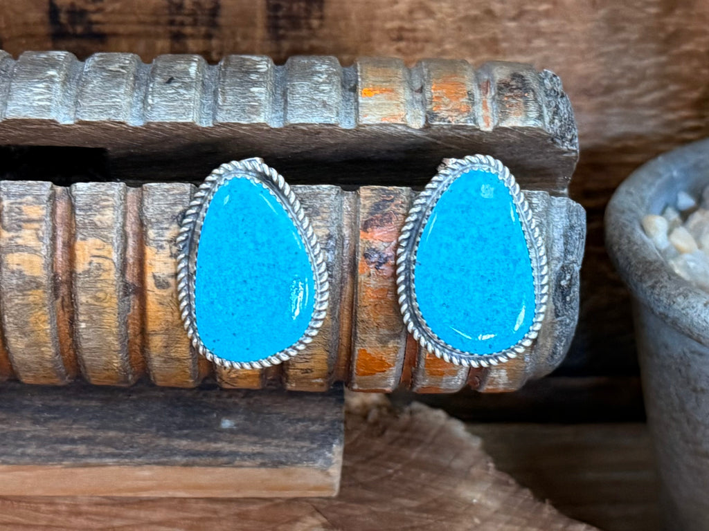 Gorgeous Kingman Turquoise Stud Earrings by Navajo Artist Donovan Nez