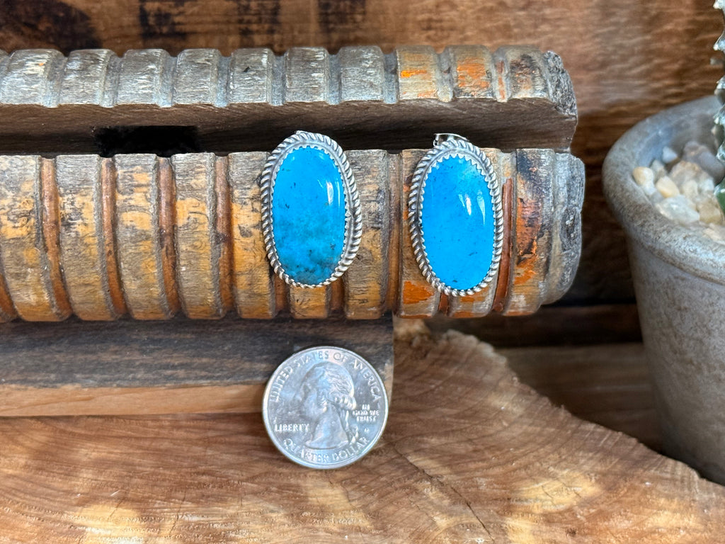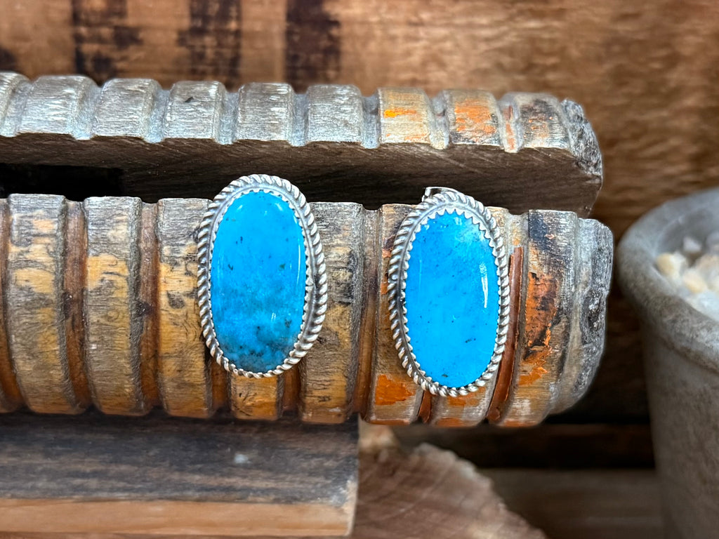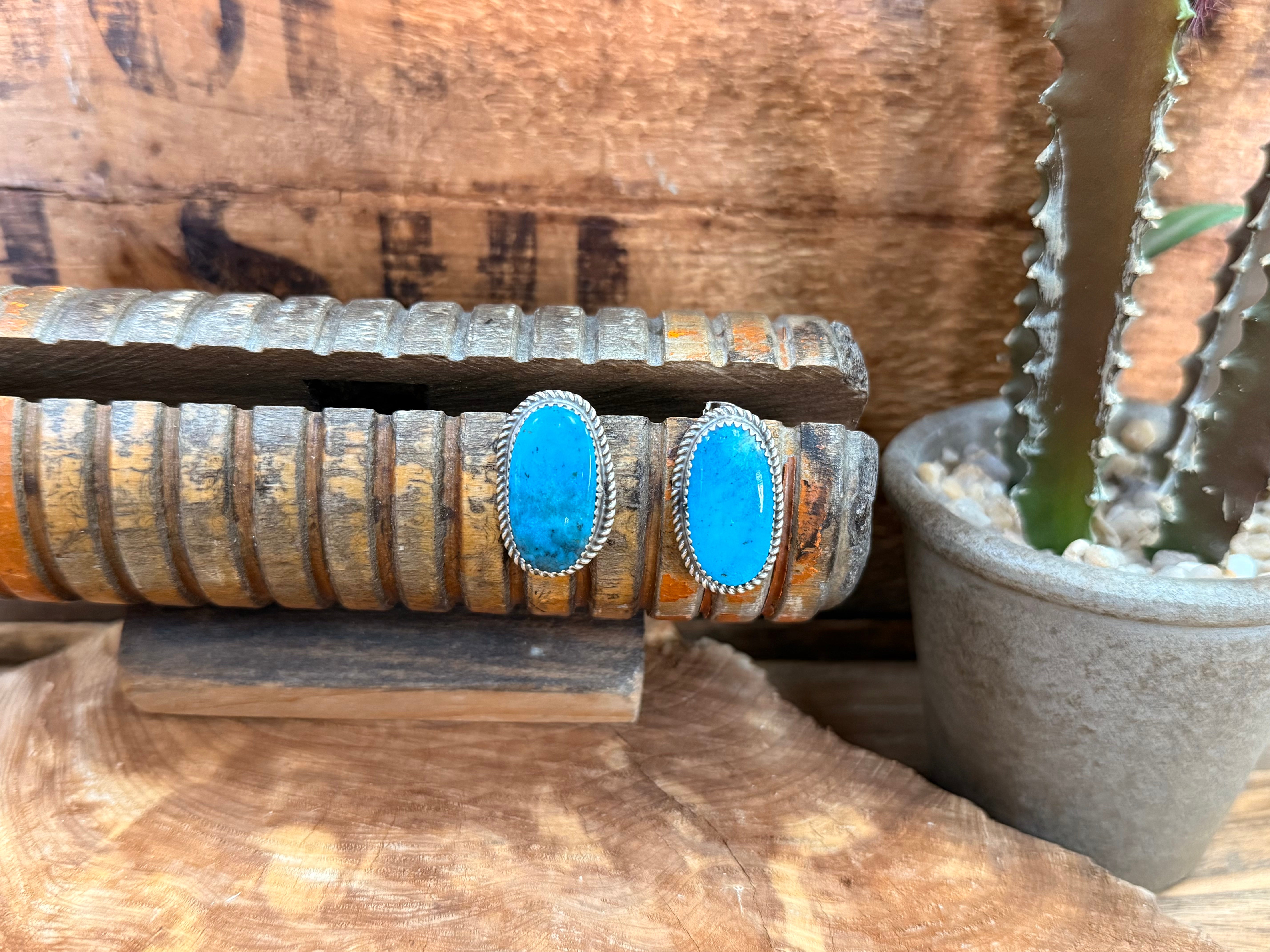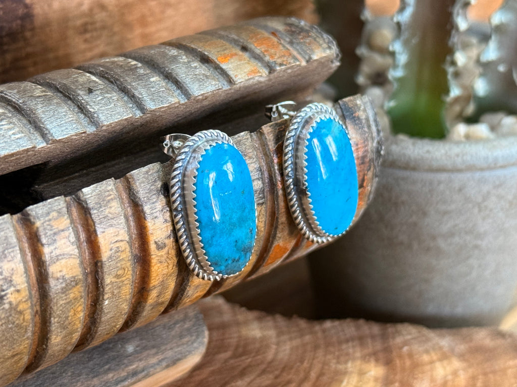Gorgeous Kingman Turquoise Stud Earrings by Navajo Artist Donovan Nez